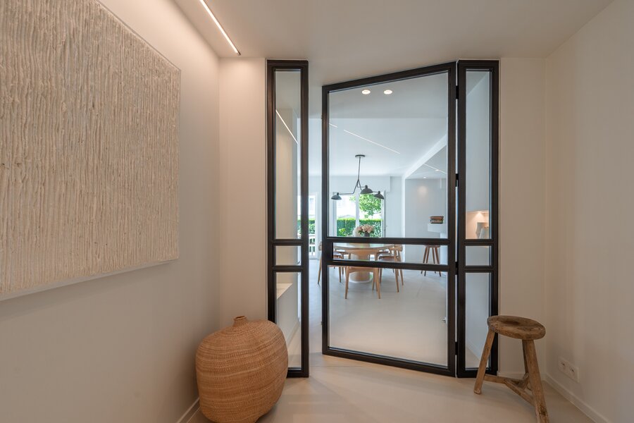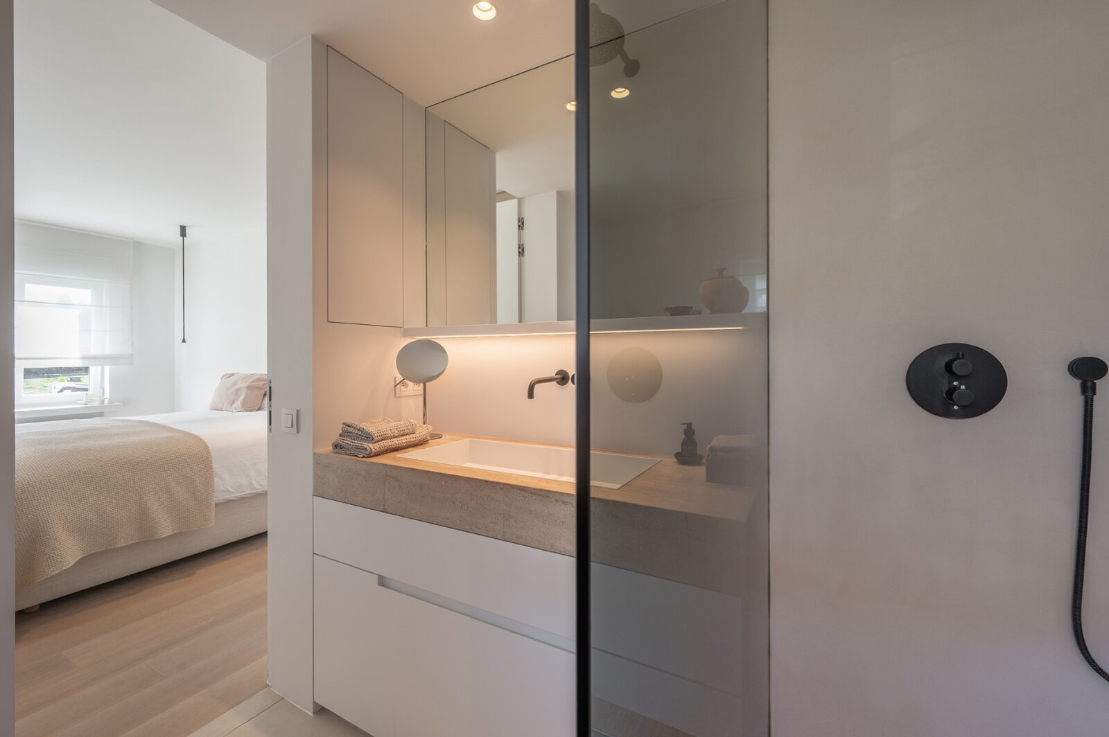 Located in an exclusive villa residence in the heart of het Zoute, within walking distance of the Wandeldijk and the Royal Zoute Tennis Club, this luxuriously finished garden apartment is situated in a particularly quiet location, enjoying optimal natural light and a harmonious connection between indoor and outdoor living.