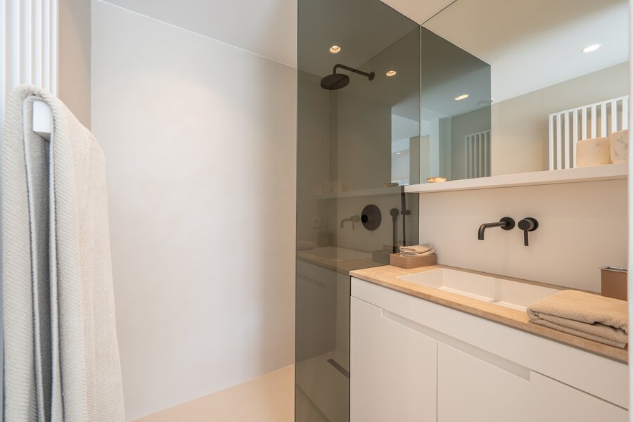 The apartment offers three bedrooms, each with its own ensuite bathroom. The third bedroom is multifunctional thanks to the integrated fold-out bed, ideal as an extra guest room or office.