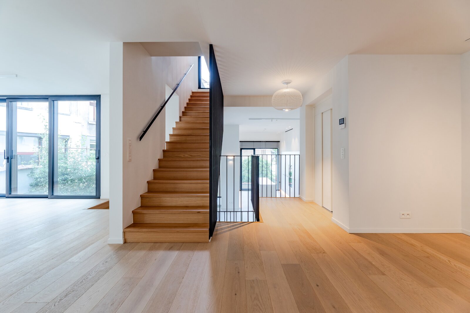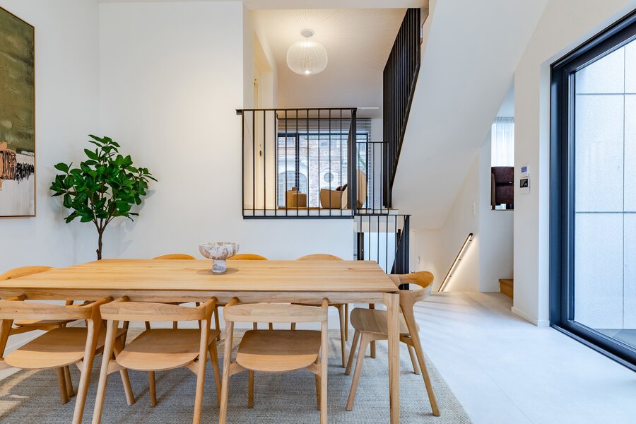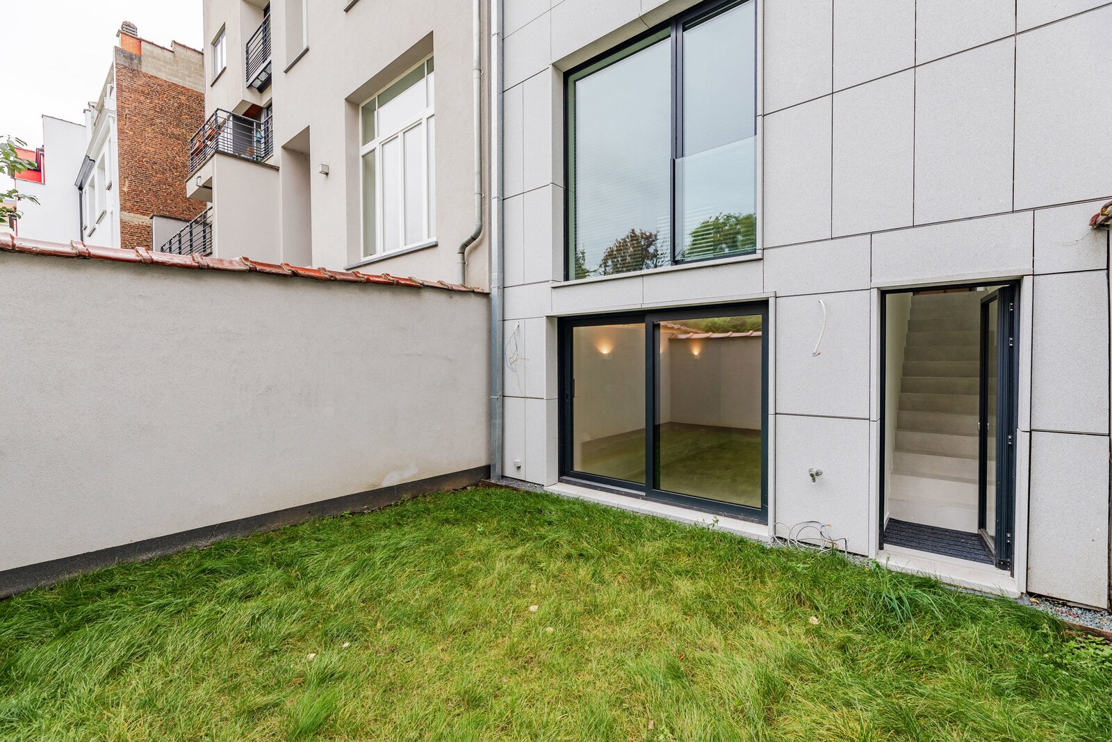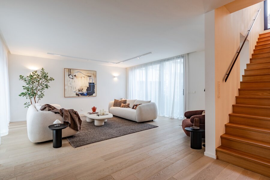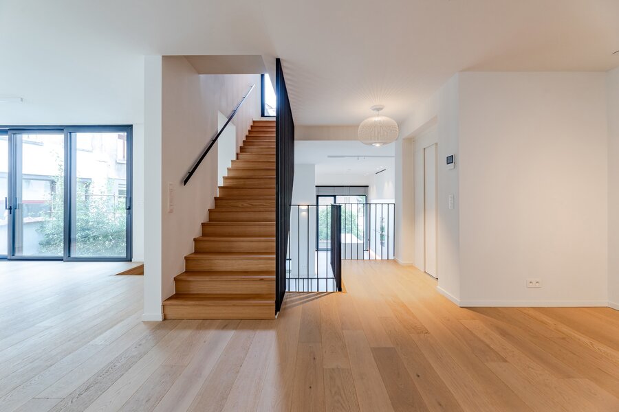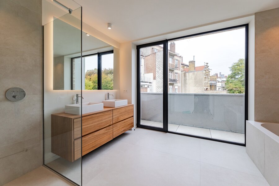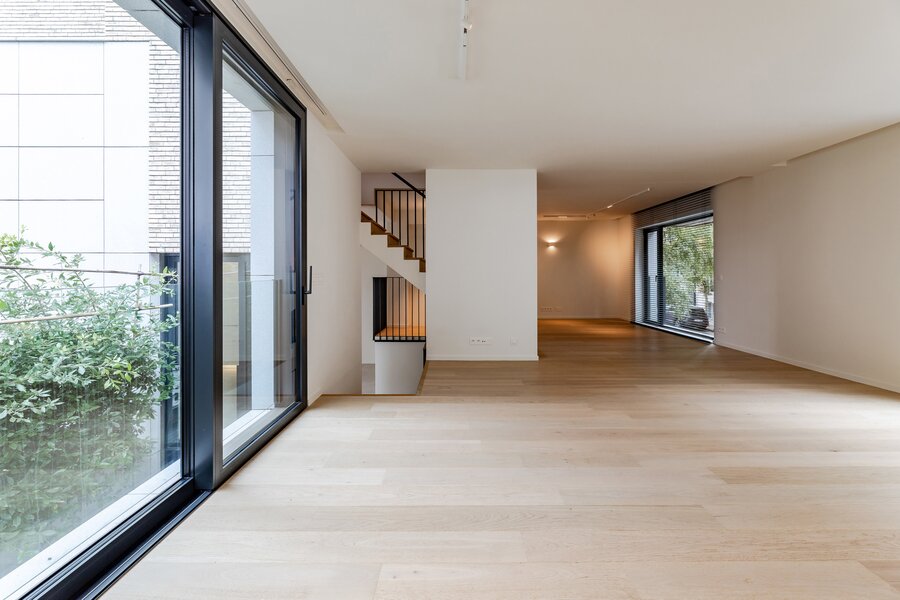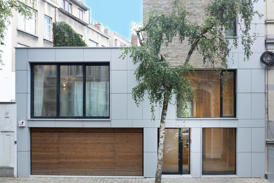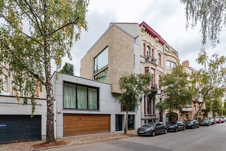 A short walk from Place Brugmann, a stunning new contemporary house with an 11-metre façade. Very bright with its three façades. With a gross surface area of 467 m², 4 complete suites, a space dedicated to the practice of a liberal profession, a wellness area with sauna (optional equipment), several terraces and a charming garden (land +/- 160 m²). Possibility of converting the space dedicated to professional practice into a fifth bedroom. Lift, 2-car garage + bicycle/motorbike parking. PEB A