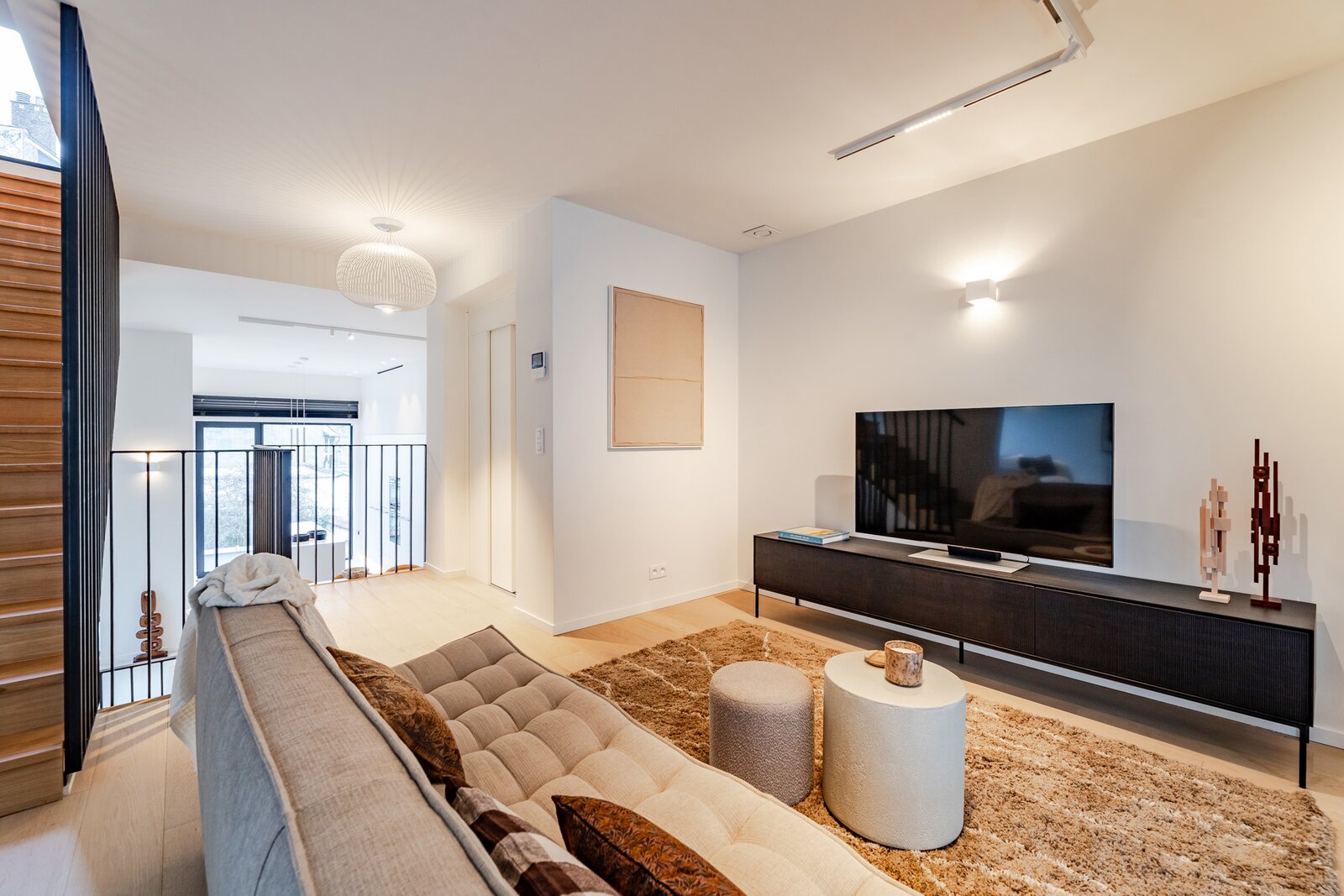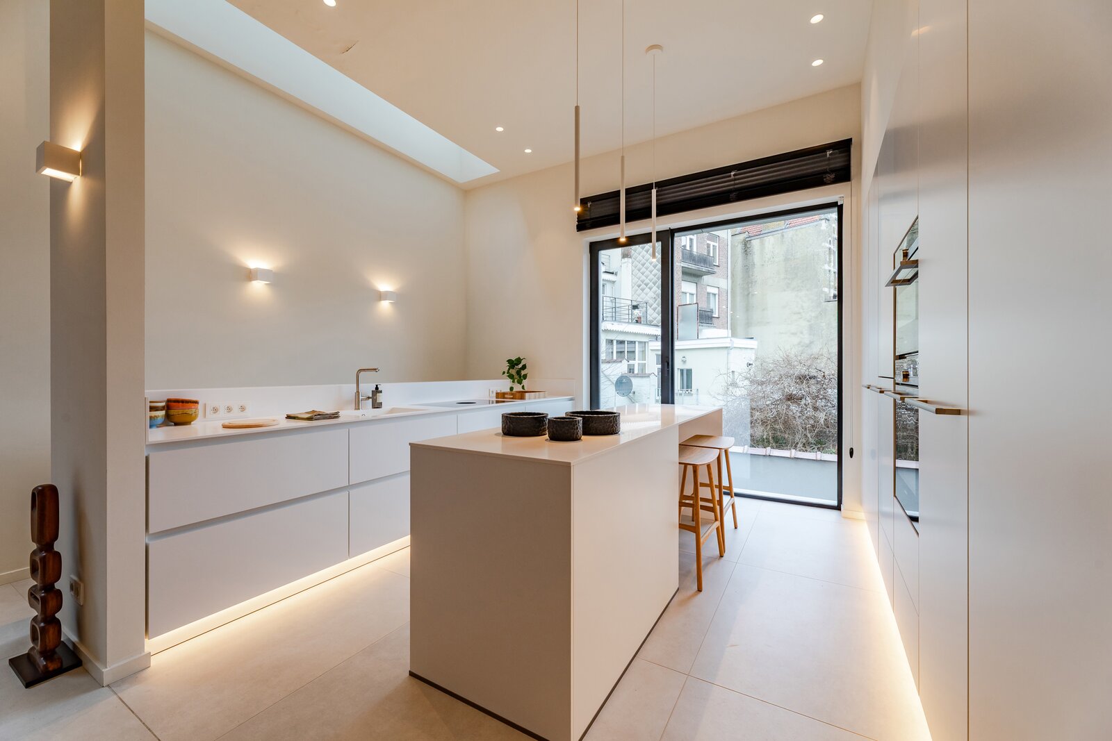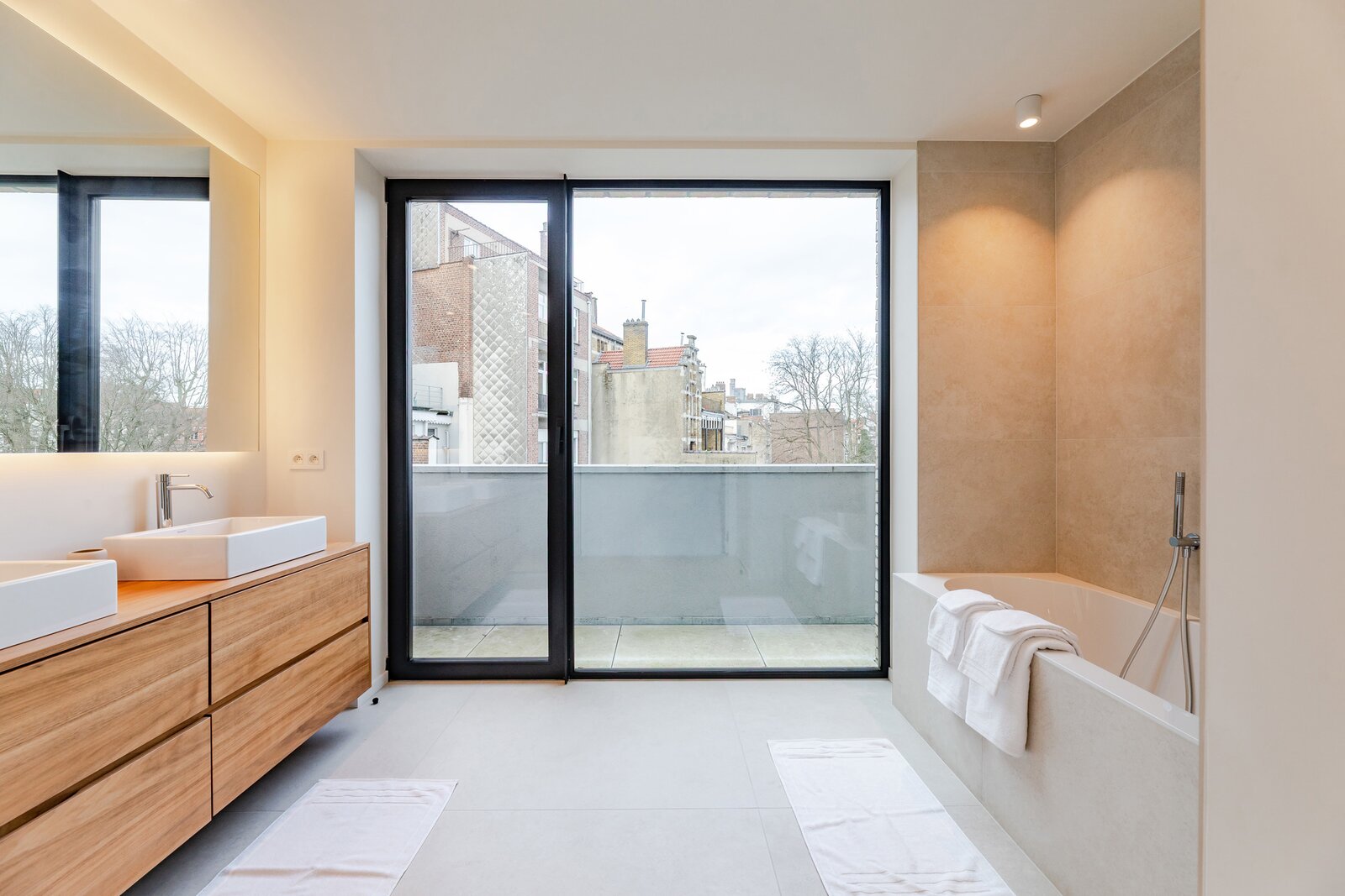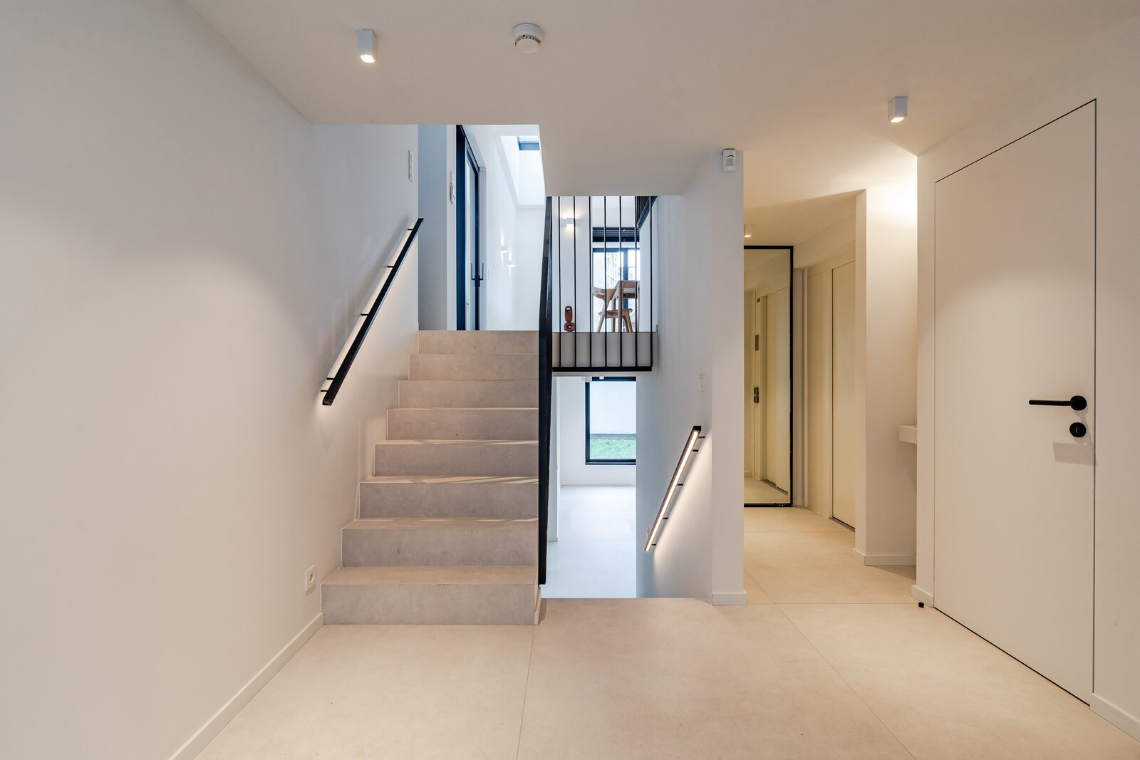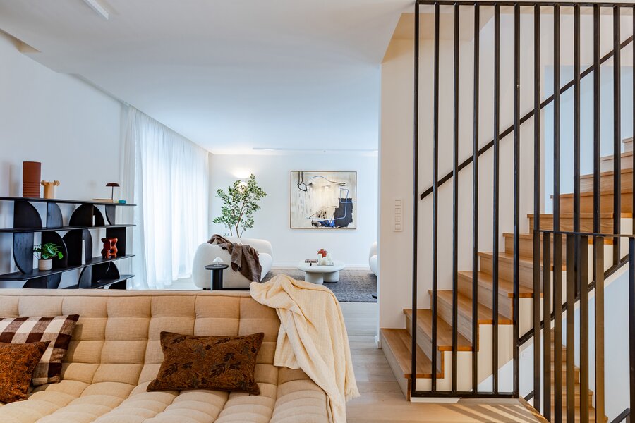 A short walk from Place Brugmann, a stunning new contemporary house with an 11-metre façade. Very bright with its three façades. With a gross surface area of 467 m², 4 complete suites, a space dedicated to the practice of a liberal profession, a wellness area with sauna (optional equipment), several terraces and a charming garden (land +/- 160 m²). Possibility of converting the space dedicated to professional practice into a fifth bedroom. Lift, 2-car garage + bicycle/motorbike parking. PEB A