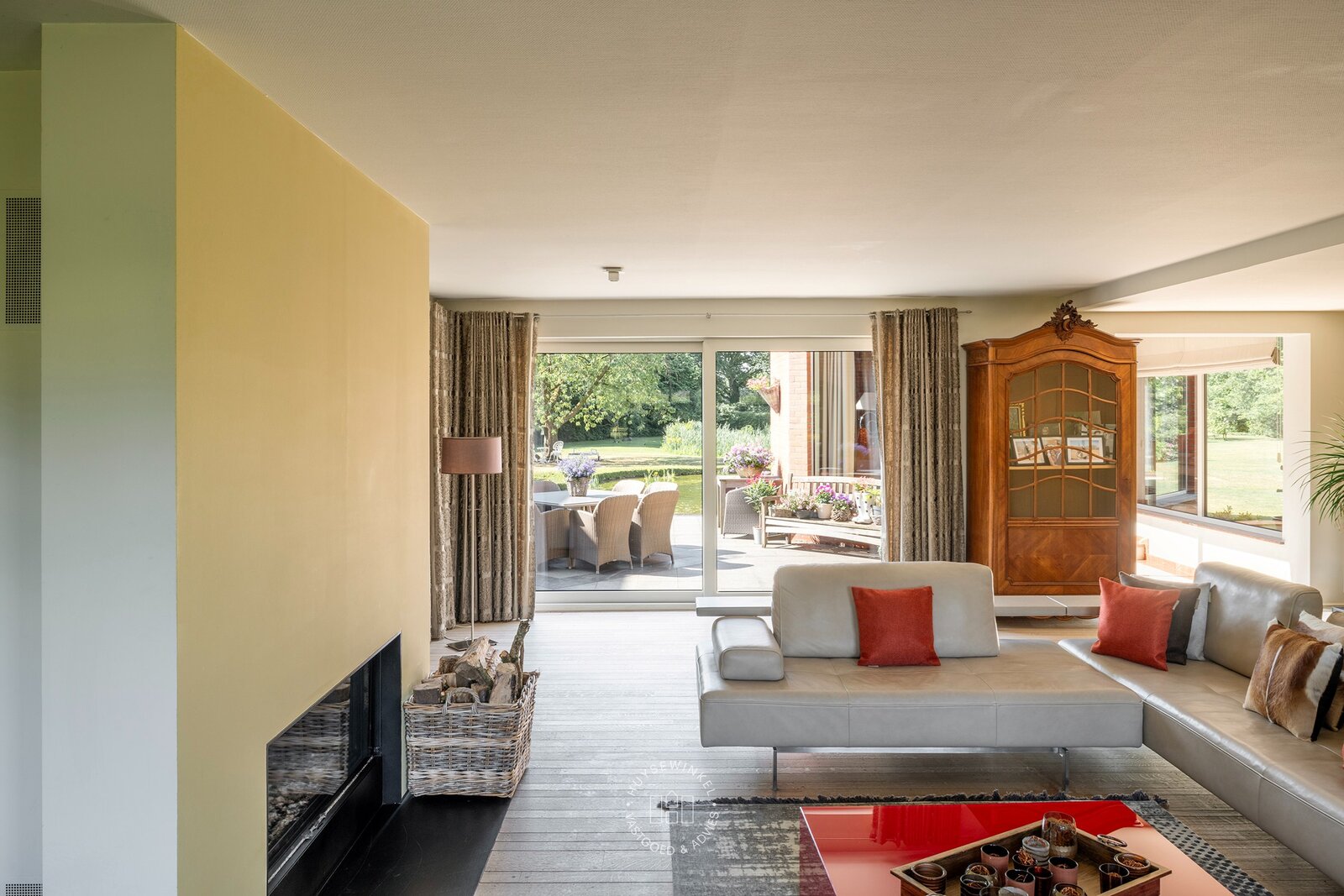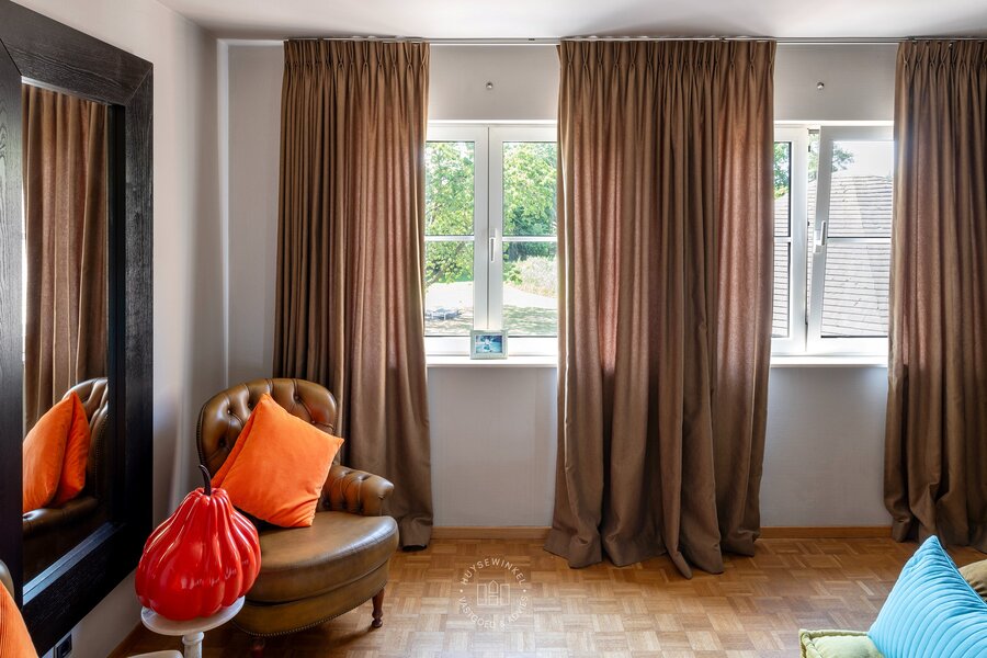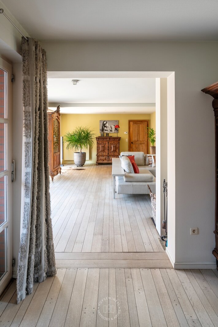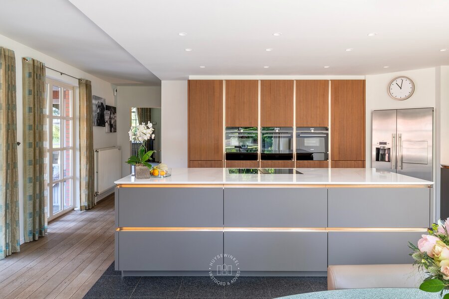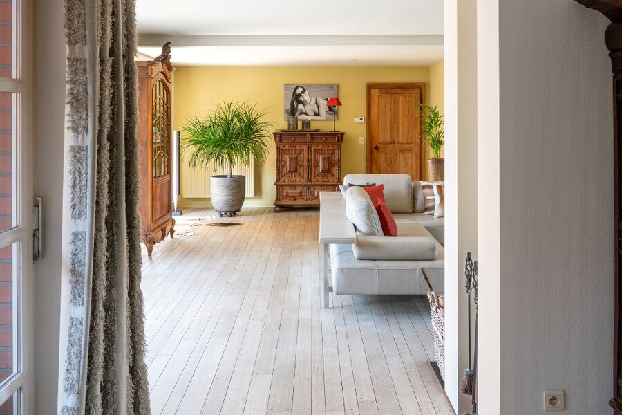 Binnenin straalt de woning karakter en authenticiteit uit. De gebruikte materialen zijn met zorg gekozen en uitstekend onderhouden, wat het unieke karakter van het pand ten volle behoudt. De recent vernieuwde keuken combineert hedendaags comfort met warme landelijke accenten en staat in directe verbinding met de tuin – een ideale setting voor wie houdt van buitenleven, licht en openheid. Grote raampartijen zorgen voor een constante interactie tussen binnen en buiten.