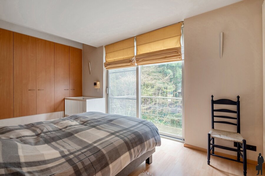 - Een slaapkamer (19,5m²) met balkon en ingemaakte kastenwand