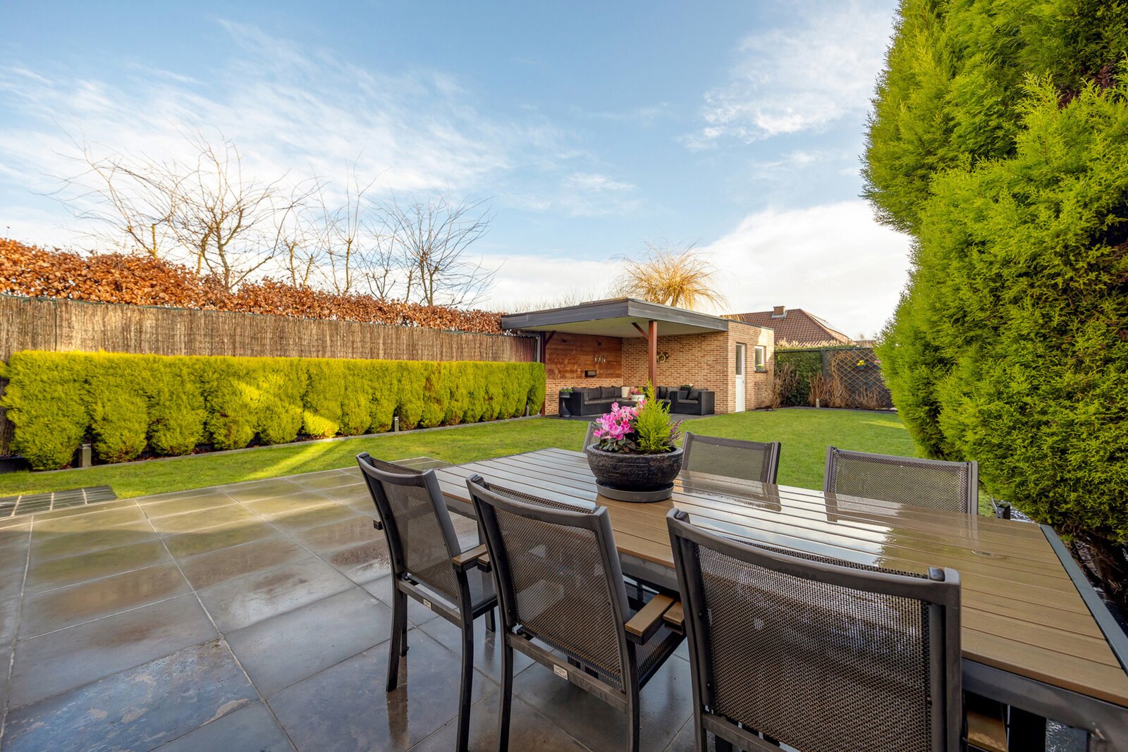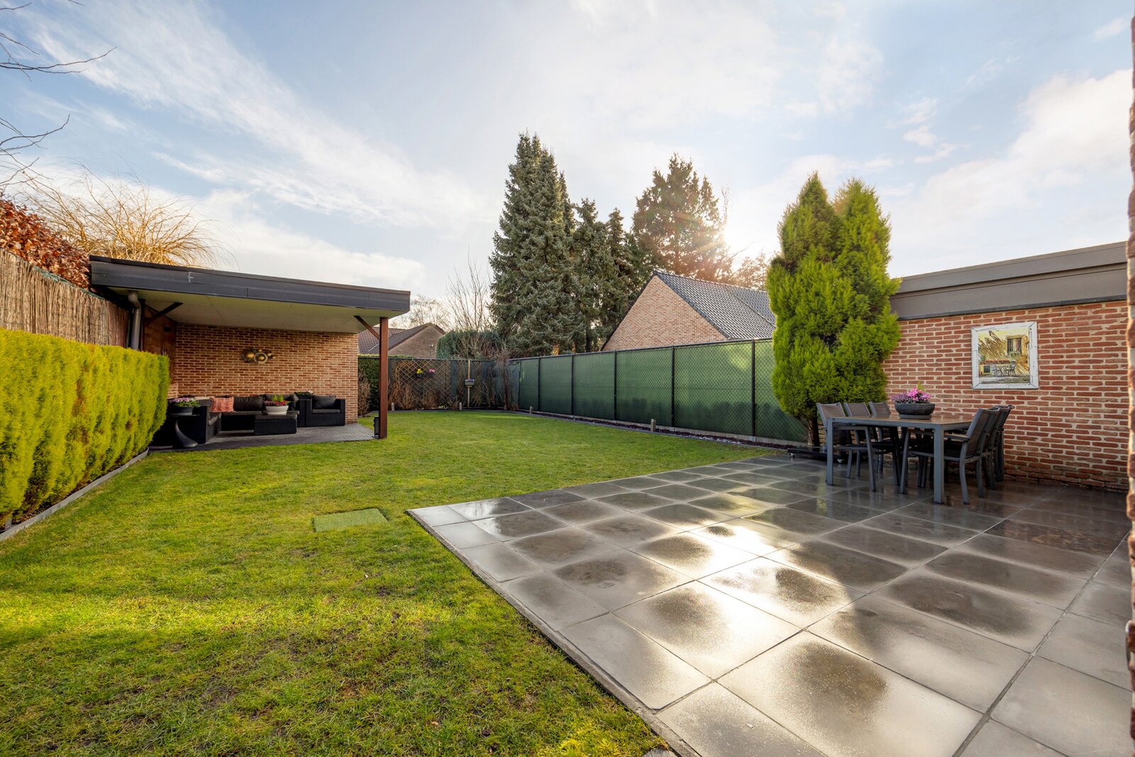 De oostelijk georiënteerde tuin is netjes aangelegd en beschikt over een overdekt terras en een praktische tuinberging. Dankzij de doordachte inrichting geniet u hier van optimale privacy en rust.