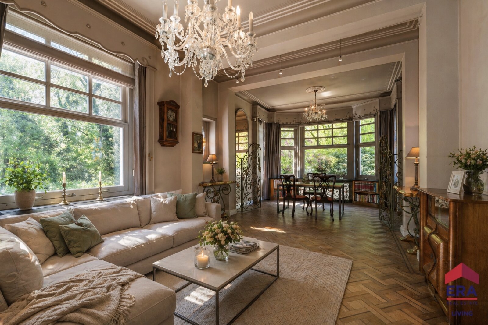 The property offers a usable floor area of 385 m² and combines space, comfort, and authentic charm. Inside, you are welcomed by numerous original features that blend perfectly with modern-day living comfort.