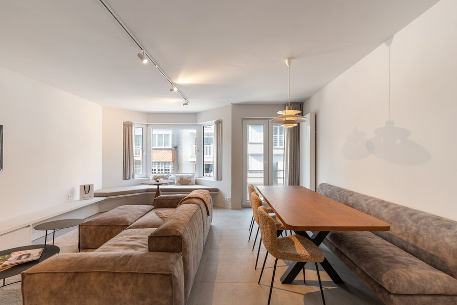 Instapklaar en stijlvol appartement met terras en zijdelings zeezicht op topligging nabij de Zeedijk in Knokke