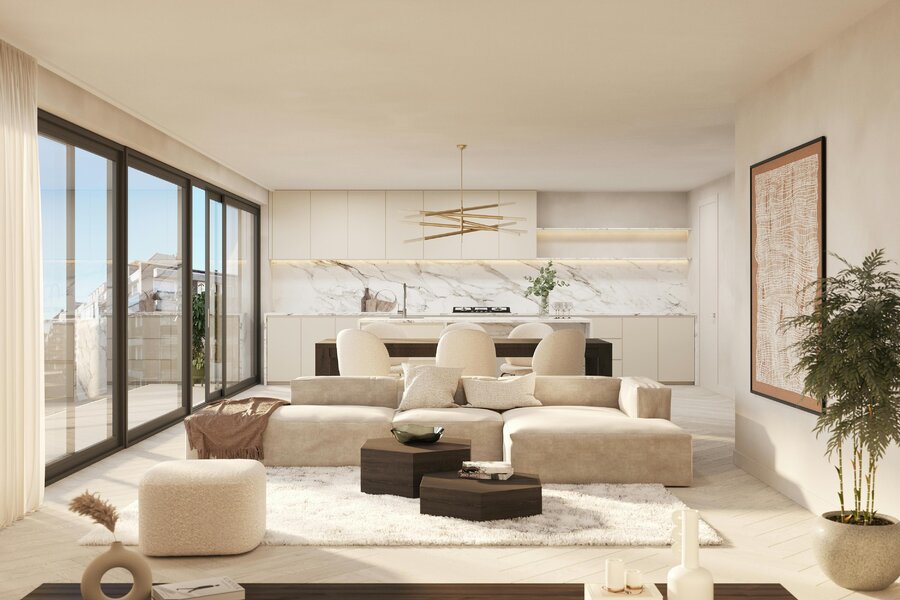 At the beginning of the commercial Zeelaan in Koksijde-Bad, we find this high-quality new construction project Residentie Caline. A small-scale residence consisting of 4 spacious (residential) apartments from 129m² to 164m². Each apartment also has terraces ranging from 21m² to 53m².
