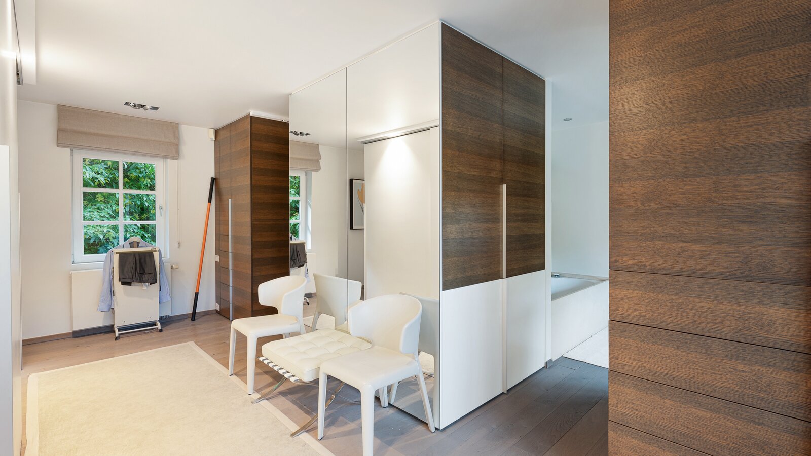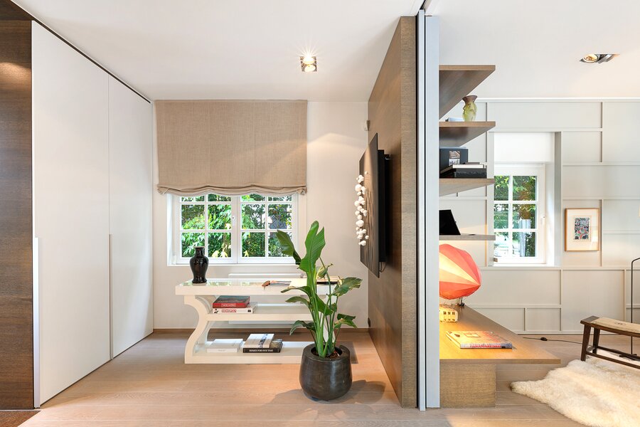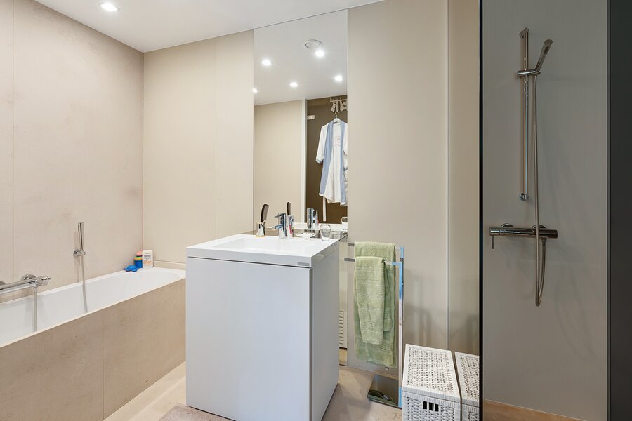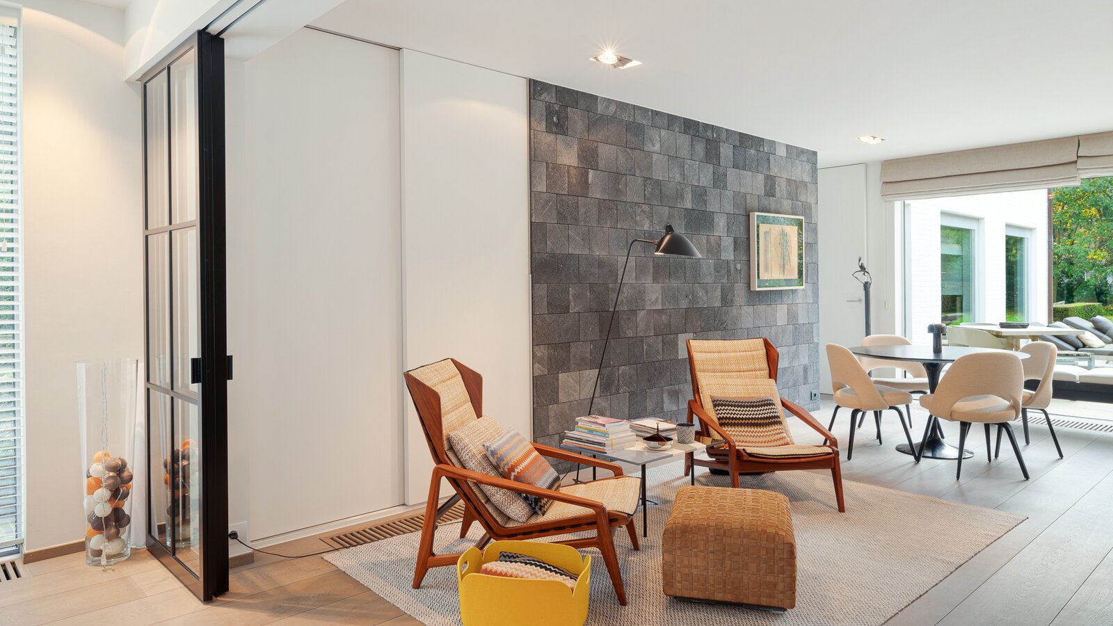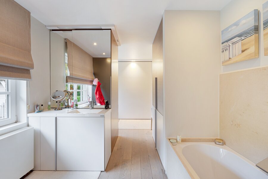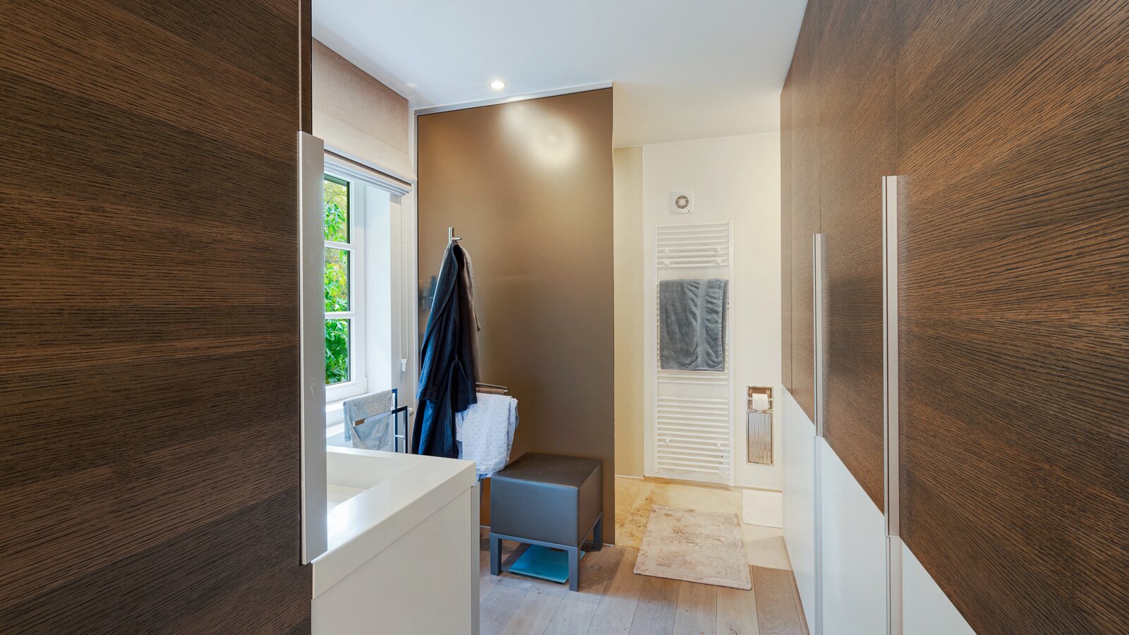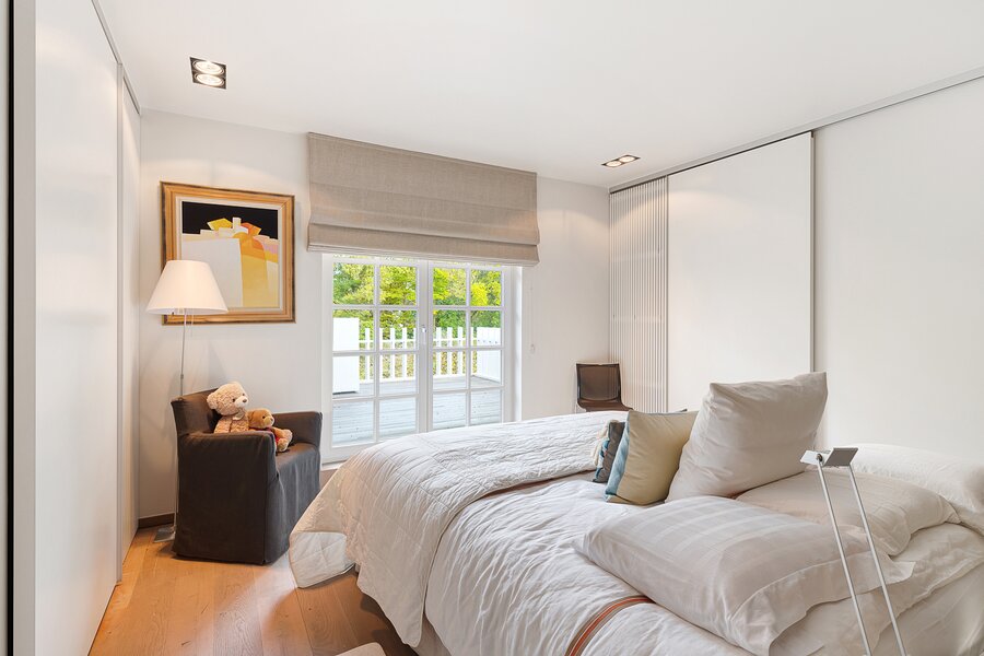 Entrance hall with checkroom and guest toilet. Spacious and luminous living room with fireplace opening onto the terrace with pool. Fully equipped open kitchen opening onto a covered terrace and adjoining dining room. Separate shower room, toilet and garage for 2 cars. On the second floor: Master bedroom with dressing room, shower room and bathroom. Two other spacious bedrooms, each with dressing room and bathroom. Office space. On the second floor: fully equipped guest house and a storage room. Fourth bedroom with bathroom. Beautiful sunny garden and spacious terraces with swimming pool. Very spacious outdoor parking lot with room for several cars. In the basement we find a technical room, laundry room, cool storage room and wine cellar. Rare offer!