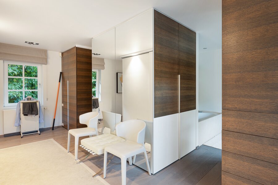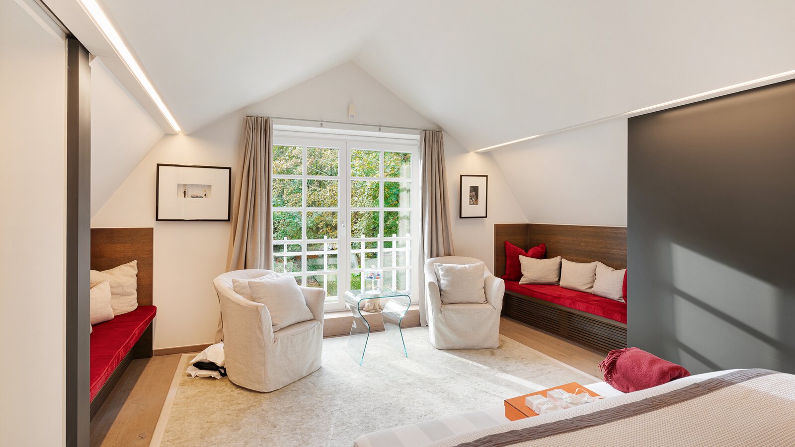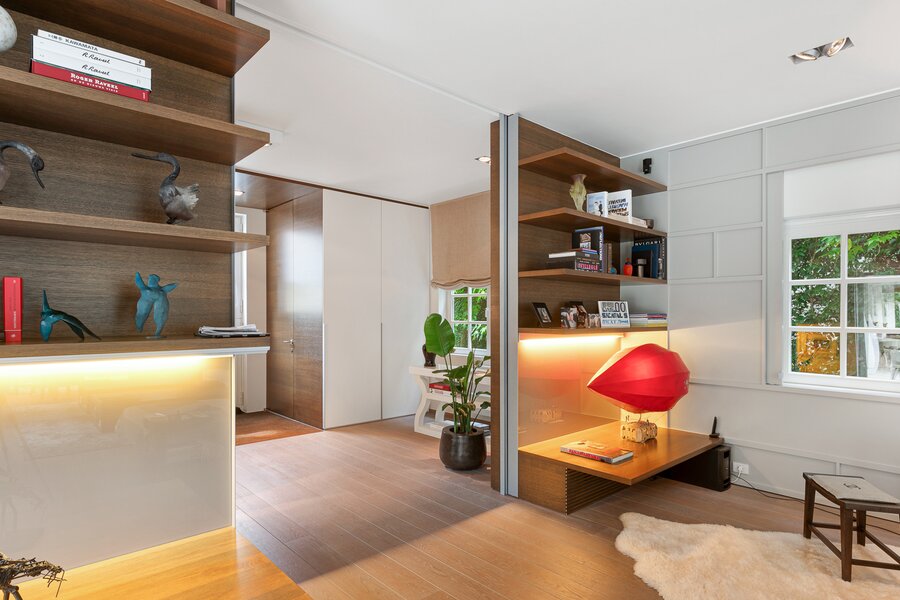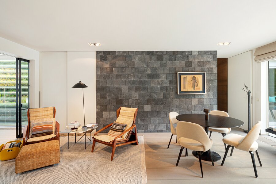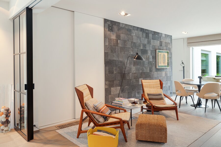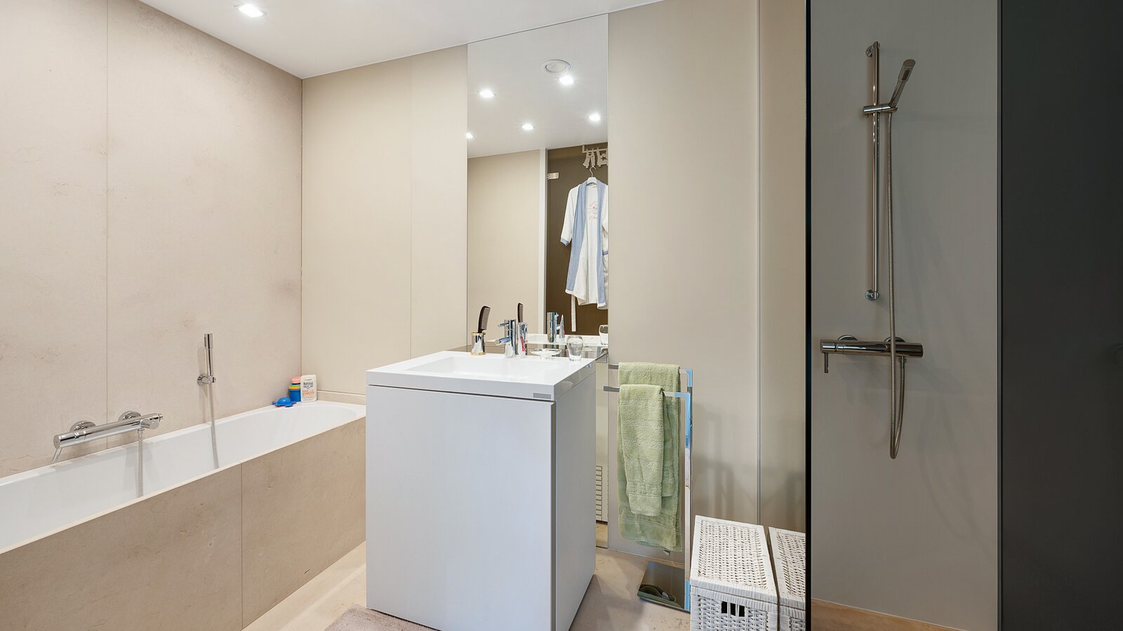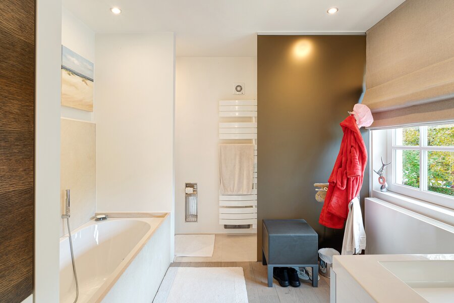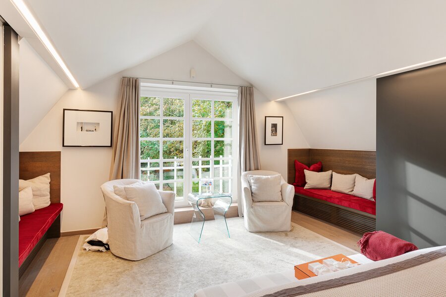 Entrance hall with checkroom and guest toilet. Spacious and luminous living room with fireplace opening onto the terrace with pool. Fully equipped open kitchen opening onto a covered terrace and adjoining dining room. Separate shower room, toilet and garage for 2 cars. On the second floor: Master bedroom with dressing room, shower room and bathroom. Two other spacious bedrooms, each with dressing room and bathroom. Office space. On the second floor: fully equipped guest house and a storage room. Fourth bedroom with bathroom. Beautiful sunny garden and spacious terraces with swimming pool. Very spacious outdoor parking lot with room for several cars. In the basement we find a technical room, laundry room, cool storage room and wine cellar. Rare offer!
