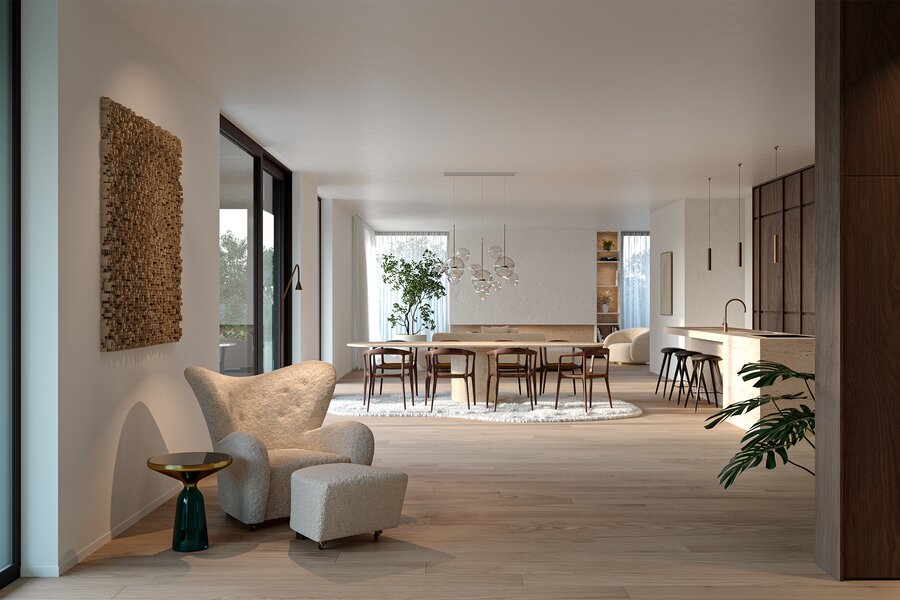 Duurzaam wonen staat centraal in "The Suites", met voorzieningen zoals zonnepanelen, regenwaterrecuperatie, een warmtepomp en pre-installaties voor laadpalen. Het project zal een E-peil van E10 of lager behalen. Voor de afwerking zijn ruime budgetten voorzien, zodat elk appartement volledig naar eigen smaak kan worden ingericht samen met onze klantenbegeleiders. Het ontwerp is in handen van internationaal gerenommeerd architect Dieter Vander Velpen, die voor een tijdloze en verfijnde uitstraling heeft gezorgd.
