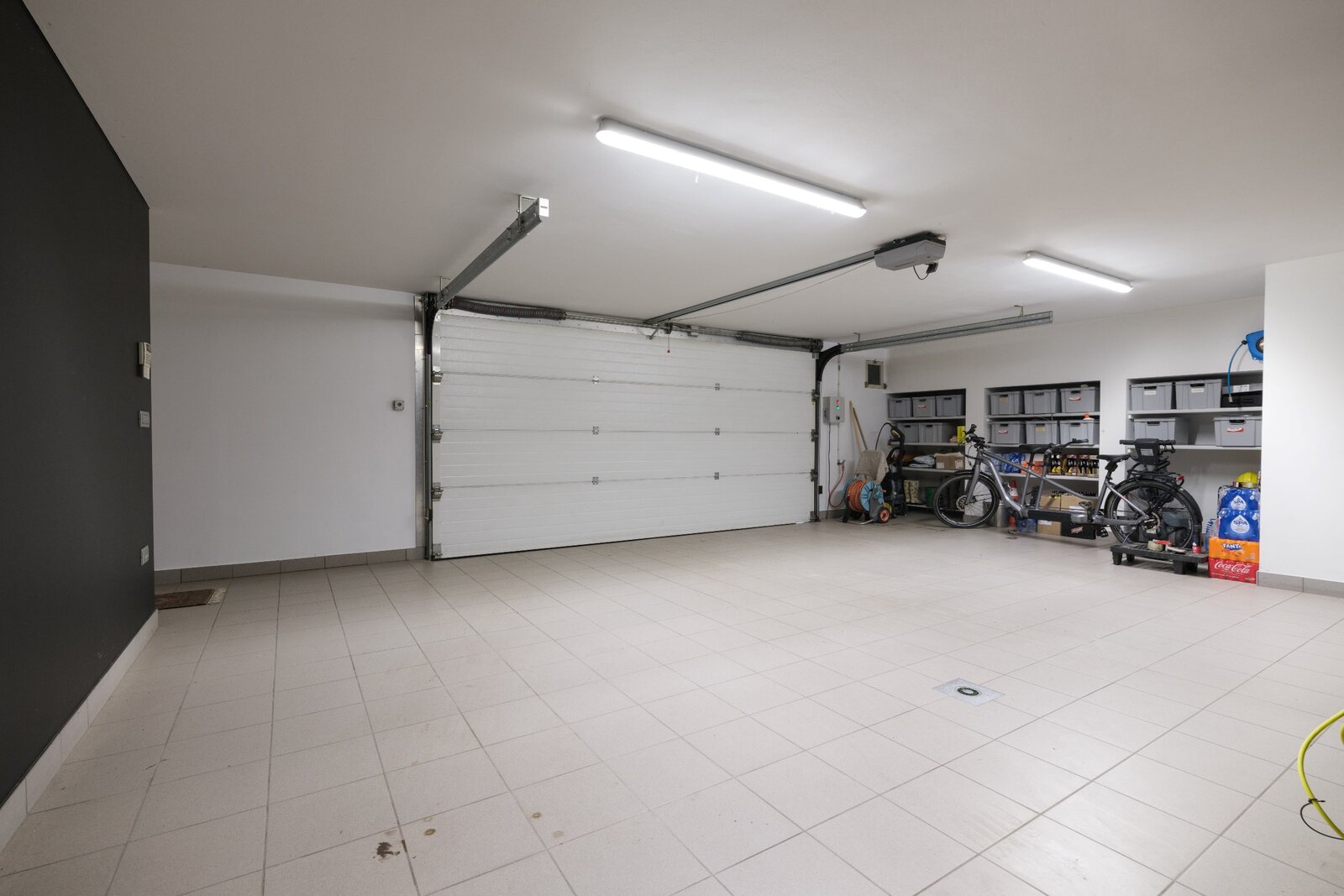De tuin is schitterend aangelegd met zuidgerichte terrassen voorzien van zonneluifel aanpalend de woning en een overdekt terras achteraan in de tuin. Verwarmd buitenzwembad (via warmtepomp) met automatisch roldeck. Tuinberegening aanwezig, aangesloten op geboorde put. Verder nog een praktische tuinberging.