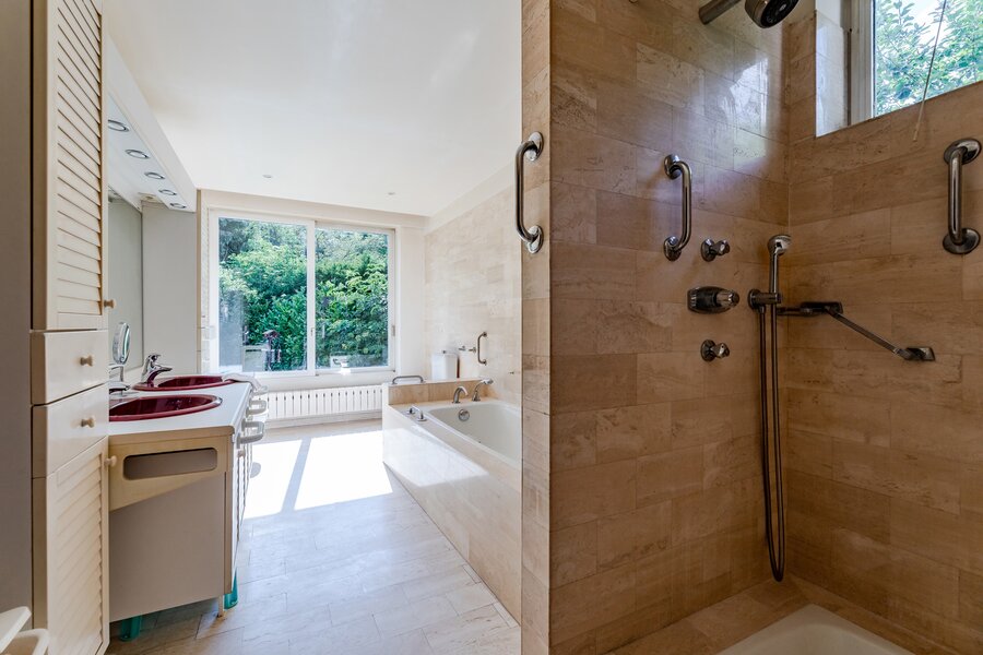 On the edge of Uccle, in a quiet, leafy residential setting, attractive family villa built in 1985, enjoying a magnificent south-west-facing garden (plot of 25.67 ares).