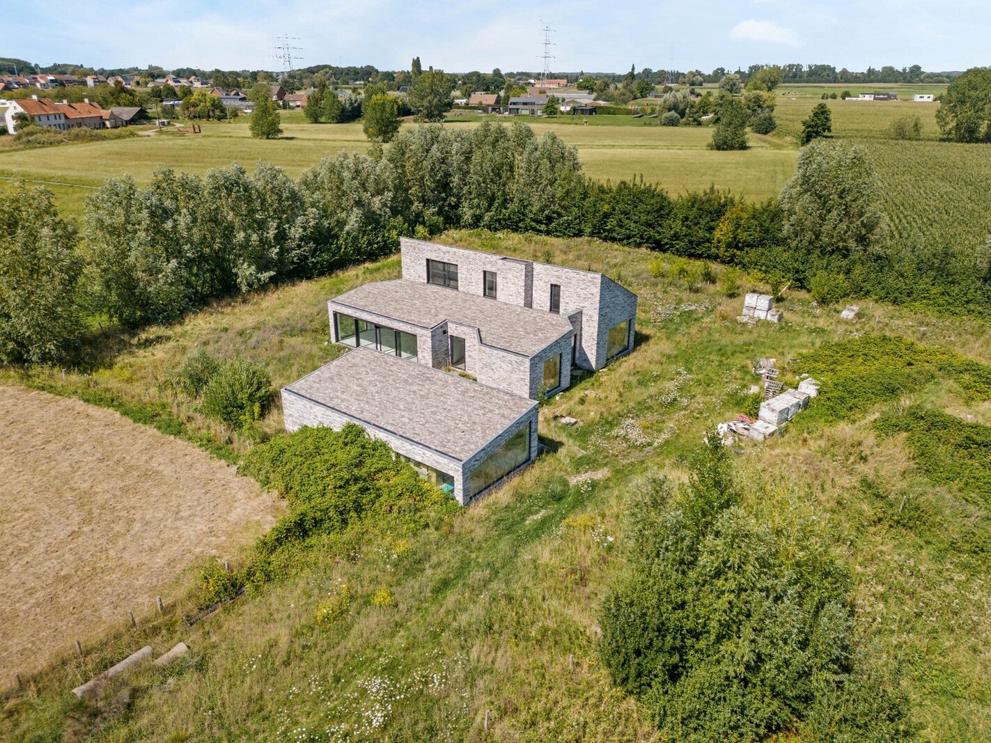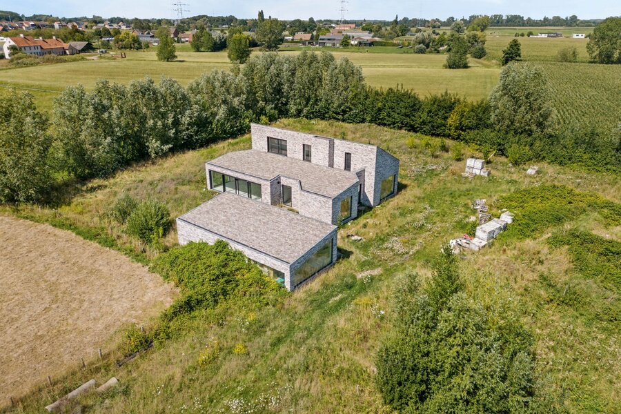 Centraal op het perceel staat een moderne woning in casco-staat, ontworpen door de gerenommeerde binnenarchitecte Antoinette Tondreau. De ruwbouw weerspiegelt een hedendaagse, elegante stijl en vormt de ideale basis om jouw droomwoning volledig naar eigen smaak af te werken.