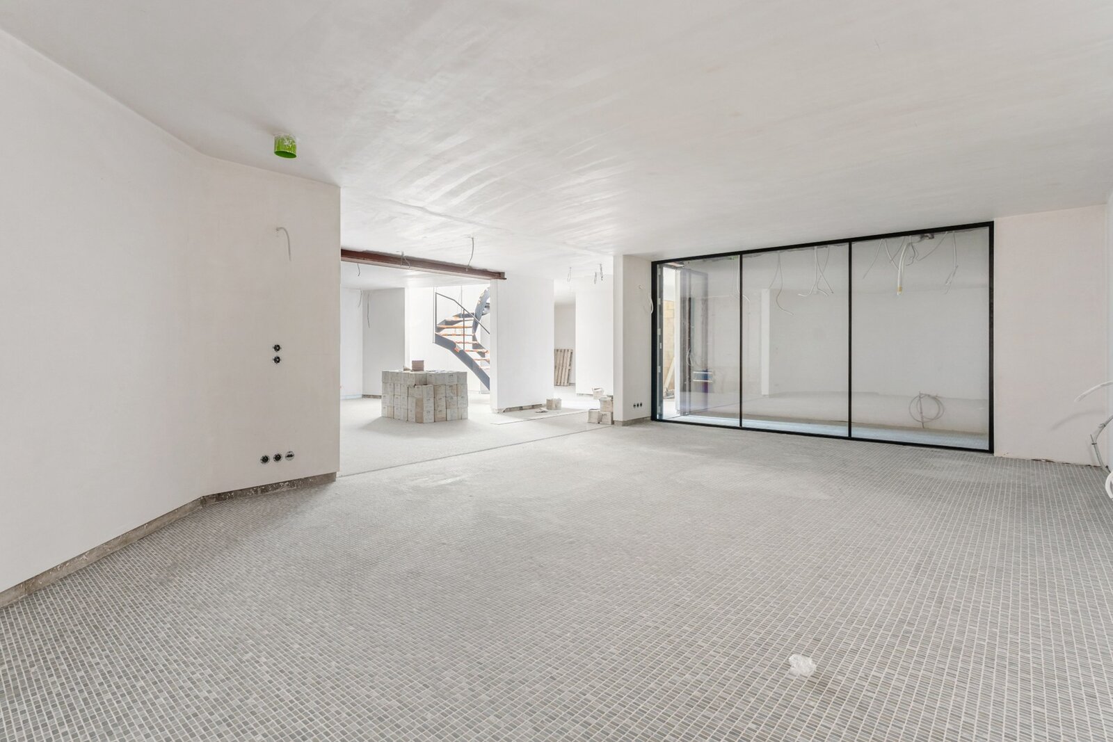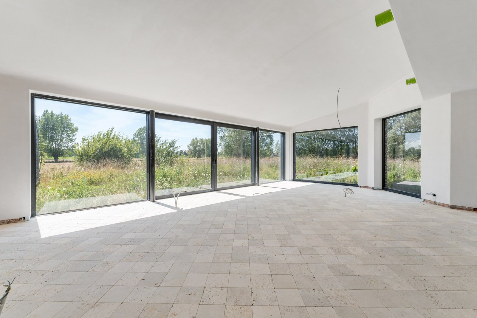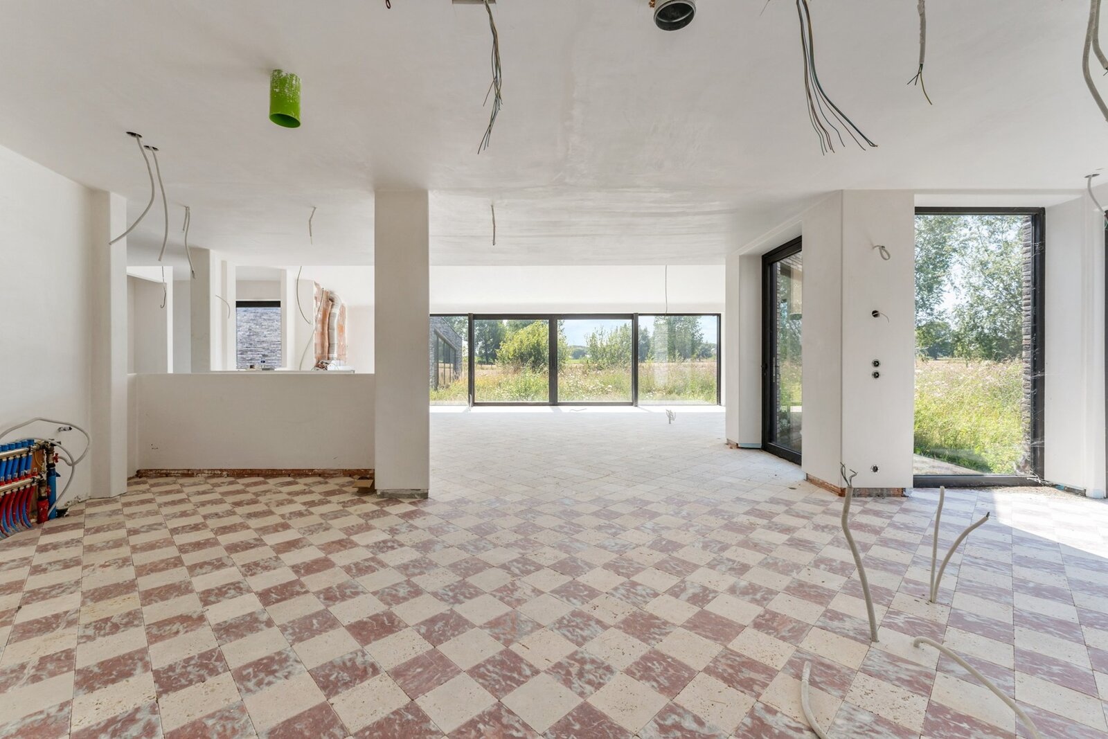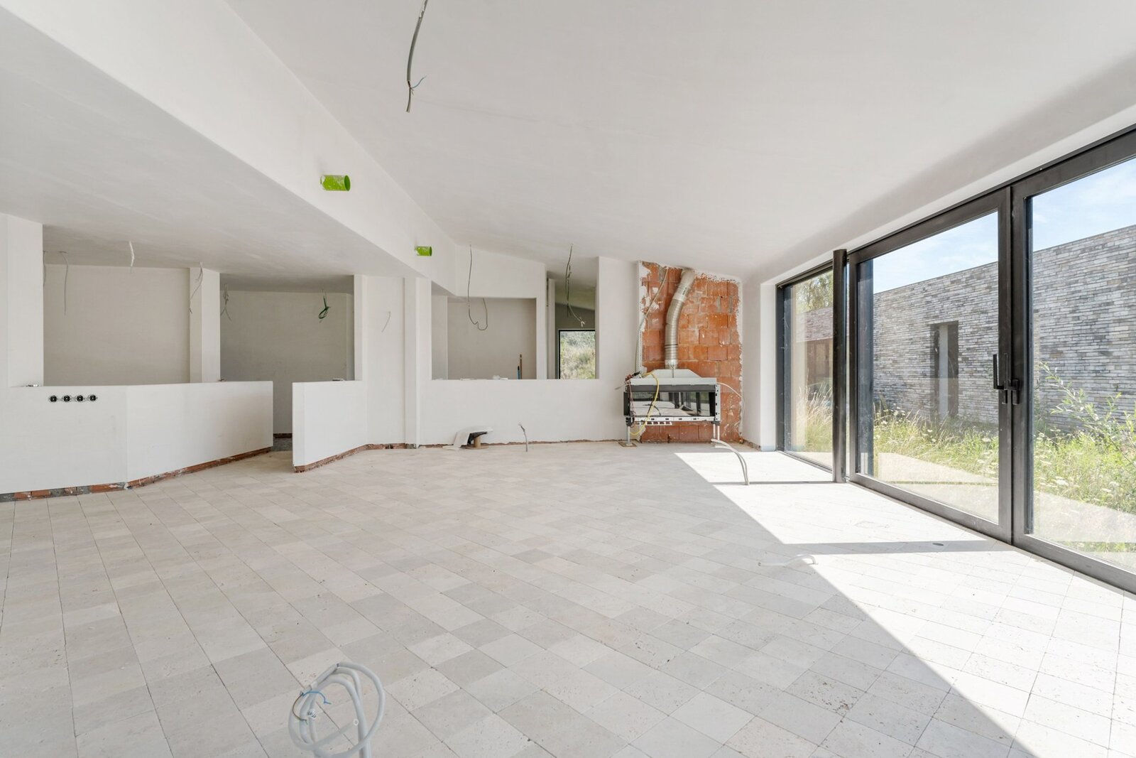 De villa en bijgebouw is reeds voorzien van ramen en buitendeuren. De leidingen van elektriciteit en sanitair is reeds geplaatst. De vloeren zijn deels gelegd. De vloeren en tegels (badkamers) zijn ter plaatse en voorzien in de aankoopprijs alsook verschillende andere afwerkingsmaterialen. Dit is door de koper dan zelf nog te plaatsen.