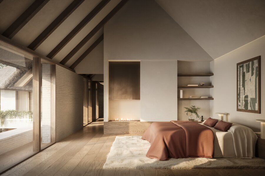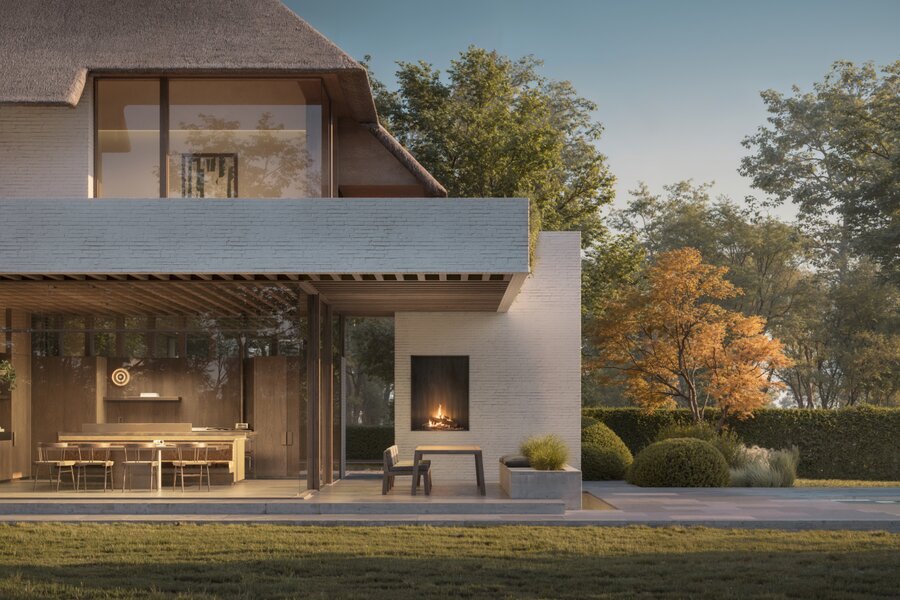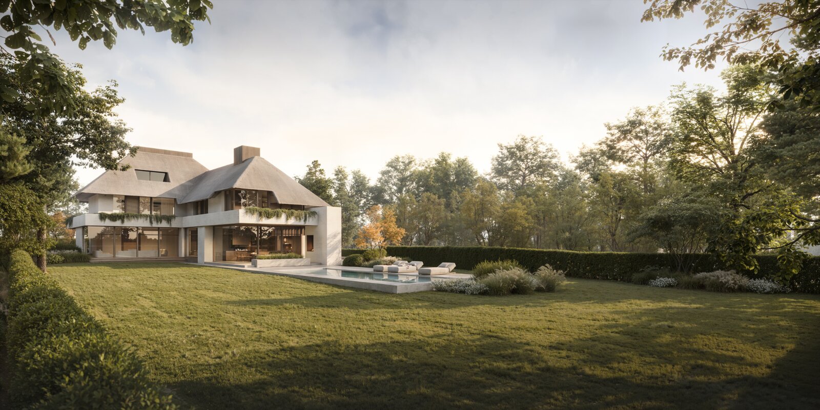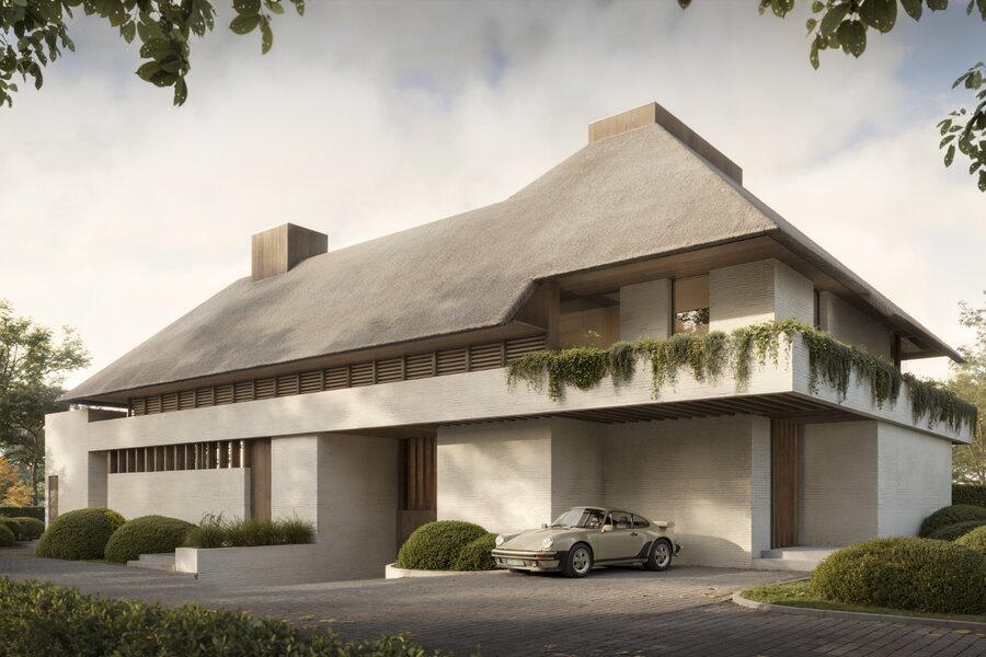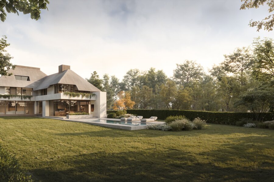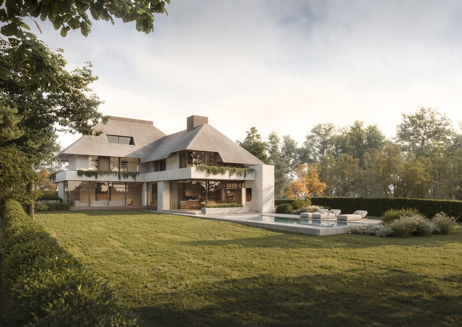 This villa is a model of thoughtful architecture, perfectly balancing openness and security. The south-facing garden with generous pool forms the central resting point, while large windows and strategically placed sight lines subtly bring the outdoors inside. Natural materials and refined details create a warm, understated atmosphere of luxury and serenity.