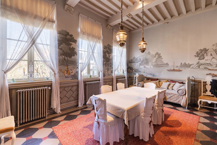 Additional: the garden can be accessed via a separate entrance at the rear. The historic facades overlook the quiet garden of the Archbishop's Palace, providing plenty of light and a serene environment. Optionally, the adjoining house on the left can be bought with it.