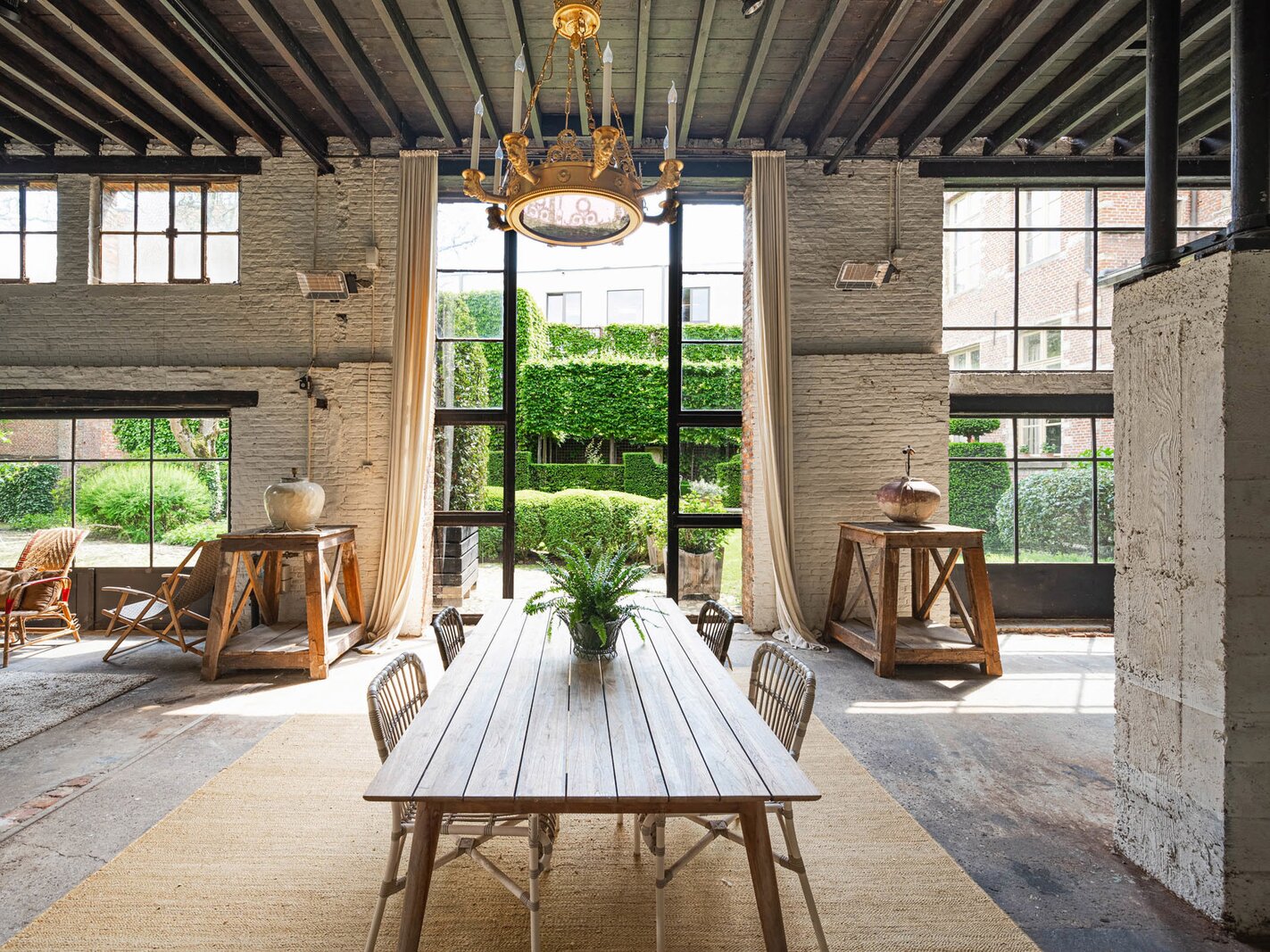 The property is currently being used as a luxury interior design showroom. The ground floor, currently set up as retail space, offers the possibility of being transformed into a spacious kitchen with various living areas, giving direct access to the garden. The first floor features a kitchen, generous dining room and living space, ideal as a master floor. On the top two floors are a bathroom and three bedrooms, one with a separate living space. The south-east facing garden with an attractive winter terrace provides a quiet and pleasant outdoor space.