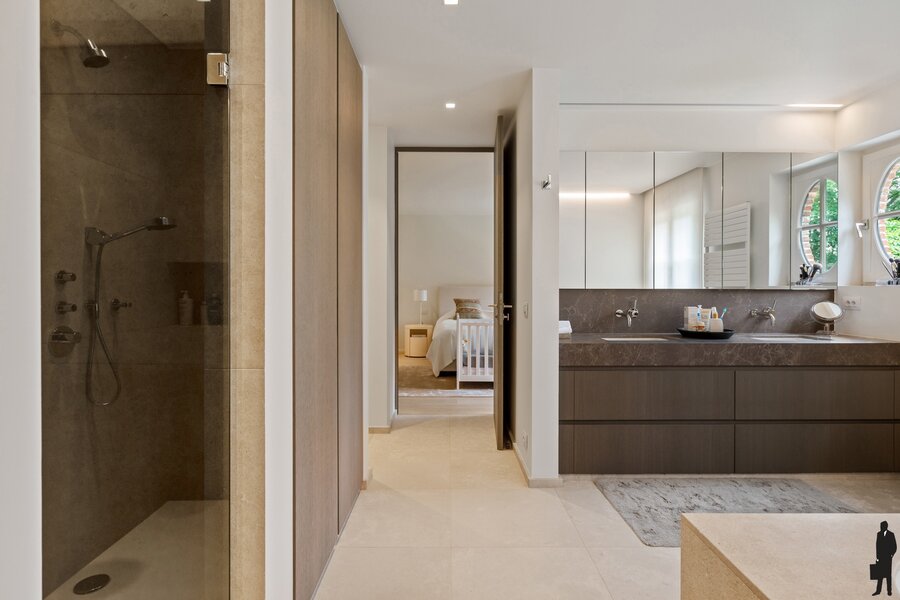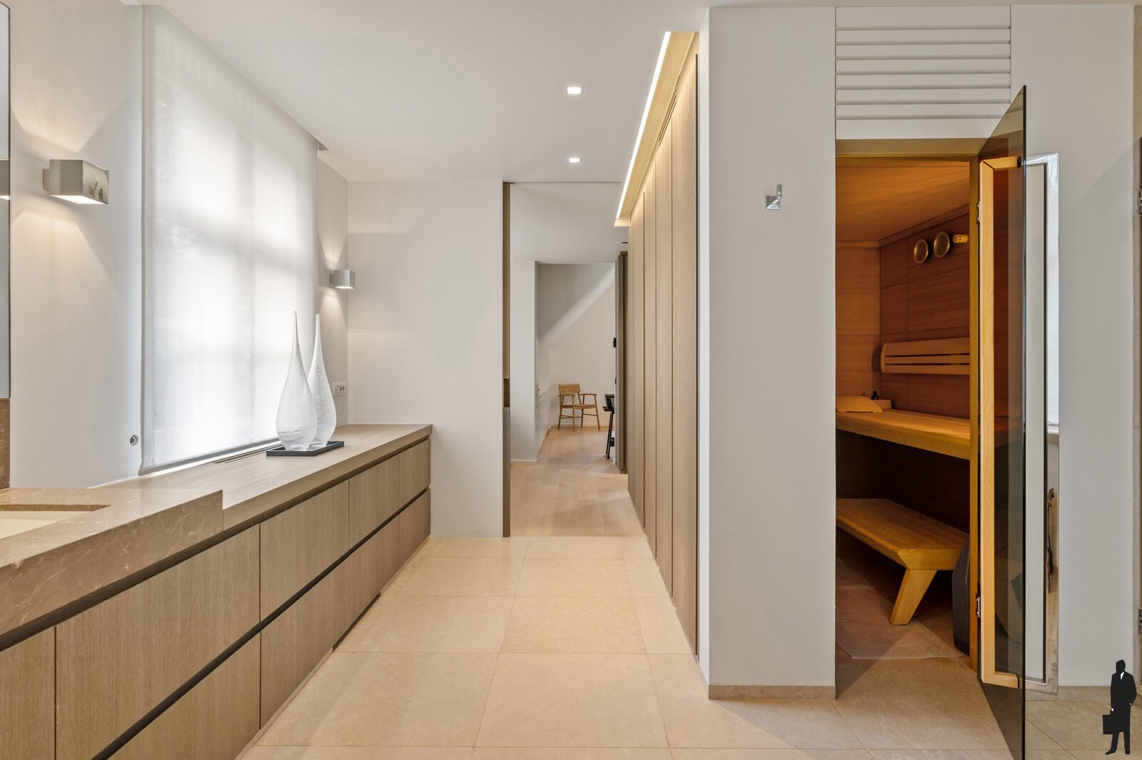 – Mastersuite met slaapkamer, dressing en designbadkamer met inloopdouche, dubbele lavabo en infrarood sauna