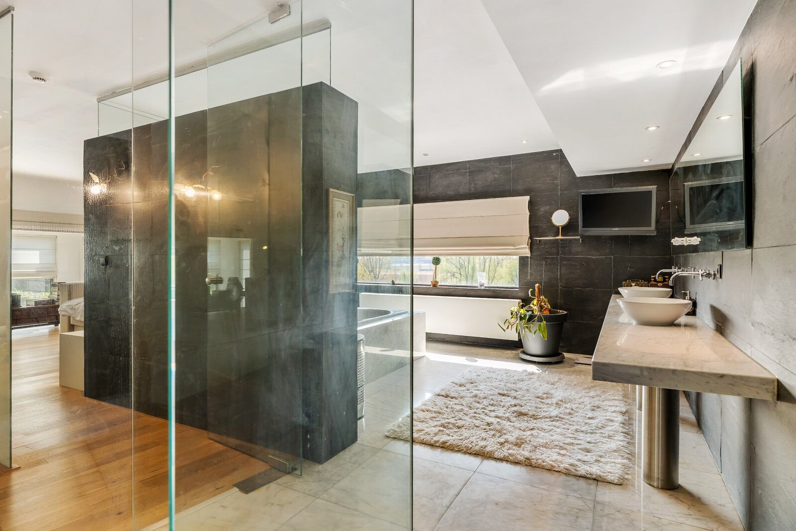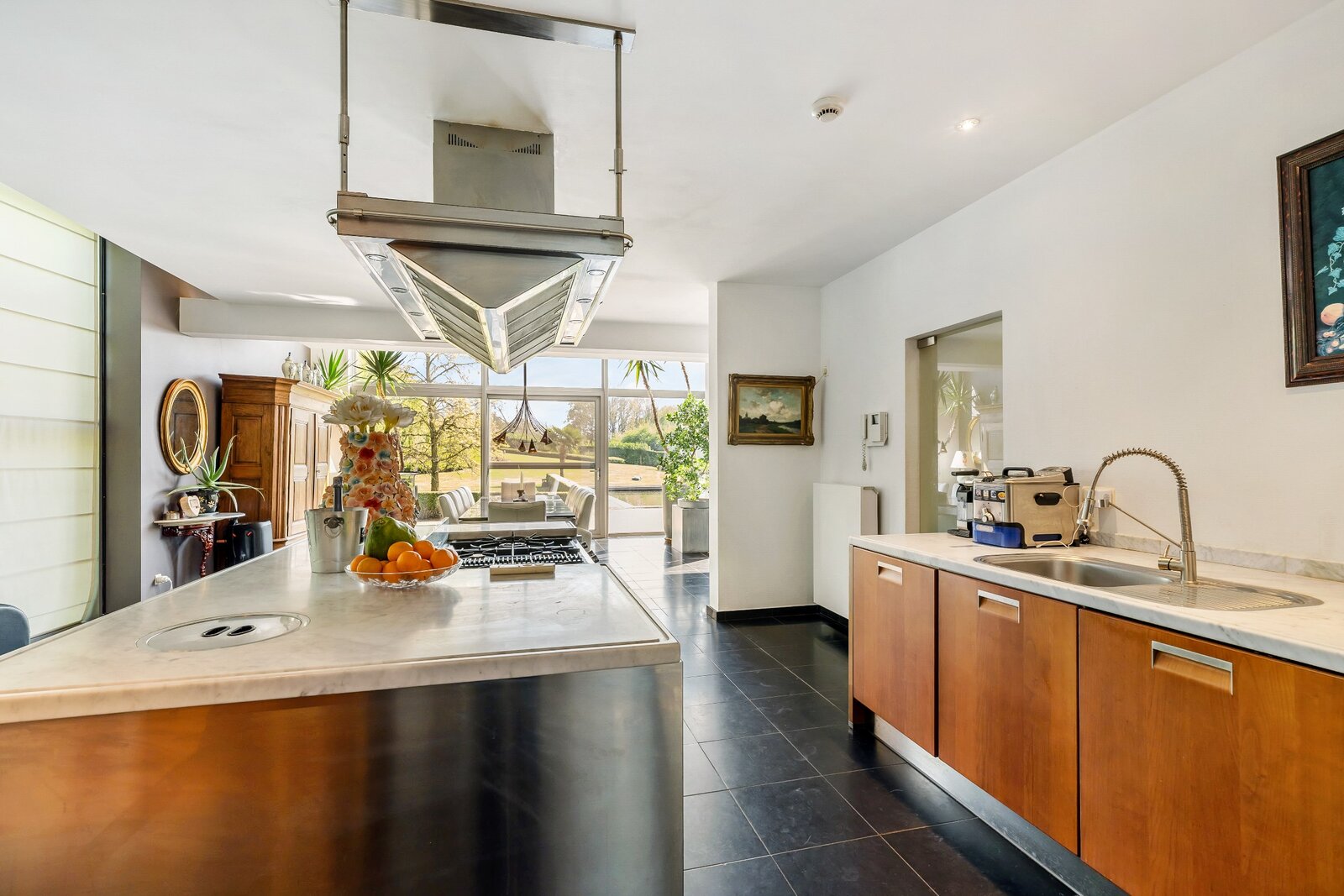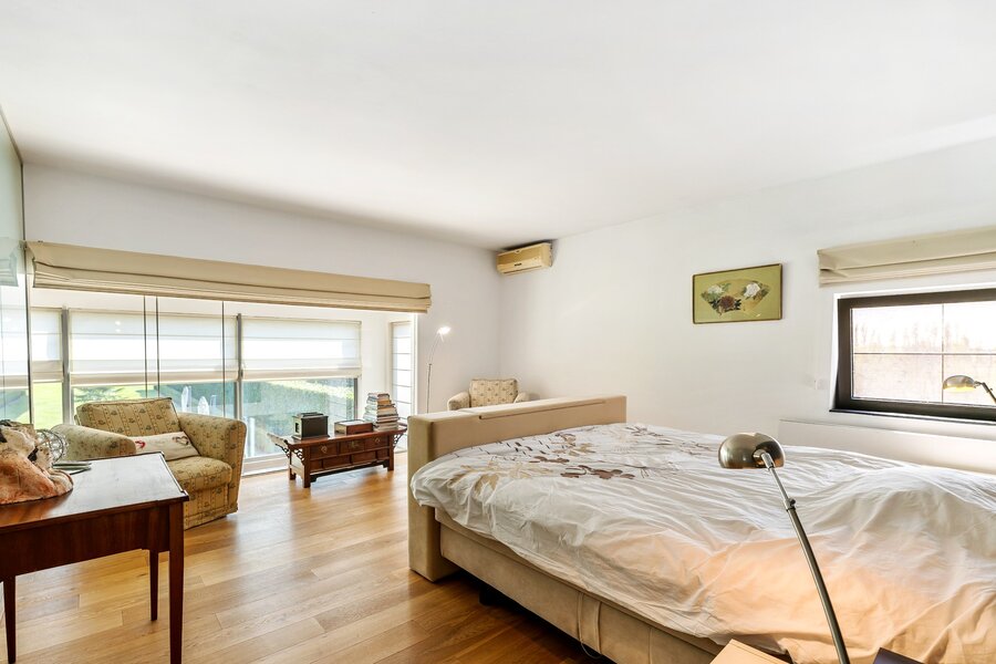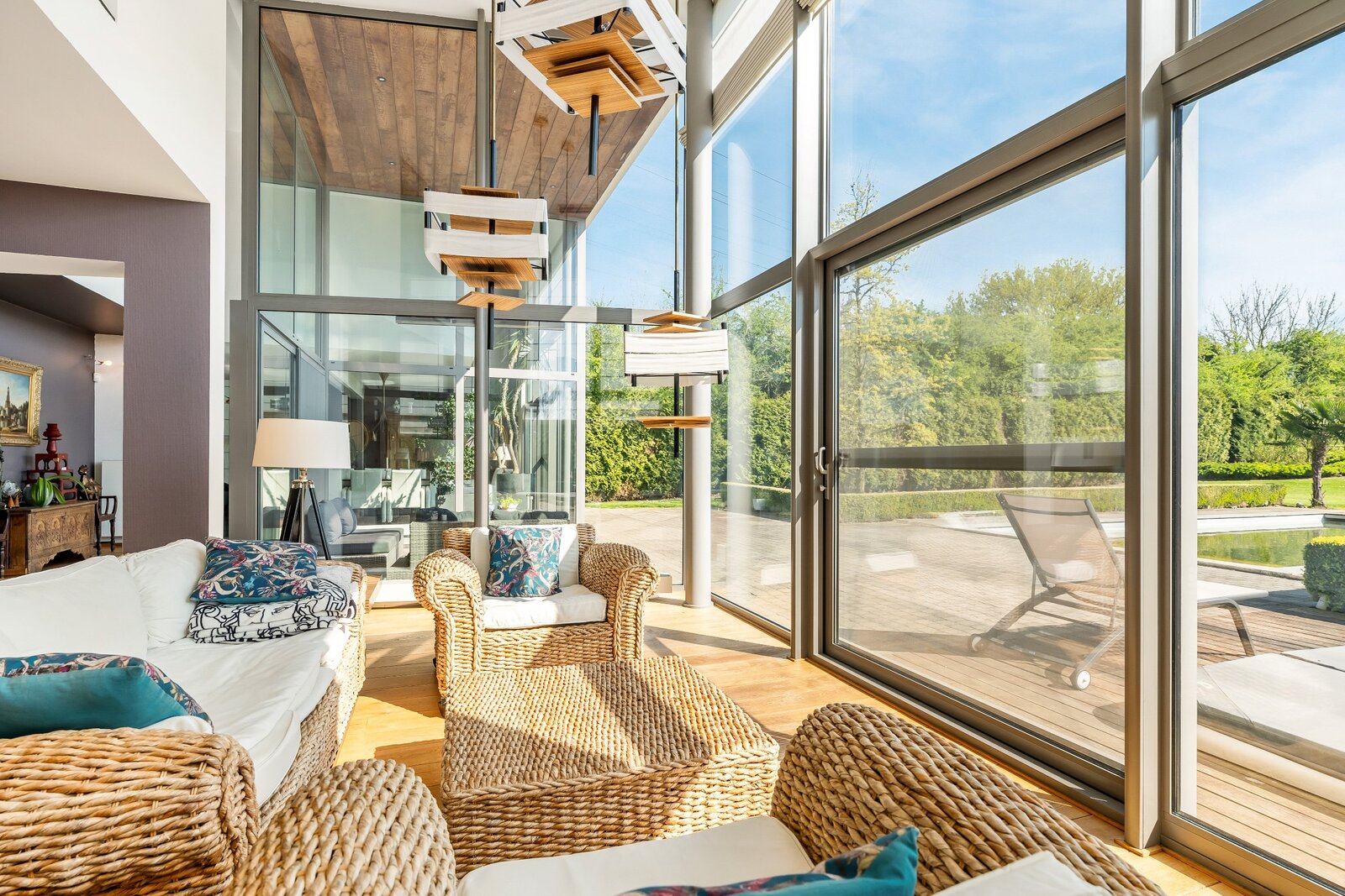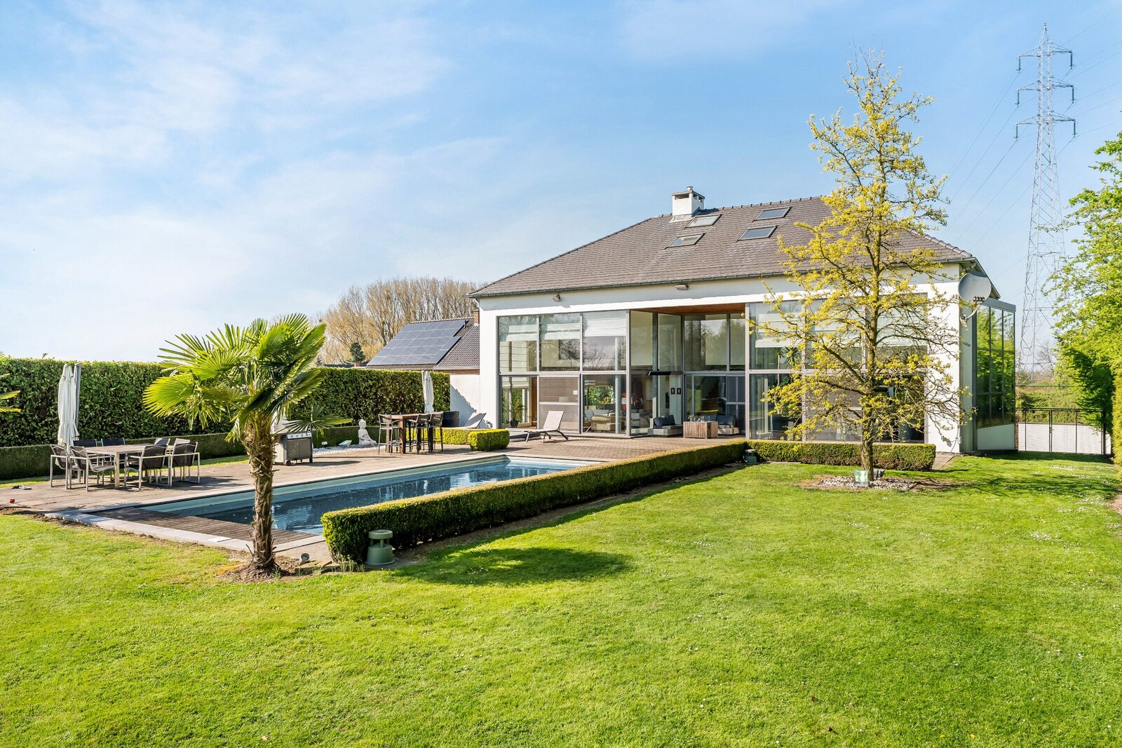 Deze statige villa onderscheidt zich door haar stijlvolle afwerking, royale volumes en overvloedige lichtinval dankzij de grote raampartijen.
