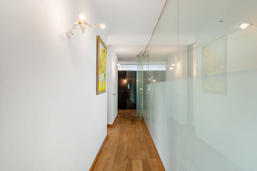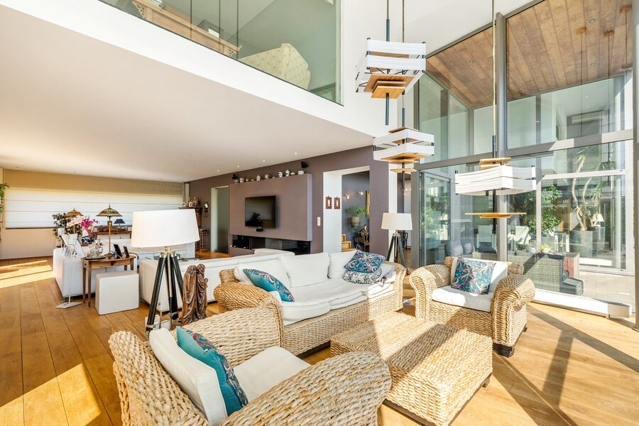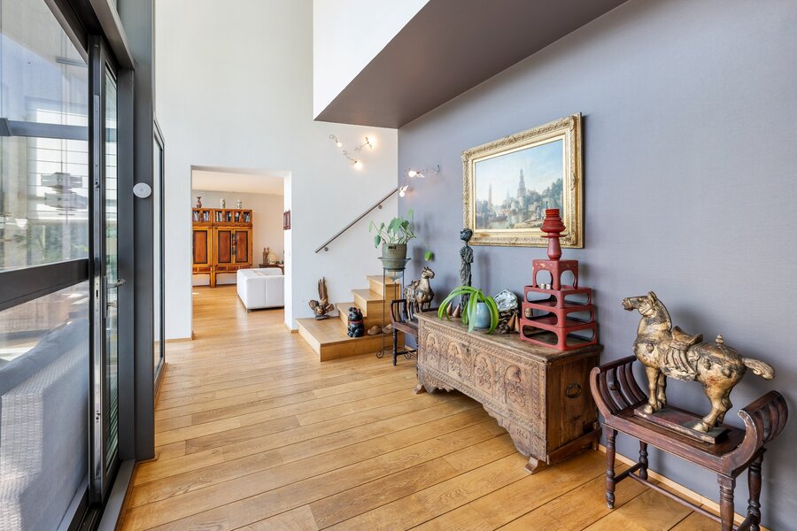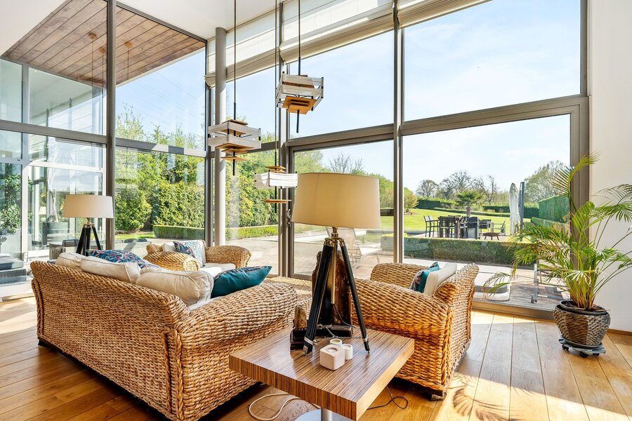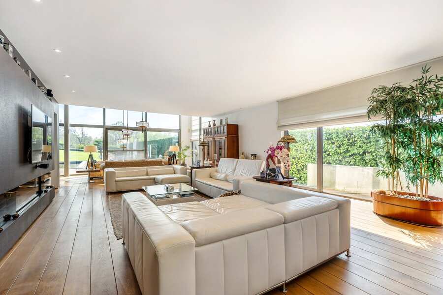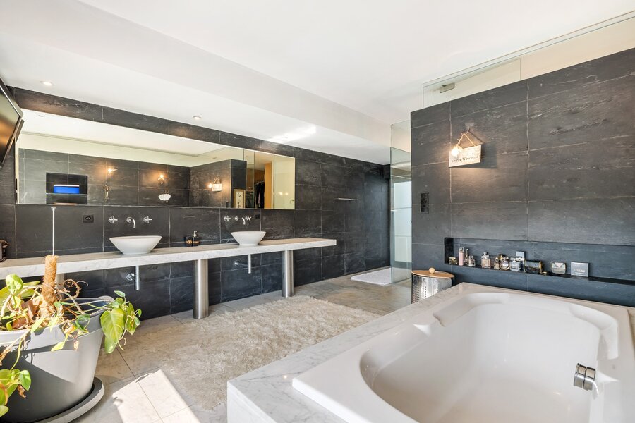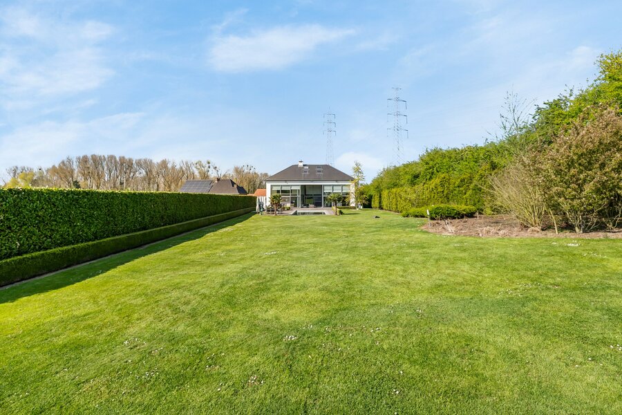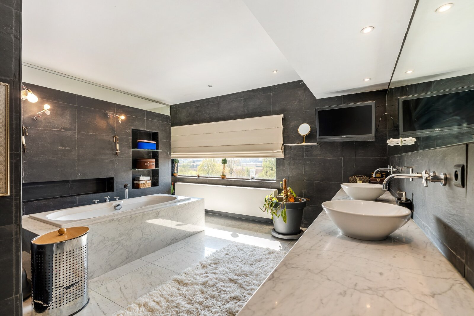 Deze statige villa onderscheidt zich door haar stijlvolle afwerking, royale volumes en overvloedige lichtinval dankzij de grote raampartijen.