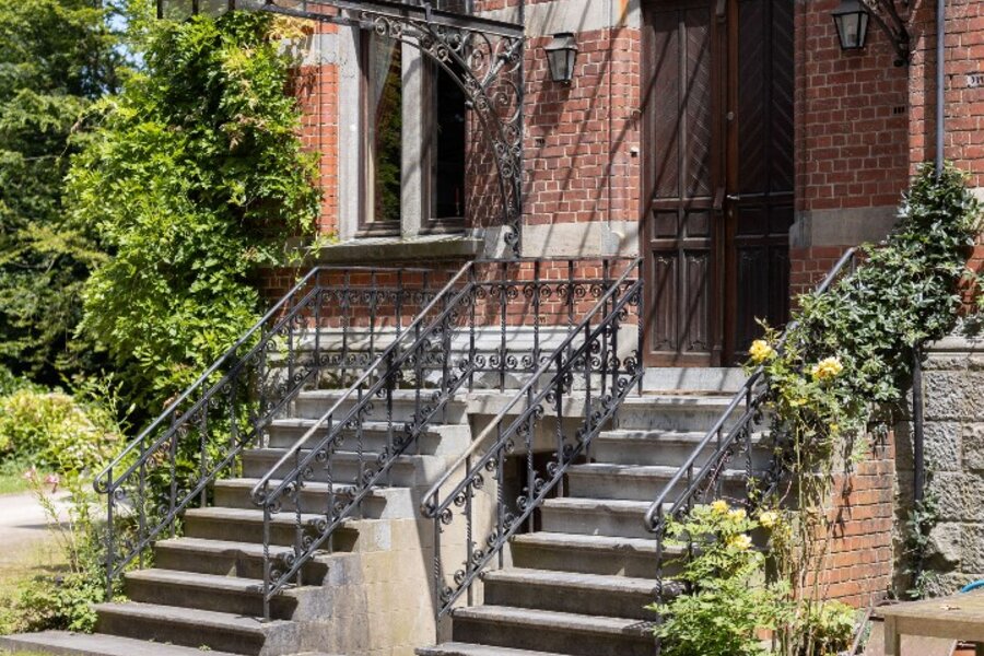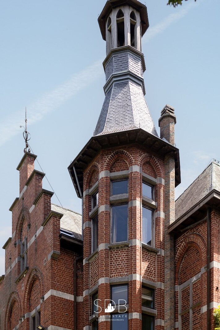 Het exterieur beschikt over tal van authentieke elementen die het kasteel zijn nostalgische charme bezorgen. Centraal ingeplant op een deels bebost domein. De aanpalende weides met stallingen maken van de eigendom een unieke opportuniteit voor paarden- en/of dierenliefhebbers.