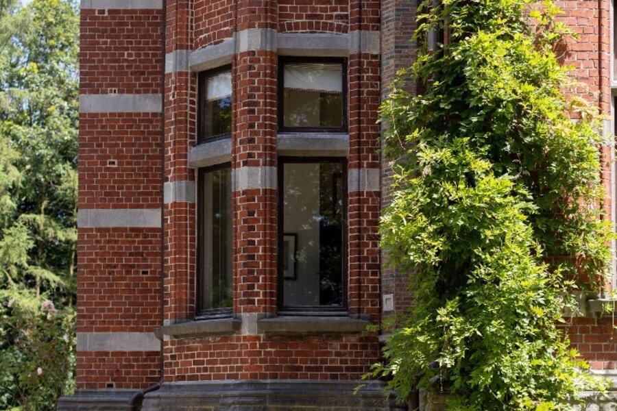 Een elegant klassieke stijl werd eveneens toegepast in het bureaugedeelte met grote glaspartijen voor meer woon- en werkcomfort.