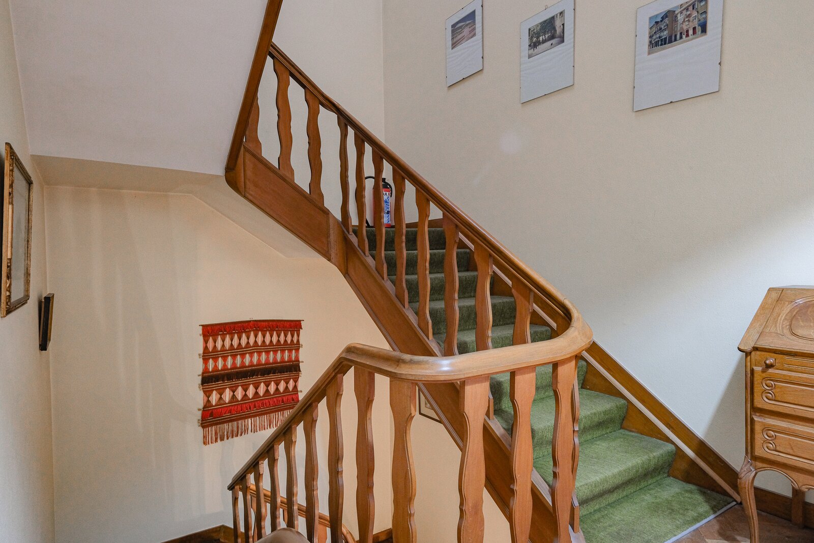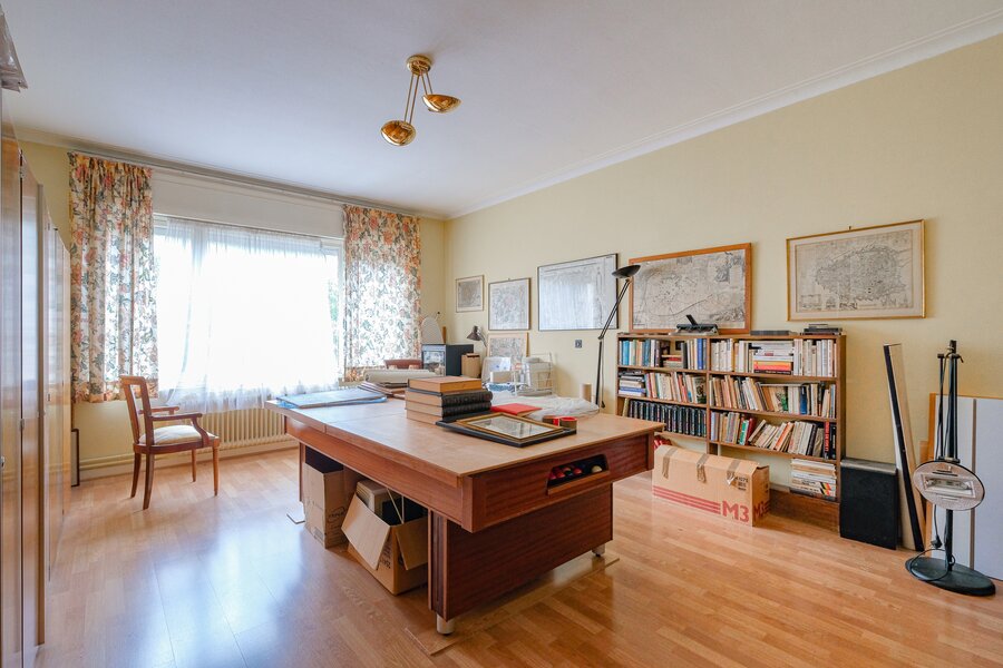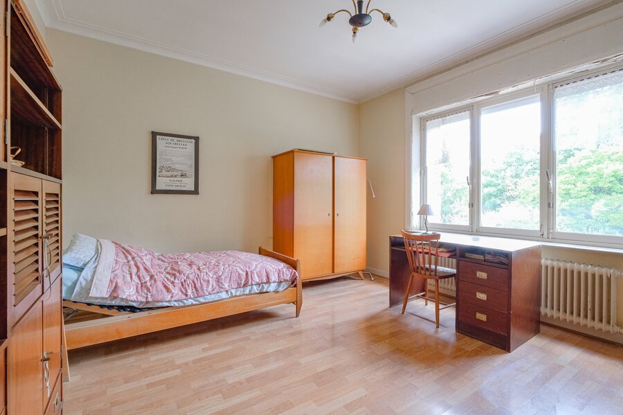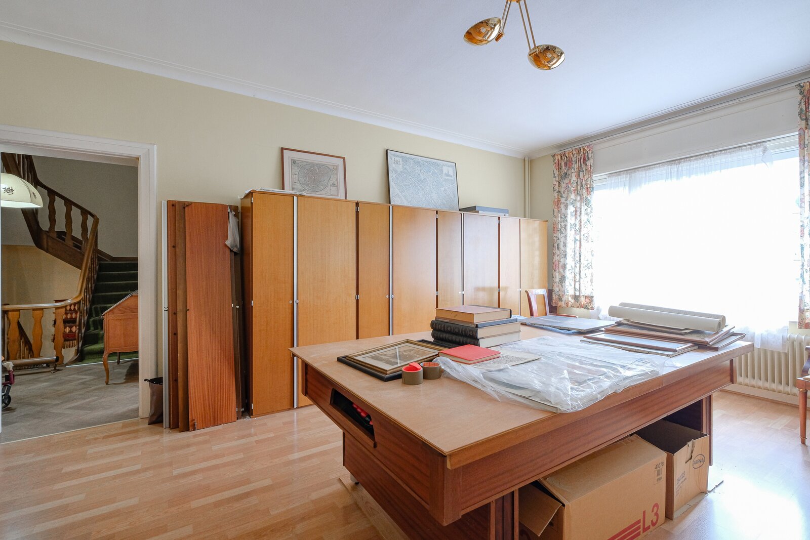 Superb townhouse with a gross floor area of ± 395 m² and a north-facing garden of ± 400 m². It is laid out as follows: Ground floor: entrance hall, living room and dining room of ± 43 m², an office of ± 16 m², a kitchen of ± 17 m², 1 cloakroom with guest WC. First floor: staircase landing and hallway of ± 15 m², 3 bedrooms of ± 19, 24 and 25 m², 1 bathroom of ± 10 m², WC. On the second floor (attic): staircase landing and hallway of approx. 15 m², two bedrooms of 23 and 21 m², archive room of approx. 10 m², attic of approx. 15 m². In the basement: boiler room of approx. 8 m², storage room of approx. 5 m², wine cellar of approx. 9.6 m², large multipurpose space of approx. 27 m², garage of approx. 42 m², staircase landing of approx. 15 m². Also: two-car garage, 10 m wide frontage, non-compliant electricity, double glazing, numerous possibilities for conversion. PEB G. Don't delay, come and view today!