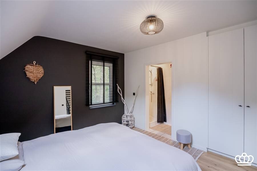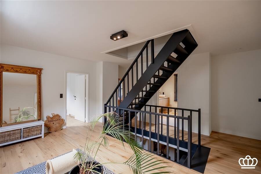 On the second floor there is a spacious nighthall leading to 2 bedrooms with fitted wardrobes connected by a shower room. There are 2 more bedrooms, 1 of which has fitted wardrobes and a private shower room with shower and sink. The whole floor, except for the bathrooms, has parquet flooring.