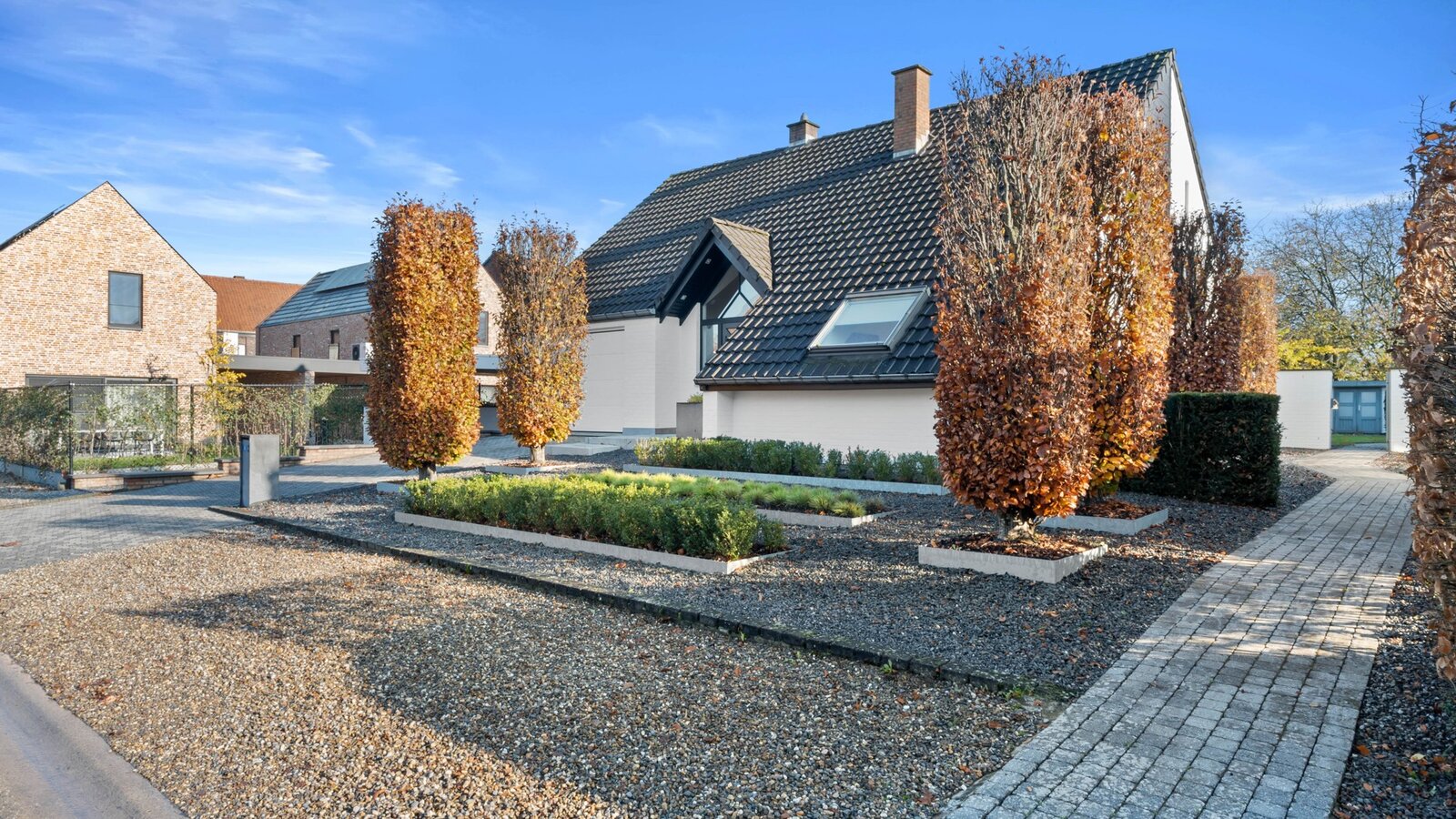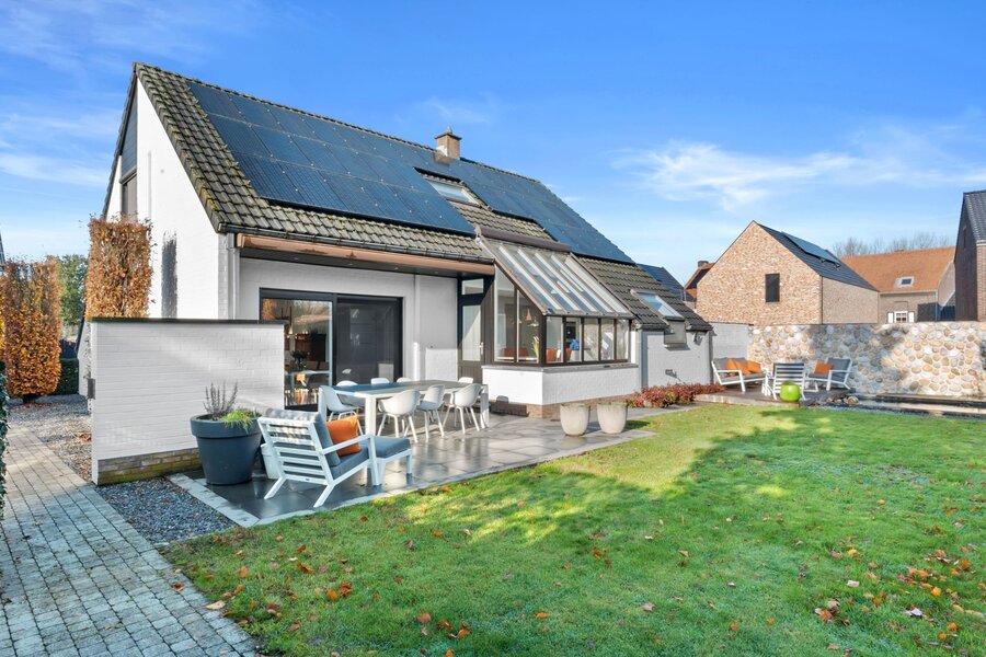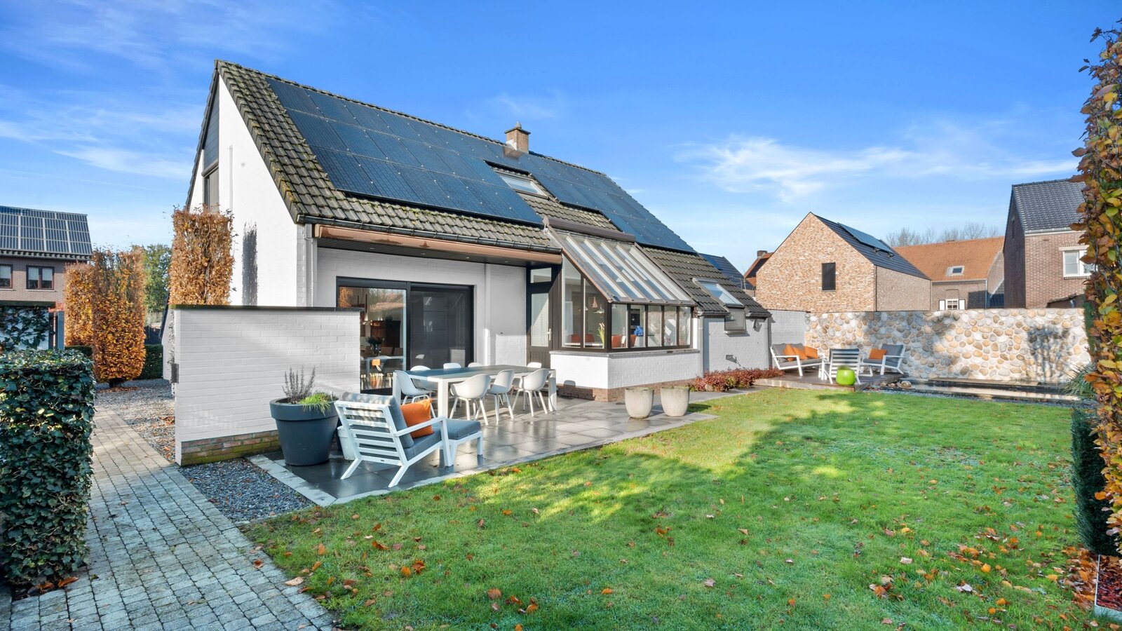 Het volledig omheinde perceel vormt een uitnodigende en serene buitenruimte waar rust centraal staat.
