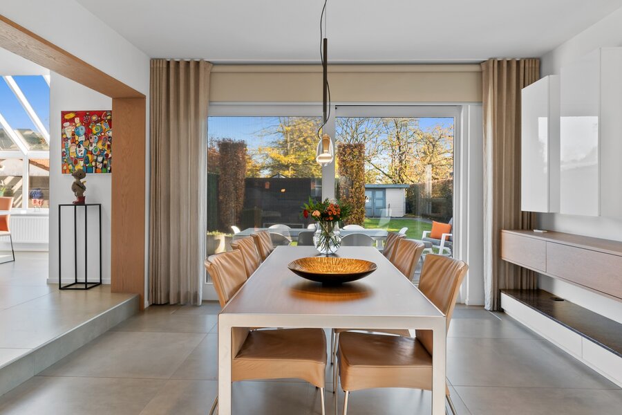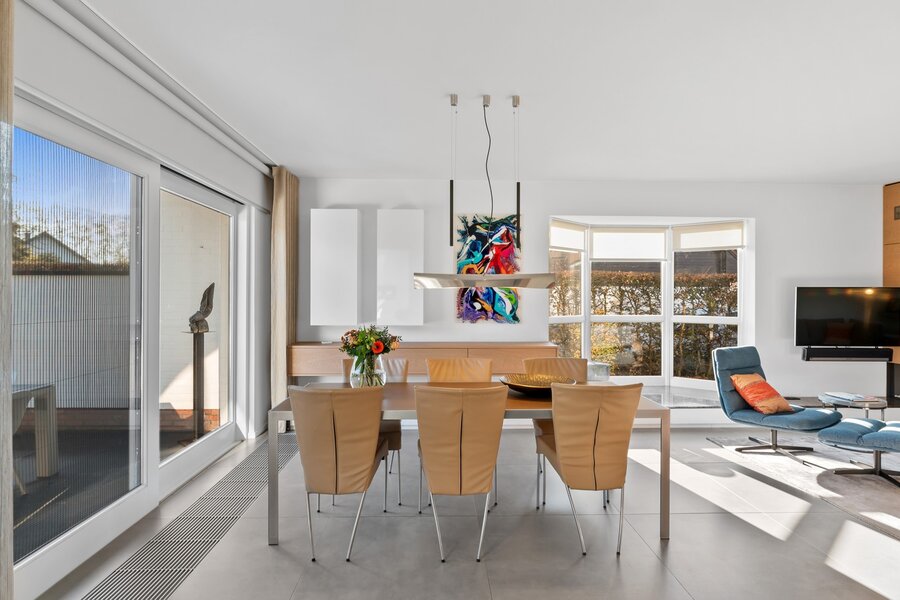 Het gelijkvloers is functioneel ingedeeld en geniet van veel lichtinval.