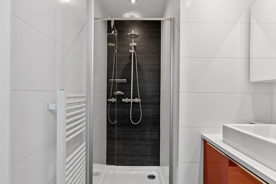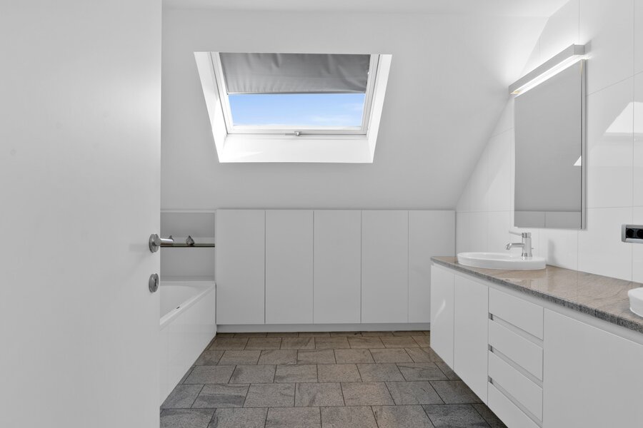 - Tweede badkamer (dubbele lavabo, bad en inloopdouche)