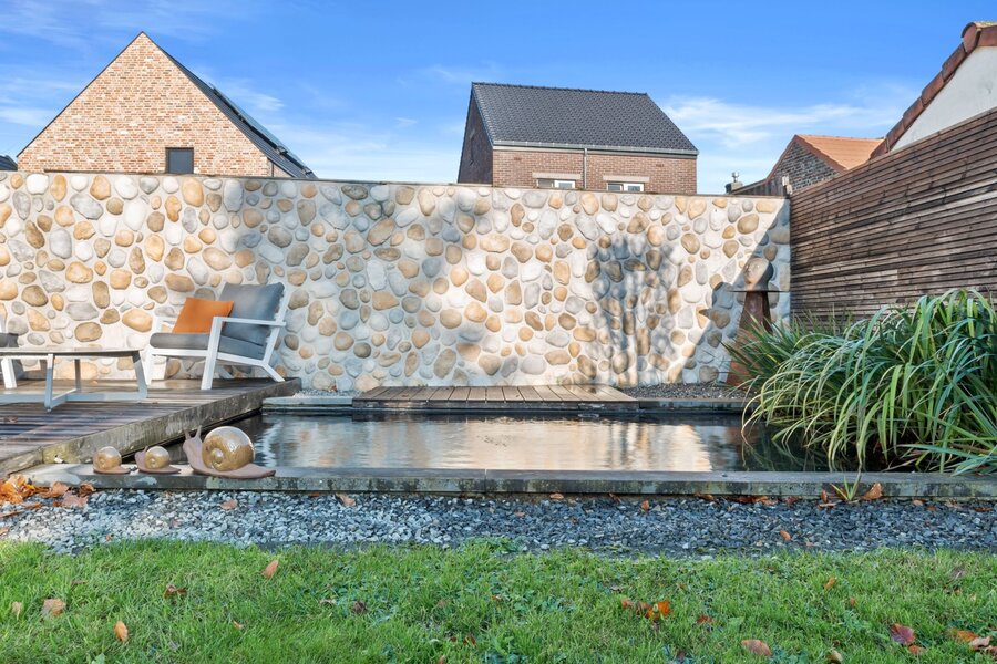 Als extra troef werd er een schitterende visvijver aangelegd, die het geheel een bijzonder charmante uitstraling geeft.