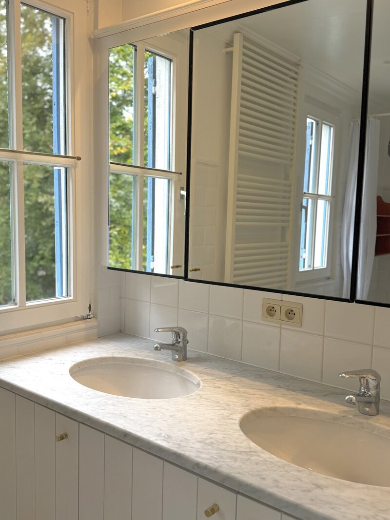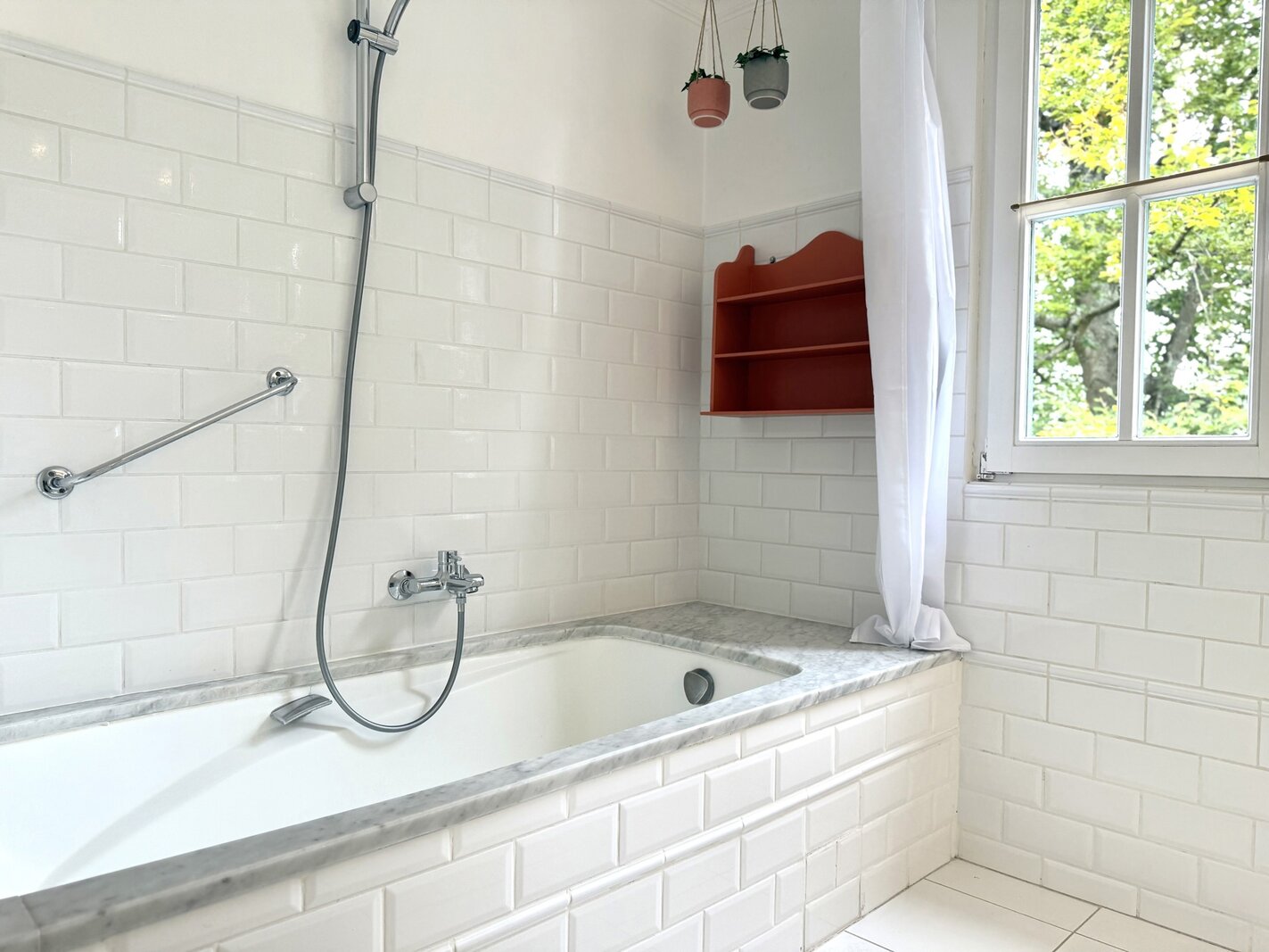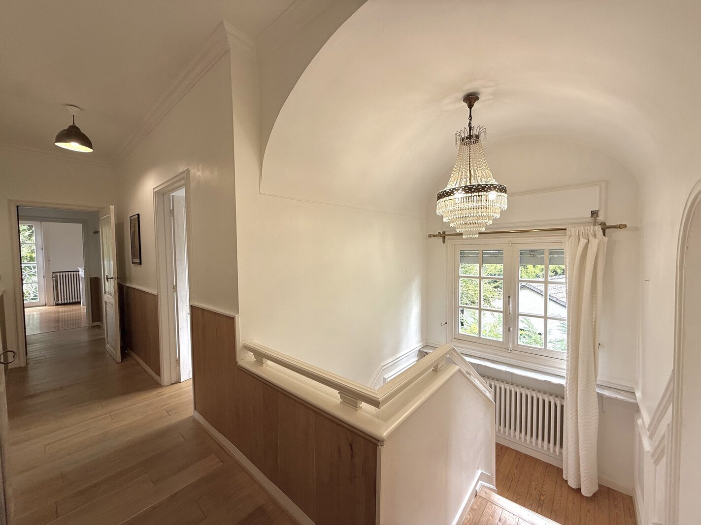 First floor: night hall, front bedroom with adjoining shower room, second bedroom with its own bathroom, a small study or nursery, master bedroom with en-suite bathroom, walk-in closet, and access to a balcony-terrace overlooking the beautiful garden. Access to the unconverted attic via the walk-in closet (perfect for turning the master into a duplex!).