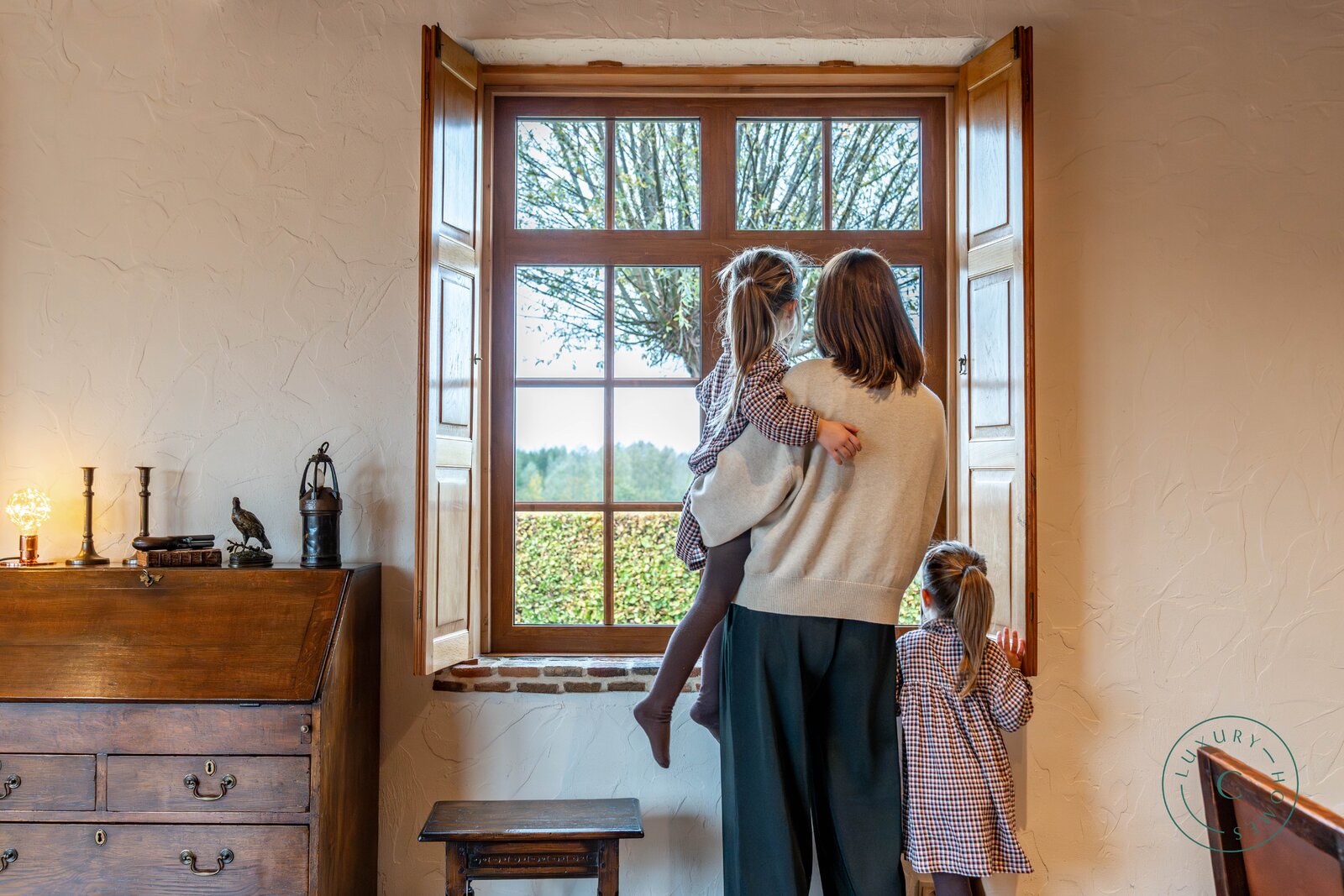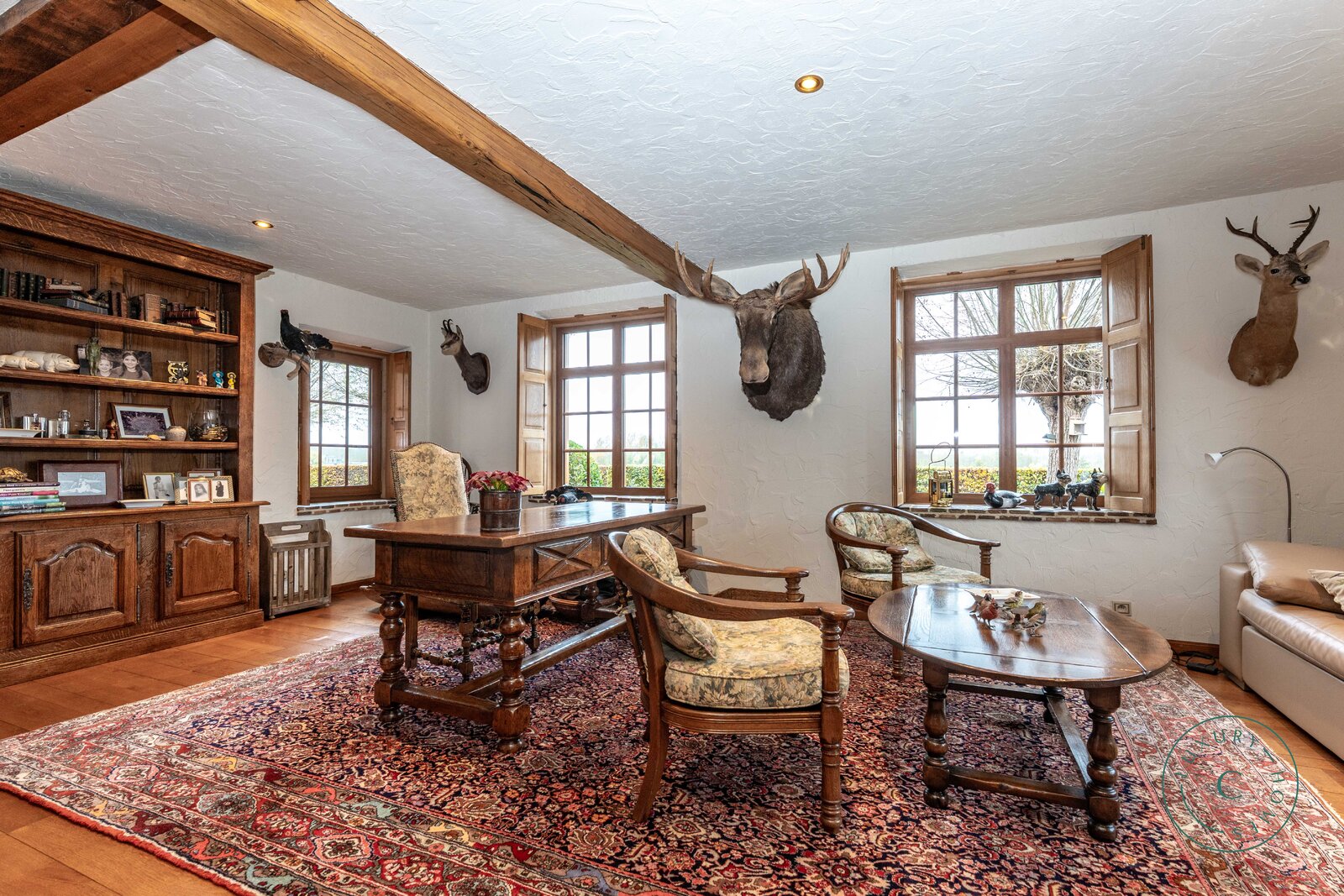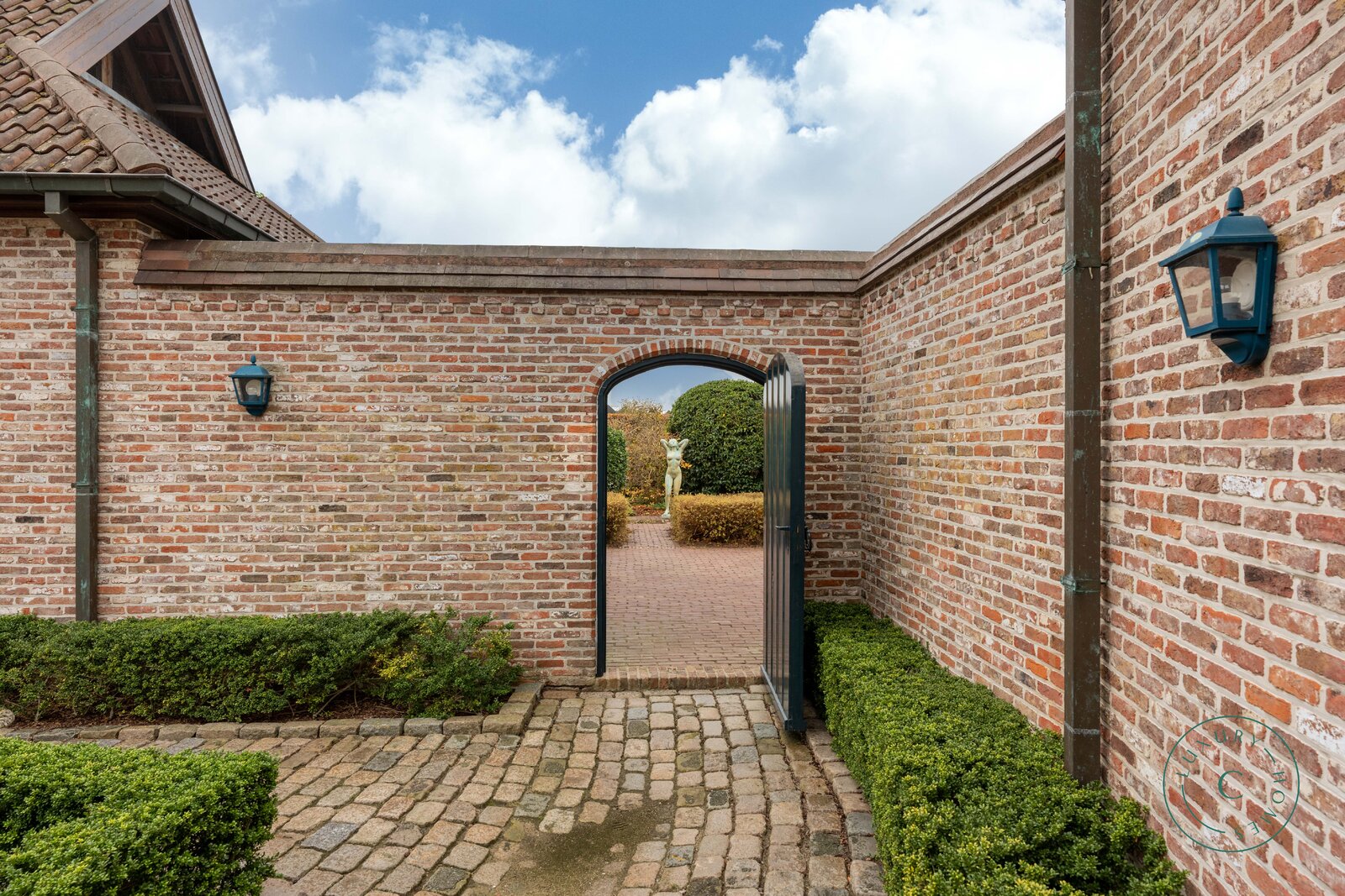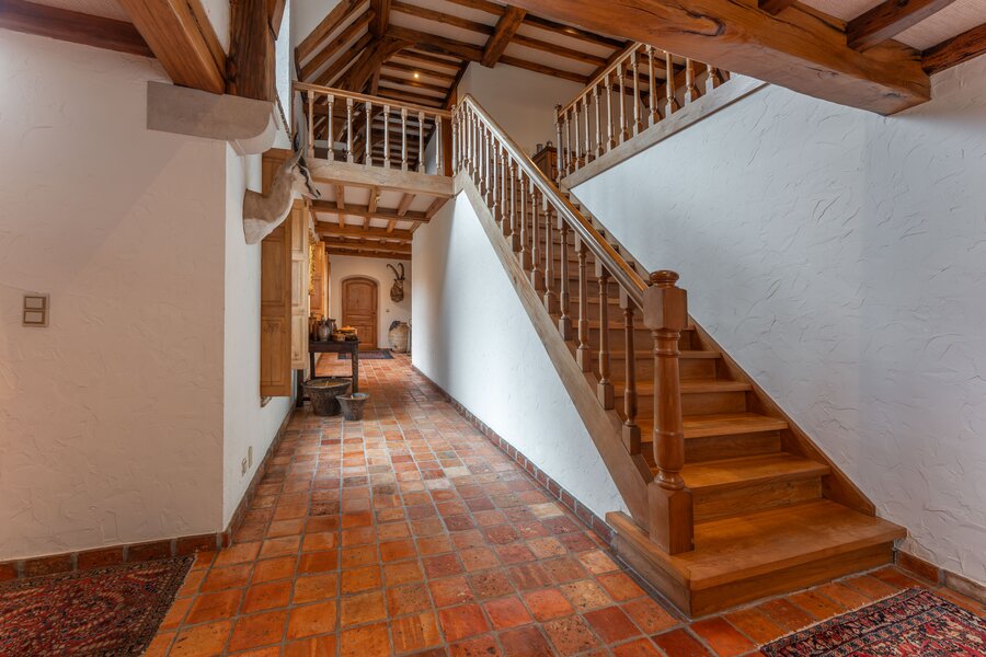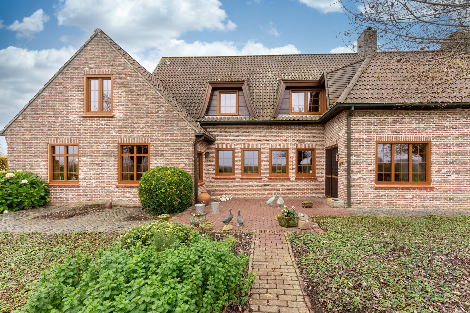 Achter de automatische poort ontvouwt zich een harmonieus geheel waarin functionaliteit en authenticiteit elkaar ontmoeten. Vanuit de binnenkoer heeft u toegang tot elk deel van het domein: de paardenstallen, dubbele garage, carport en de woning zelf. Elk volume vormt een deel van het karaktervolle geheel dat deze vierkantshoeve zo uniek maakt.