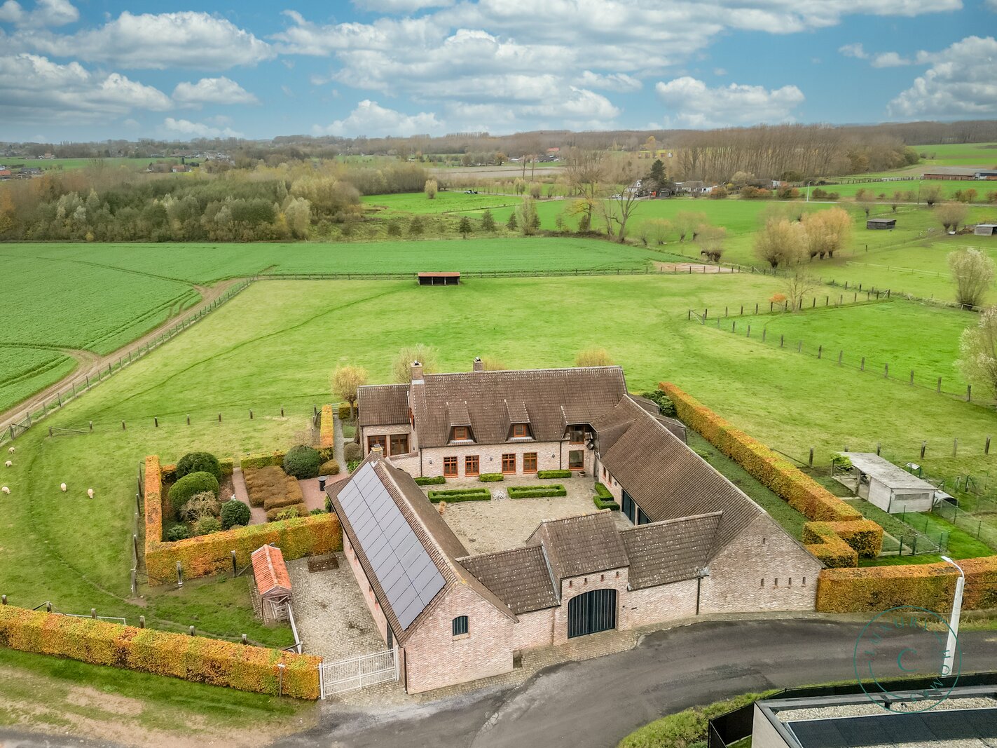 Te midden van het groene en glooiende landschap van Oosterzele bevindt zich deze uitzonderlijke vierkantshoeve met binnenkoer, paardenfaciliteiten en uitgestrekte weides. Hier woont u in volledige rust, omgeven door natuur en open vergezichten, terwijl winkels, scholen en verbindingswegen richting Gent, Merelbeke en Zottegem vlot bereikbaar blijven.