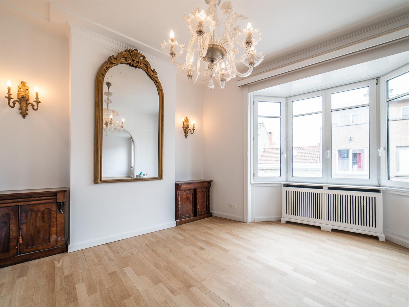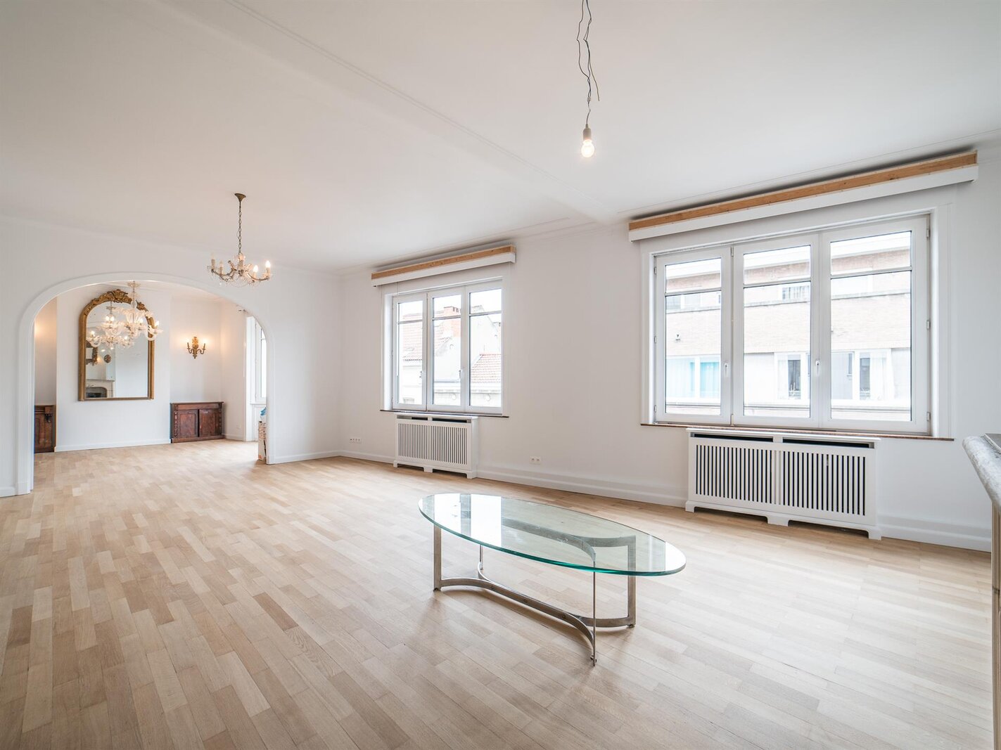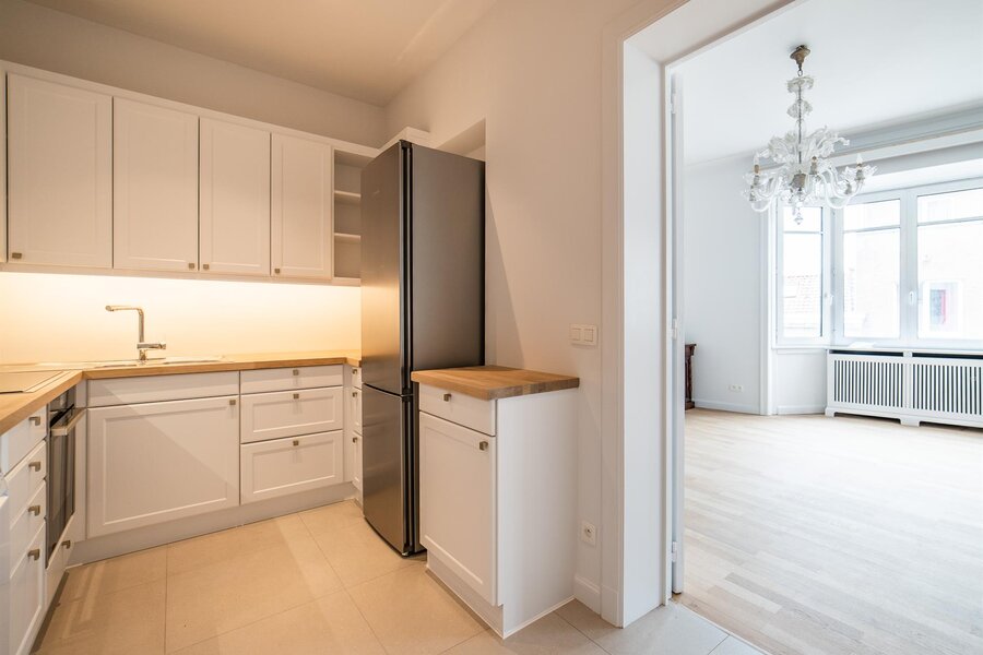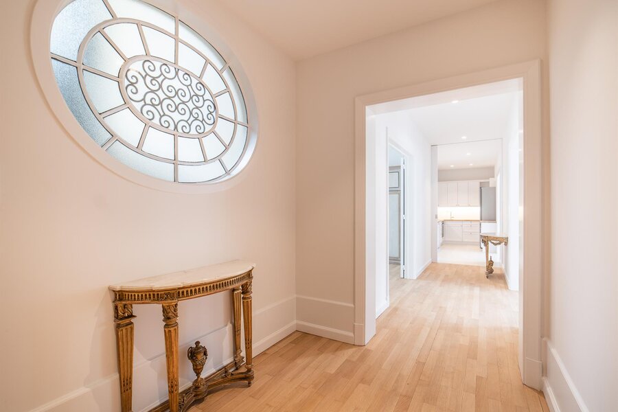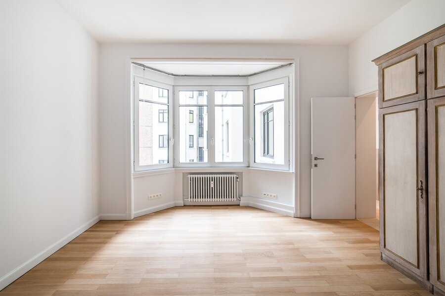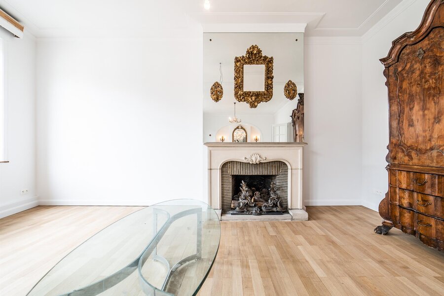 In the immediate vicinity of Place du Châtelain and located in an inner courtyard on Avenue Louise, this three-bedroom apartment has a surface area of approximately 220 m² and has been completely renovated.