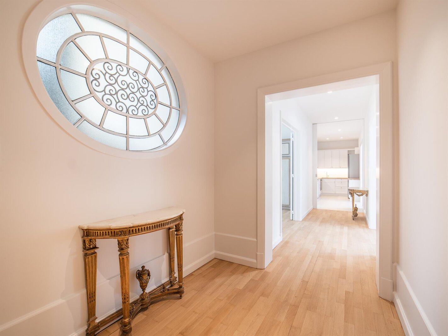 The apartment comprises a large entrance hall with a cloakroom leading to a corridor that serves the reception rooms. The fully equipped kitchen is adjacent to the dining room. On the night side, the flat offers a master bedroom with dressing room, a bathroom and shower room, and two other bedrooms that share a shower room.