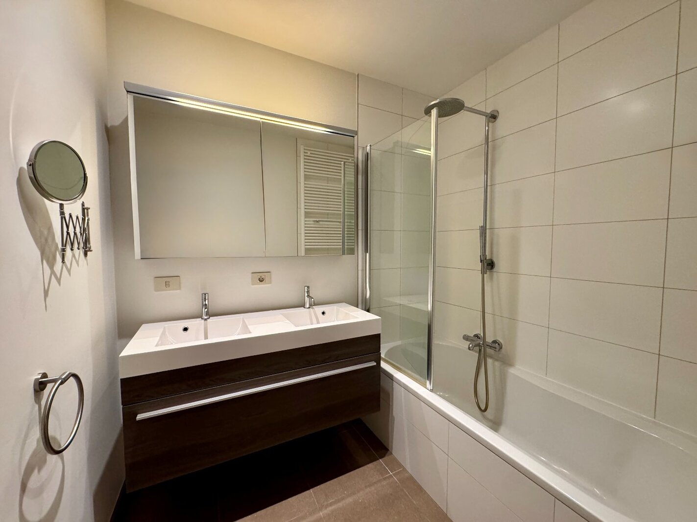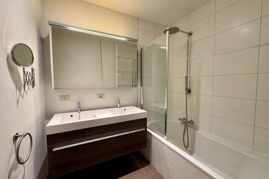 Het appartement beschikt over twee ruime slaapkamers, elk met een eigen badkamer. De tijdloze parketvloer doorheen het hele appartement zorgt voor een verfijnde uitstraling. Daarnaast is er een ruime kelderberging en de mogelijkheid tot aankoop van een garage.