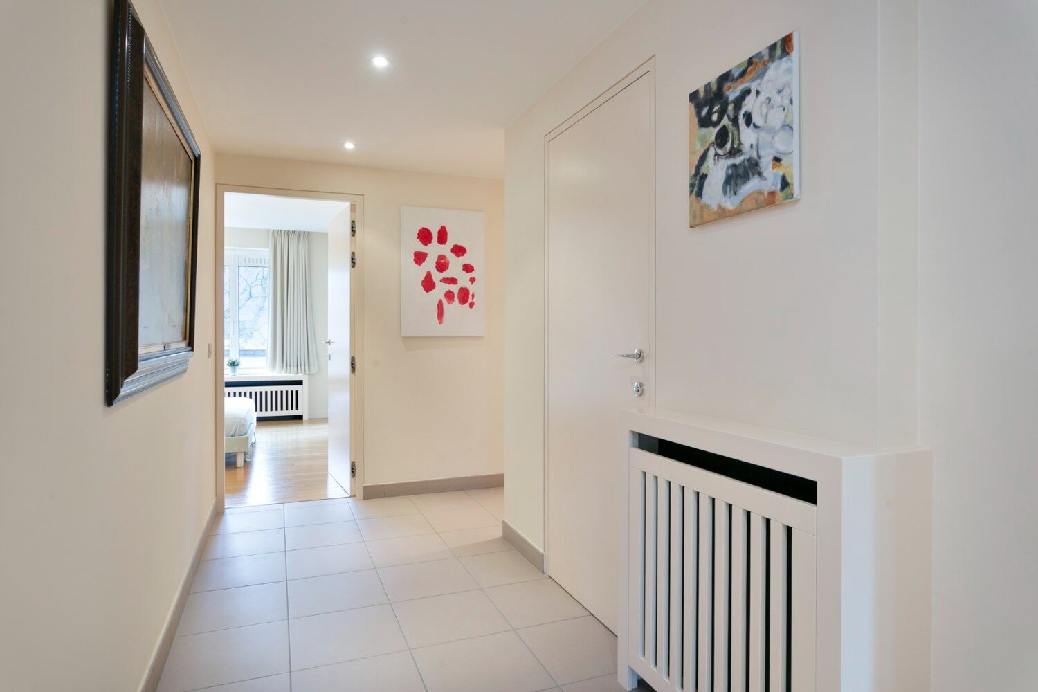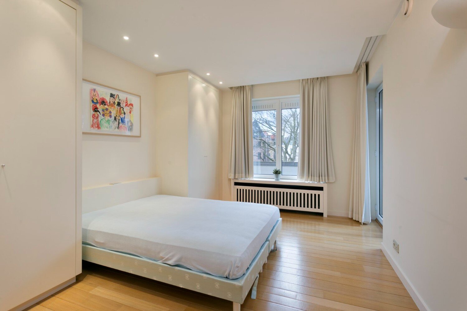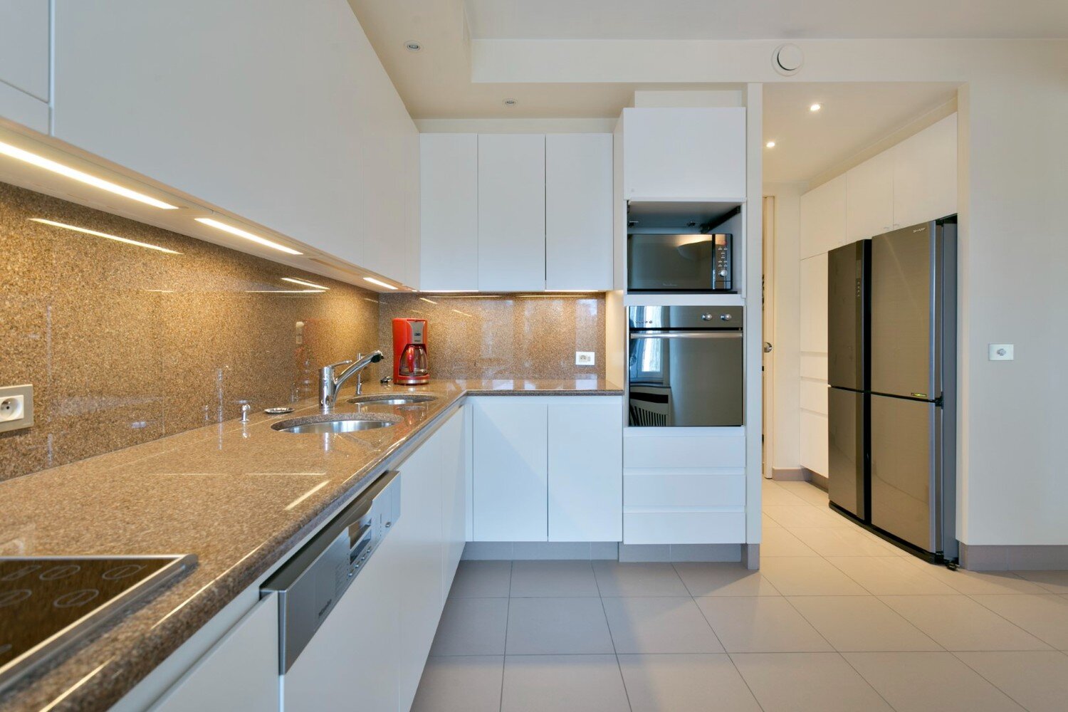 De eerste slaapkamer en het bureau hebben toegang tot het terras, waar het heerlijk vertoeven is. Beide slaapkamers zijn uitgerust met ingebouwde kasten en een tweepersoonsbed. Ook de aparte bureauruimte werd praktisch ingericht, met het oog op voldoende opbergmogelijkheden. Aan de master bedroom grenst de badkamer. Deze badkamer heeft een dubbele lavabo, douche en toilet.