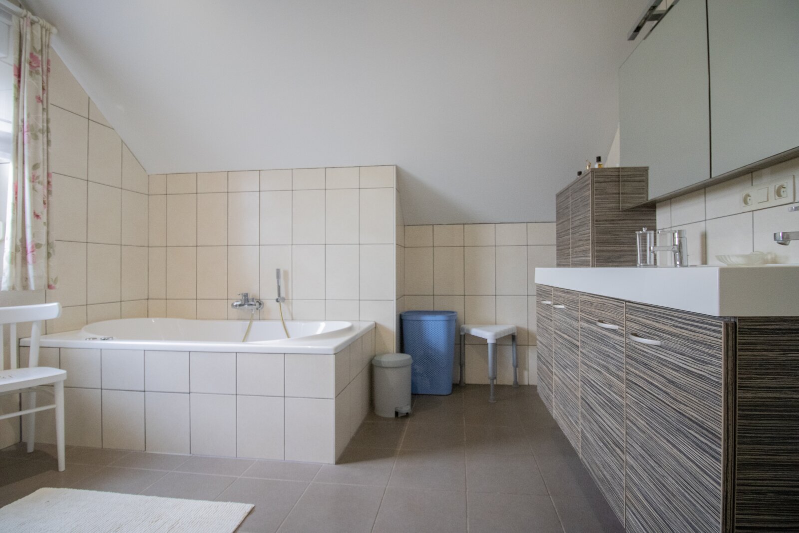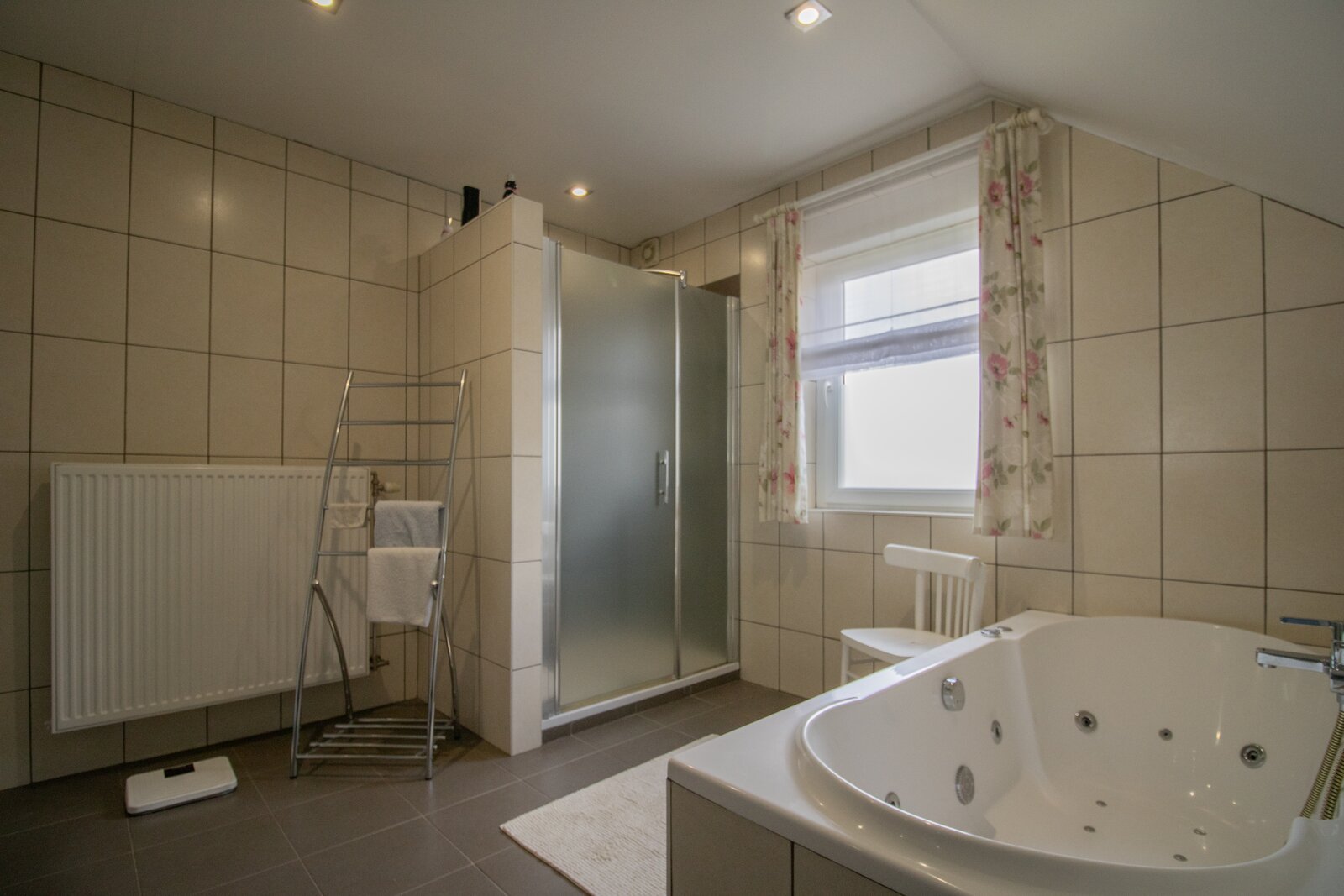 Voorts is er in de nachthal een apart toilet en een stijlvolle badkamer van 11 m², uitgerust met douche, jacuzzi-bad en dubbele lavabo op meubel.