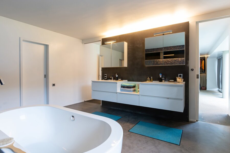 The current 75 m² professional area comprises a waiting room, an office, a WC and a meeting room. This can also be integrated into the living area to enlarge the living space and allow for the creation of 5 or even 6 bedrooms in total, depending on your needs.