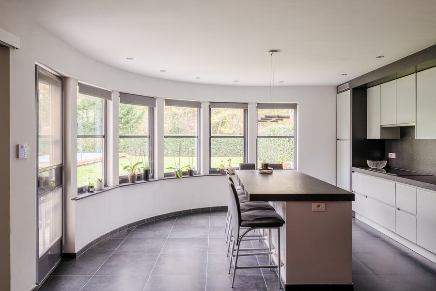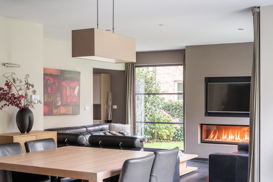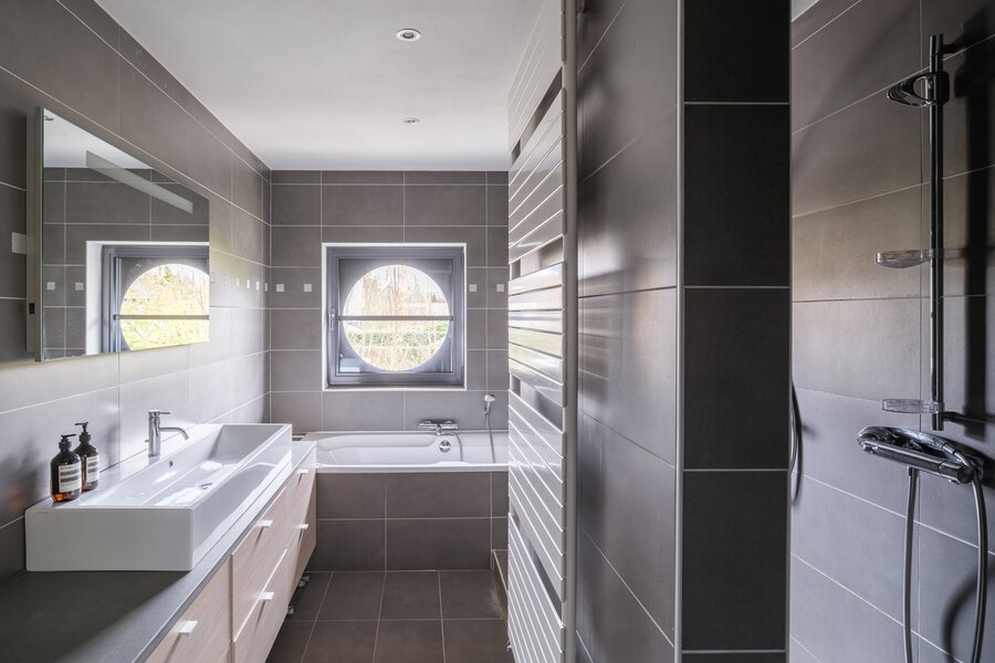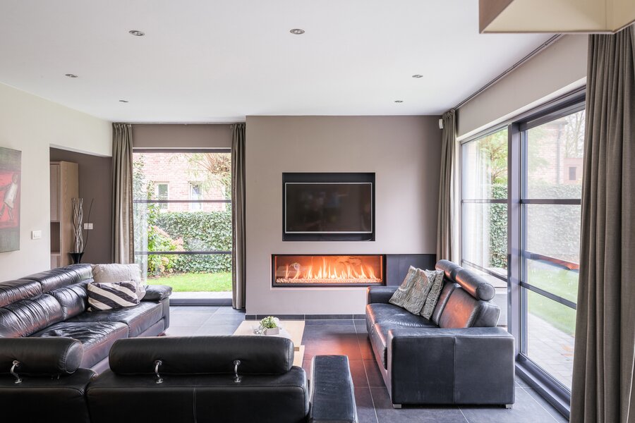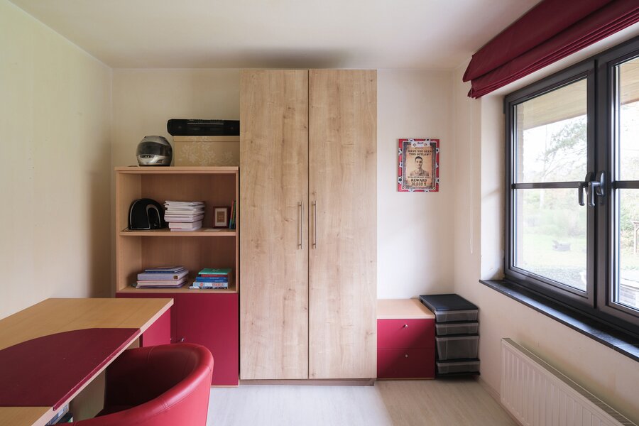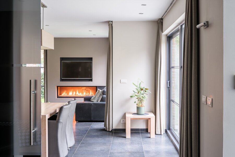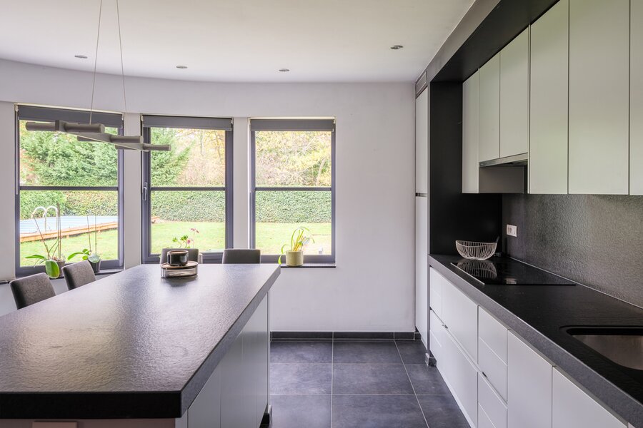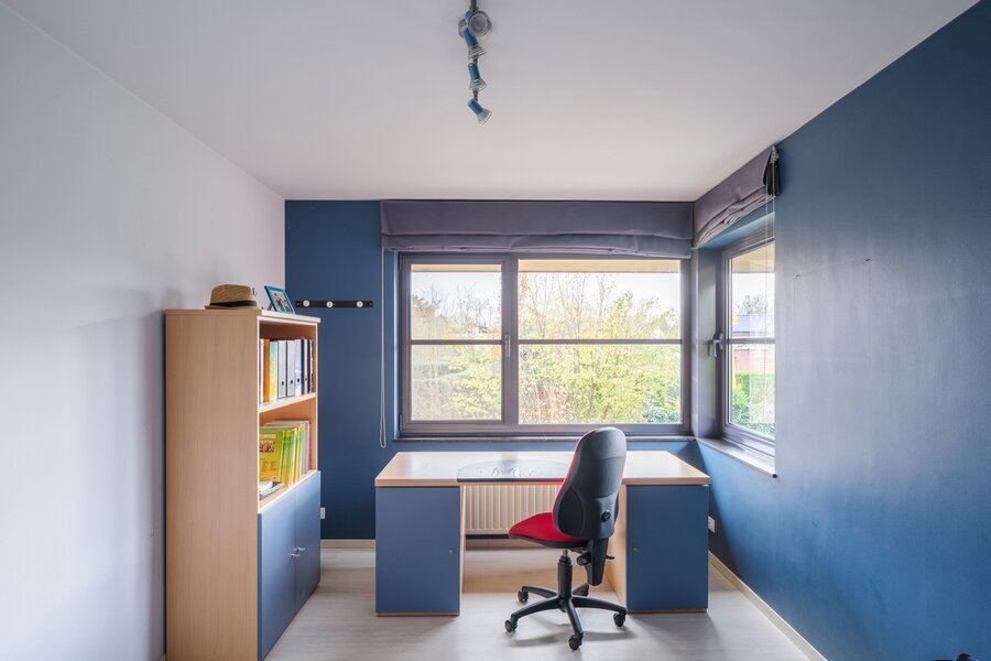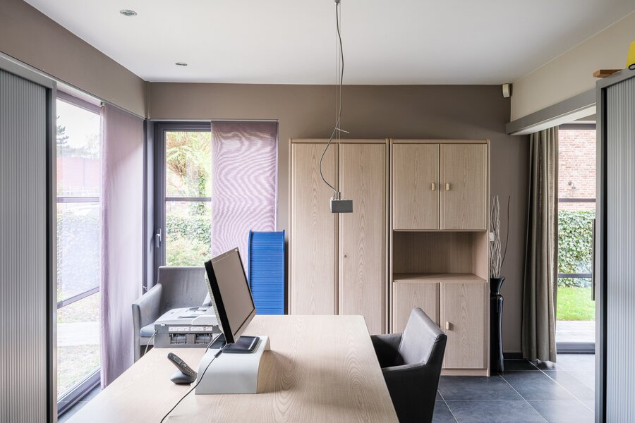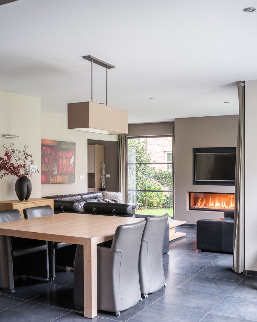 De woning, gebouwd in 2005 en voorzien van een EPC B, biedt alle moderne comfort. Op het gelijkvloers verwelkomt de ruime inkomhal je in een open en lichtrijke leefruimte met gashaard en vloerverwarming. Grote raampartijen zorgen voor een prachtig zicht op de tuin en het zwembad. De aangrenzende keuken is ruim, praktisch en vormt het hart van de woning. Naast de keuken is er een handige wasruimte met directe toegang tot de dubbele garage. Vanuit de leefruimte bereik je een aparte bureauruimte, ideaal voor thuiswerk. Verder op het gelijkvloers vind je een gastentoilet en een eerste badkamer met stoomcabine.