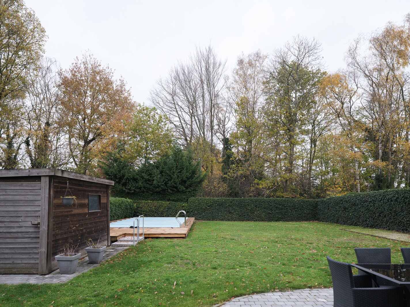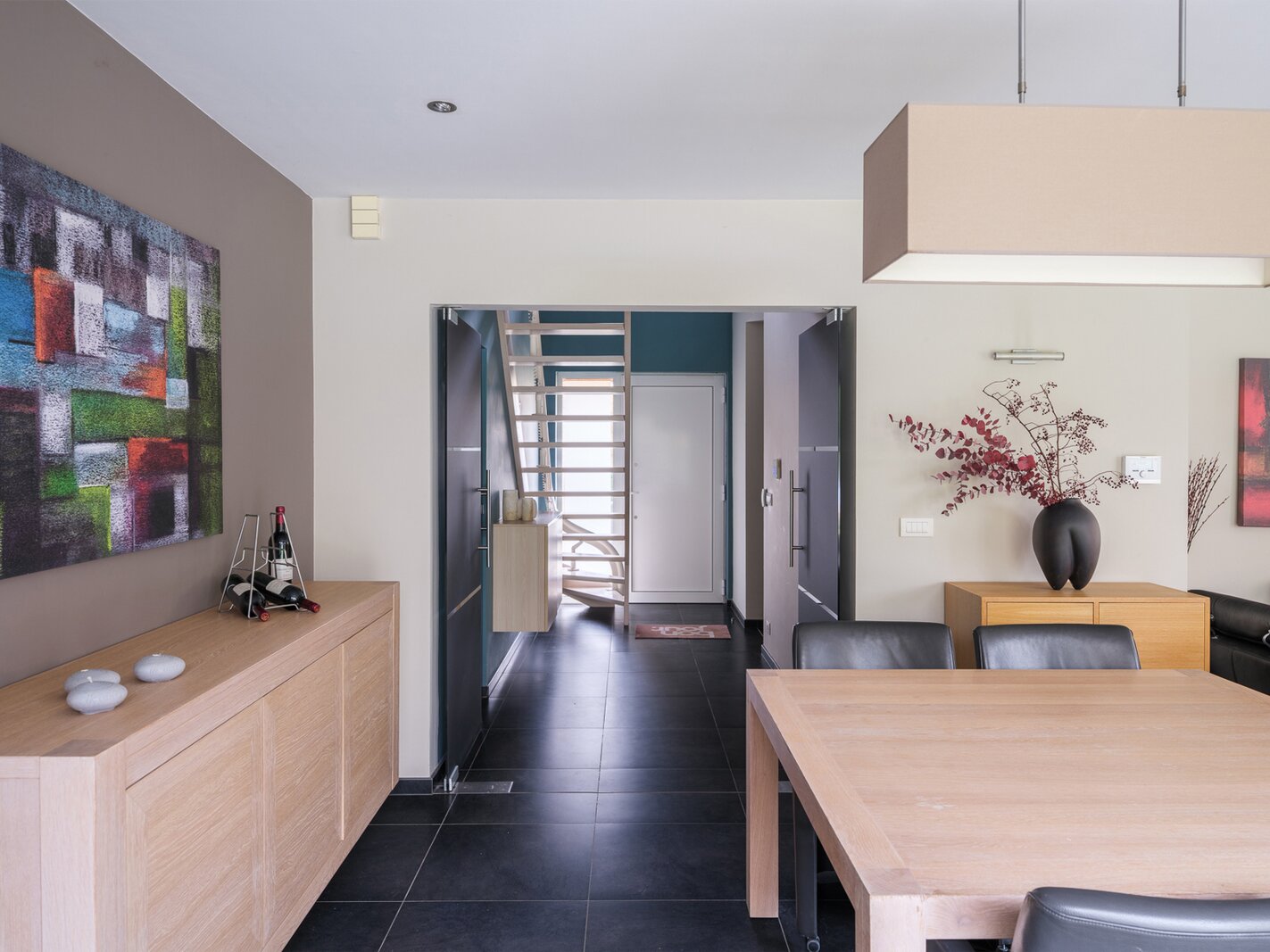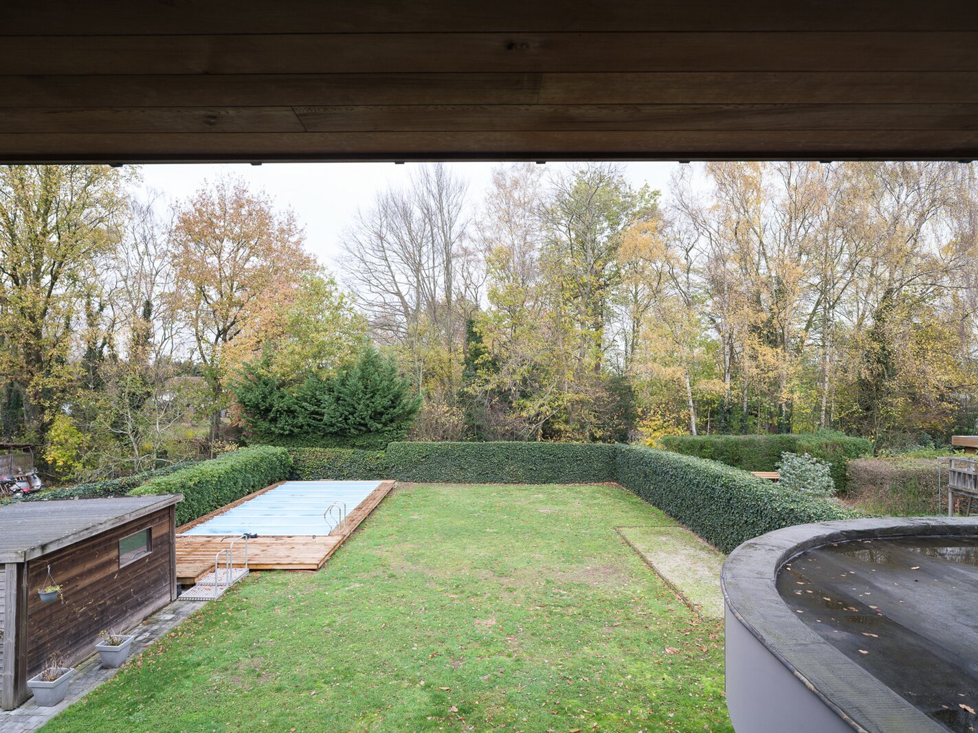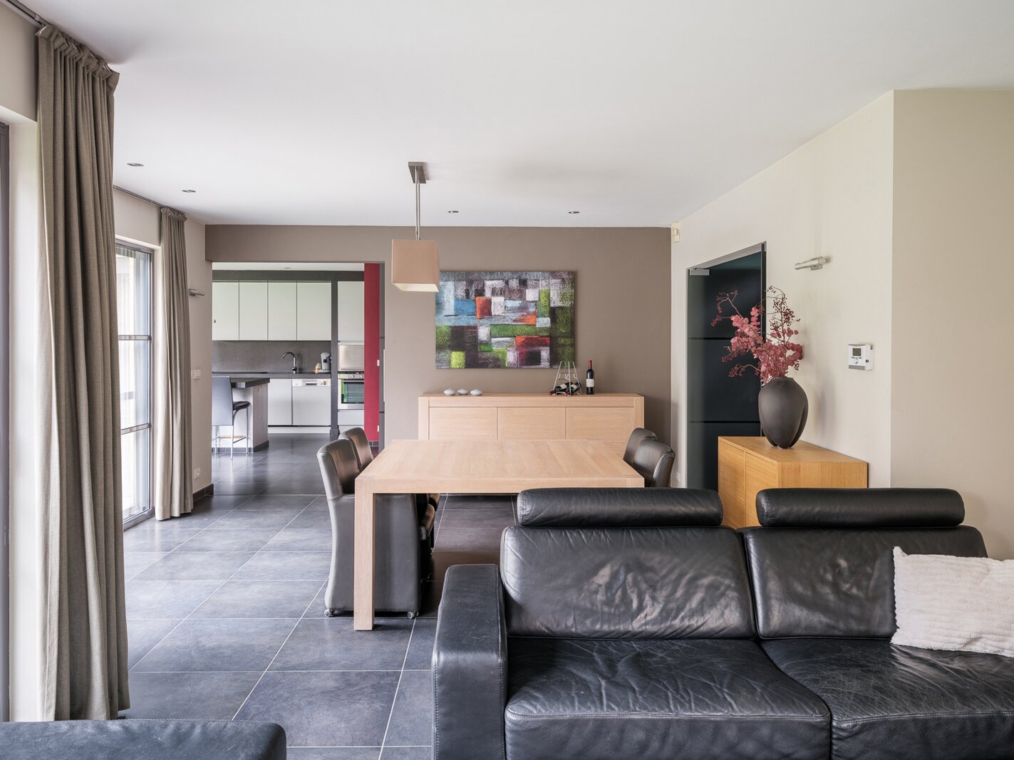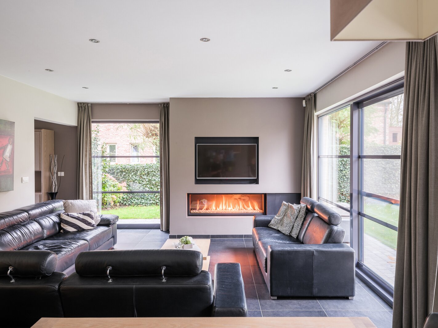 De woning, gebouwd in 2005 en voorzien van een EPC B, biedt alle moderne comfort. Op het gelijkvloers verwelkomt de ruime inkomhal je in een open en lichtrijke leefruimte met gashaard en vloerverwarming. Grote raampartijen zorgen voor een prachtig zicht op de tuin en het zwembad. De aangrenzende keuken is ruim, praktisch en vormt het hart van de woning. Naast de keuken is er een handige wasruimte met directe toegang tot de dubbele garage. Vanuit de leefruimte bereik je een aparte bureauruimte, ideaal voor thuiswerk. Verder op het gelijkvloers vind je een gastentoilet en een eerste badkamer met stoomcabine.
