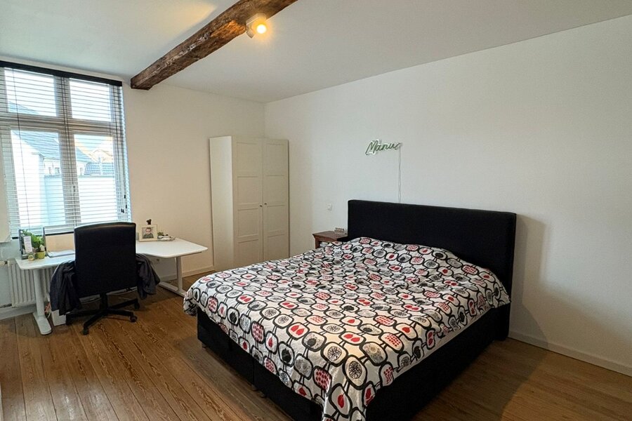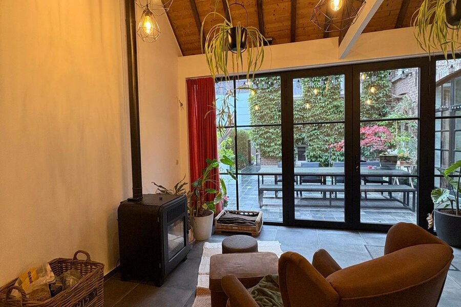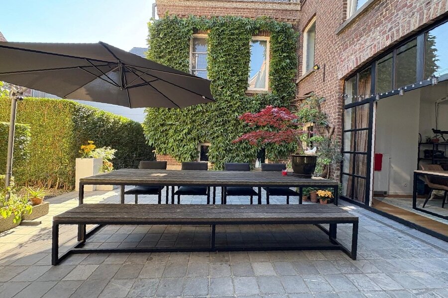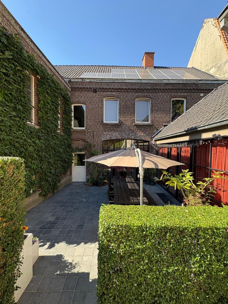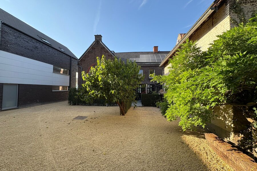 De 18de-eeuwse hoofdwoning is instapklaar en biedt een warme, huiselijke sfeer met royale volumes. Momenteel wordt deze gebruikt als kantoorruimte én woning. Tussen de herenwoning en de nieuwbouwwoning bevindt zich een binnenplaats met terras en parking voor 2-3 wagens. Achteraan ligt een prachtige, diepe tuin, een oase van rust. Via de achterkant is er ook aansluiting met een handige uitweg.