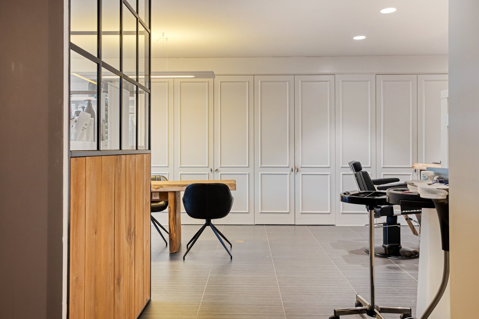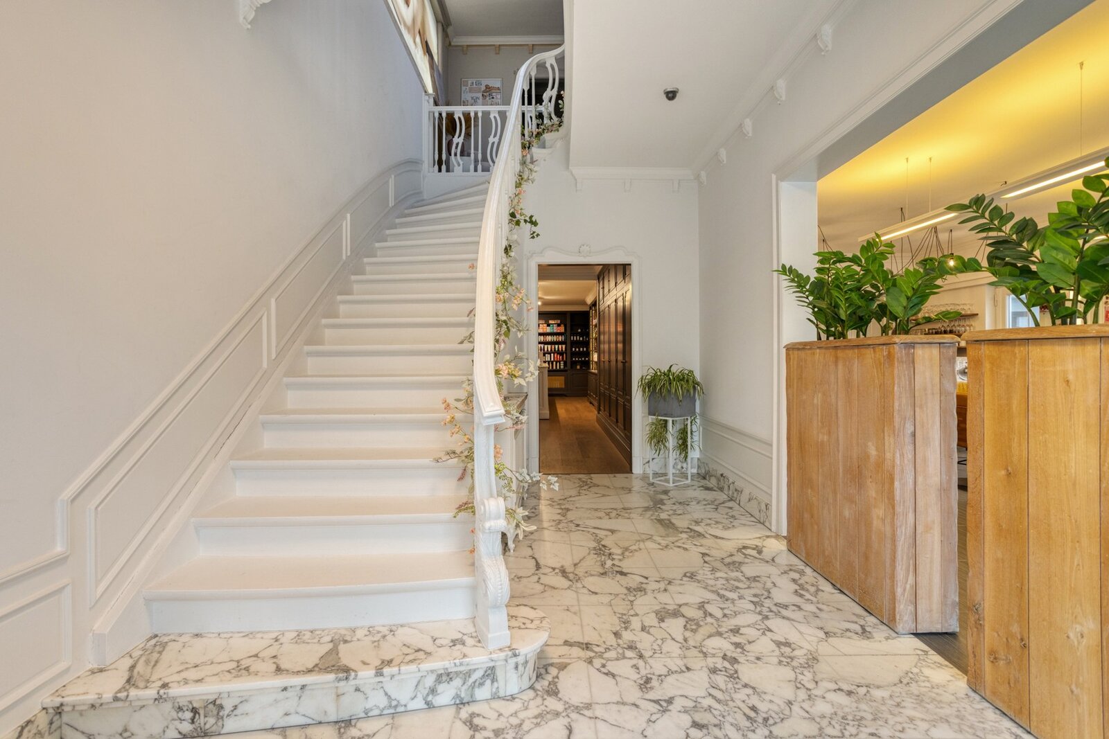 Een kader dat vertrouwen uitstraalt. De imposante inkomhal met karaktervolle trap zet meteen de toon: klasse, professionaliteit en standing. Dit is een omgeving waar uw cliënteel zich welkom voelt en waar uw activiteit onmiddellijk geloofwaardigheid krijgt.
