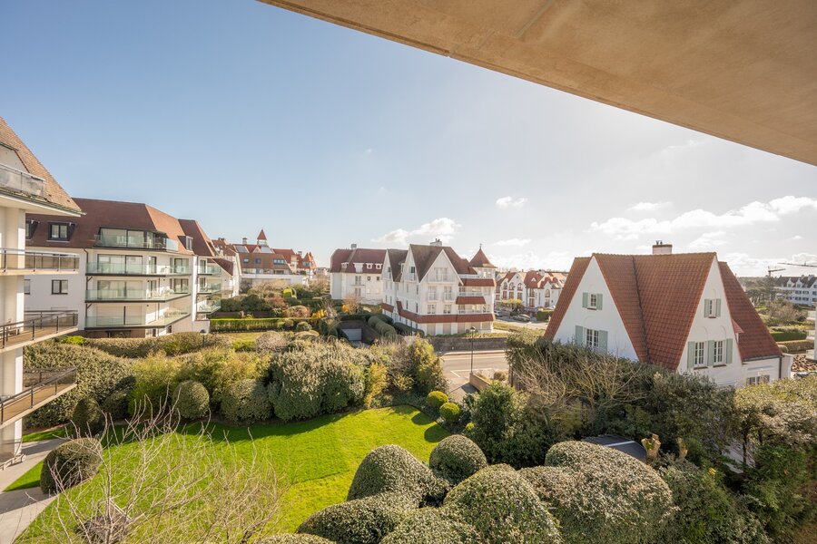 ZA 04-04-2026 ts 14u-17u OPENDEUR Kustlaan 357 (residentie Zoute garden) – Schitterend instapklaar luxe-appartement met frontaal zeezicht, gelegen in een exclusieve villaresidentie in het Zoute. Indeling: inkomhal met vestiaire en gastentoilet. Lichtrijke woon- en eetkamer met elektrische haard. Open keuken uitgerust met hoogwaardige toestellen en een gezellige ontbijthoek. Zowel de leefruimte als de keuken geven uit op het ruime terras met een adembenemend zicht op zee. Master bedroom met ingemaakte kasten en eigen douchekamer. Tweede volwaardige slaapkamer met bureau. Badkamer voorzien van dubbele lavabo, douche en apart toilet, evenals praktische ingemaakte kasten. Derde slaapkamer met bureau. Privatieve kelder en gemeenschappelijke fietsenberging aanwezig. Mogelijkheid tot aankoop van een dubbele garagebox (achter elkaar) in de residentie. Exclusief te koop.