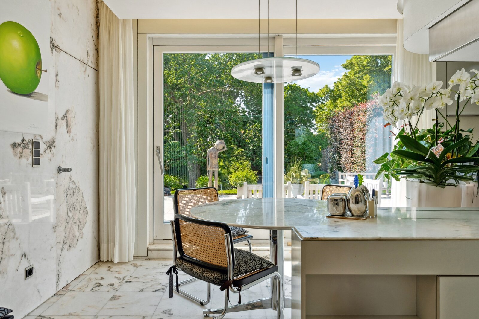 Het gelijkvloers focust op ruimte, lichtinval en een sterke connectie met het buitenleven. Leefruimtes zoals de zithoek, eetkamer en volledig uitgeruste keuken geven via grote raampartijen uit op het zonovergoten terras met aansluitende zwemvijver – een unieke plek van rust.