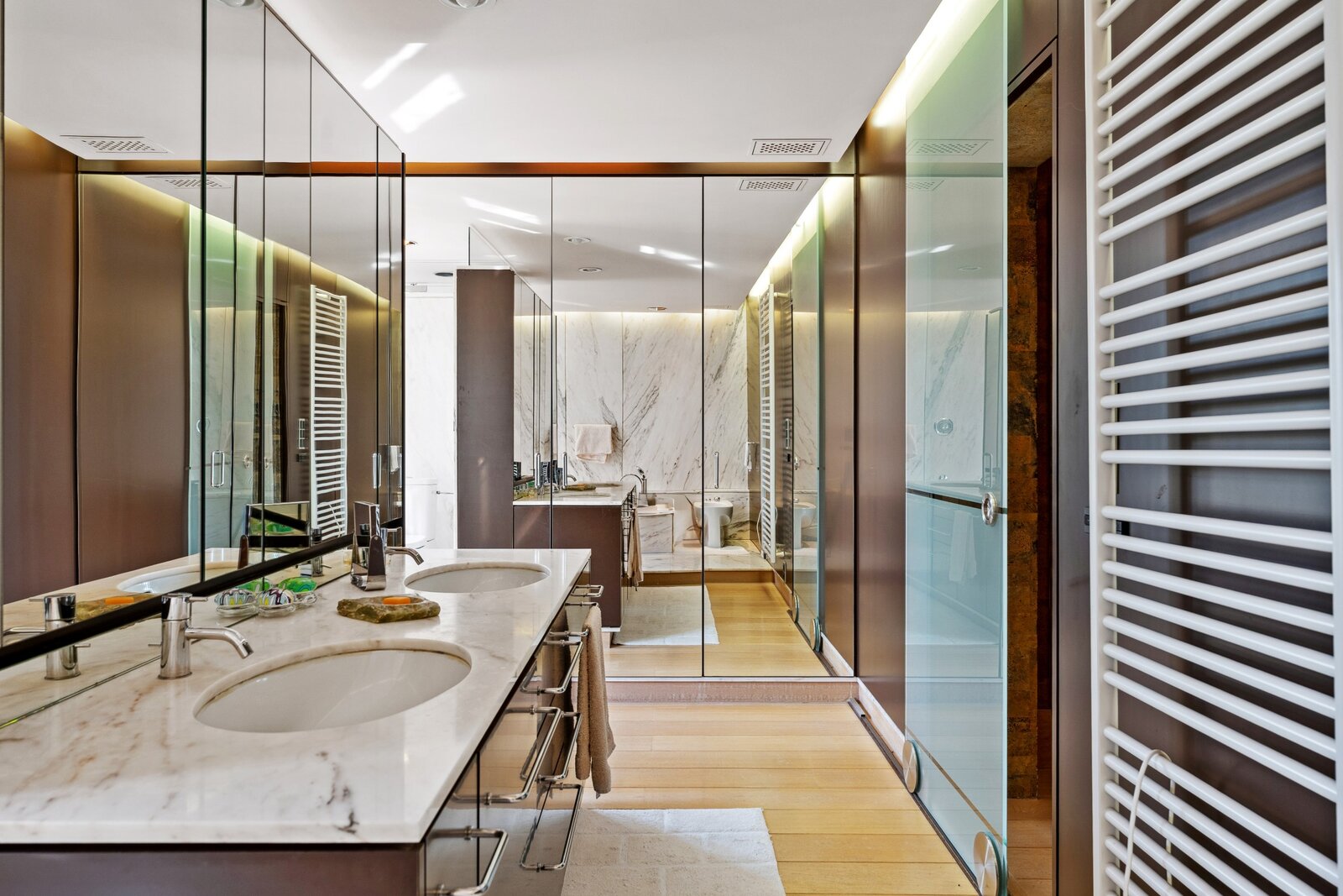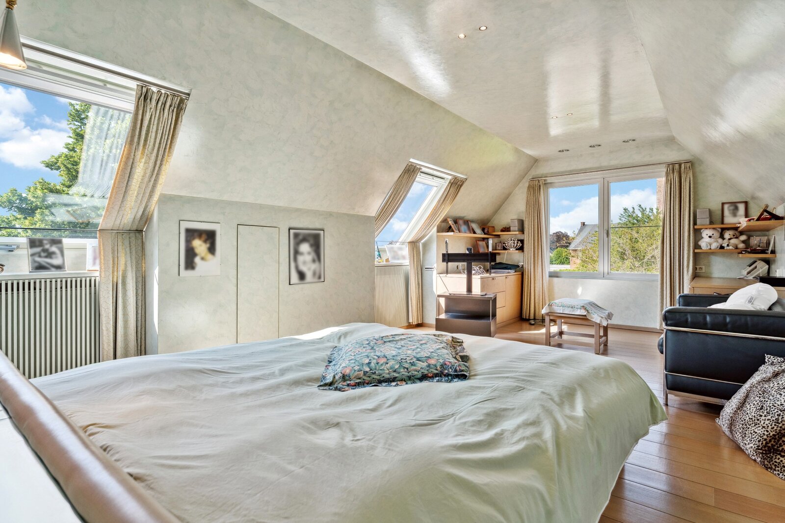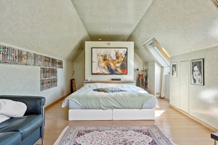 Op de eerste verdieping bevinden zich meerdere ruime slaapkamers, waaronder een elegante master suite met eigen badkamer, extra badkamers en ingebouwde kasten. De tweede verdieping biedt nog een extra slaapkamer en een multifunctionele zolder.