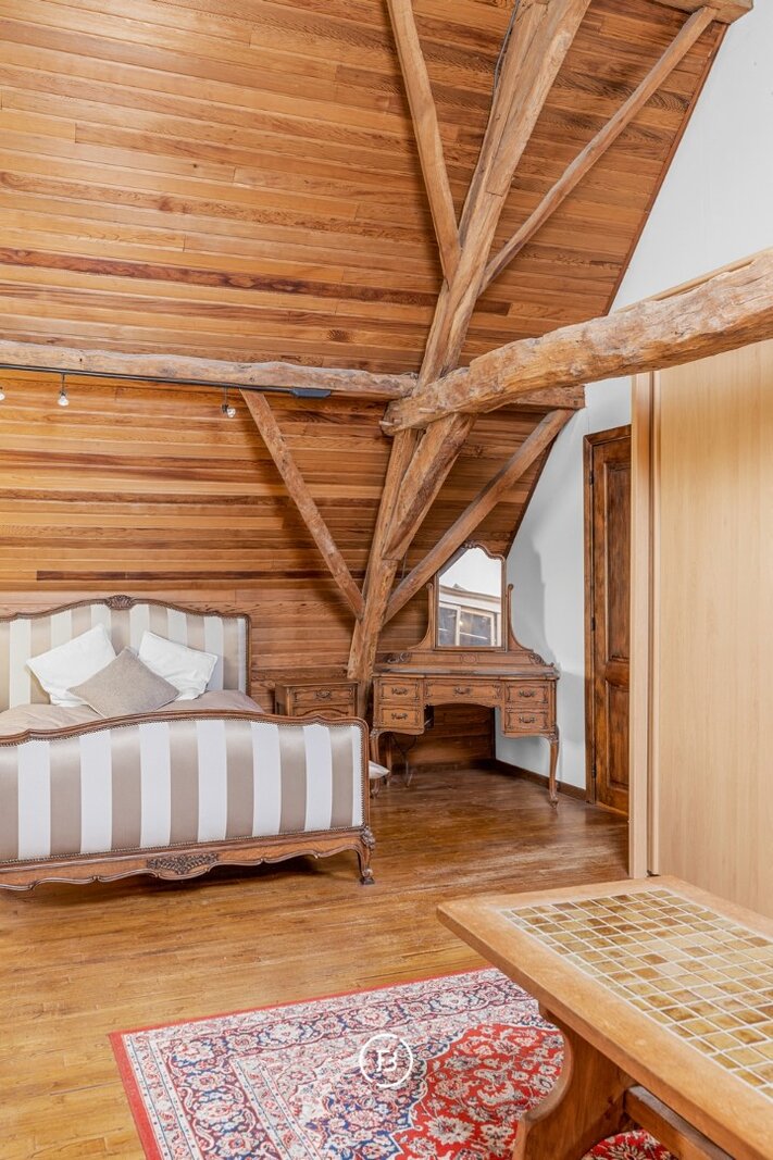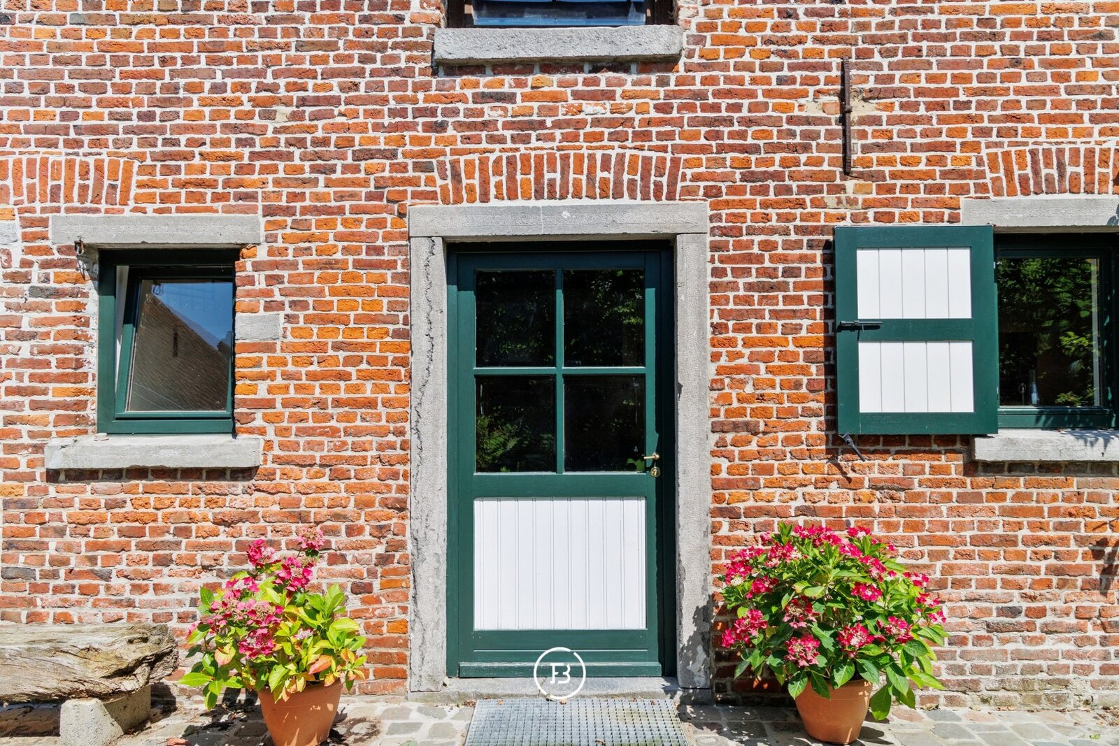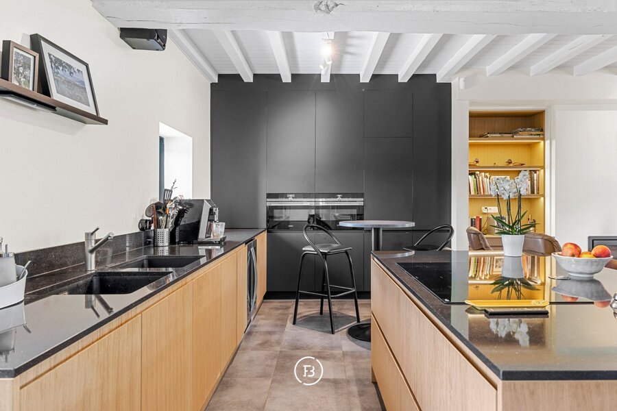 Aan de straatzijde bevindt zich het woonhuis, waar het gelijkvloers smaakvol werd gerenoveerd. Hier vindt u een volledig uitgeruste keuken, eetkamer, salon en bureau, aangevuld met een badkamer. Op de eerste verdieping bevinden zich drie slaapkamers en een royale nachthal. Een praktische opbergkelder vervolledigt dit woongedeelte.