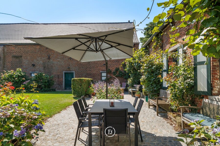 Te midden van de velden, waar rust en ruimte het ritme bepalen, ontvouwt zich deze uitzonderlijke vierkantshoeve op een perceel van 65 are. Een plek waar authenticiteit en hedendaags comfort elkaar ontmoeten. De hoeve wordt omringd door een zorgvuldig aangelegde tuin met zwembad en een eigen wijngaard, en geniet van adembenemende vergezichten aan zowel de voor- als achterzijde. Met een EPC A en een waaier aan invulmogelijkheden vormt deze eigendom een zeldzame combinatie van charme, duurzaamheid en flexibiliteit.
