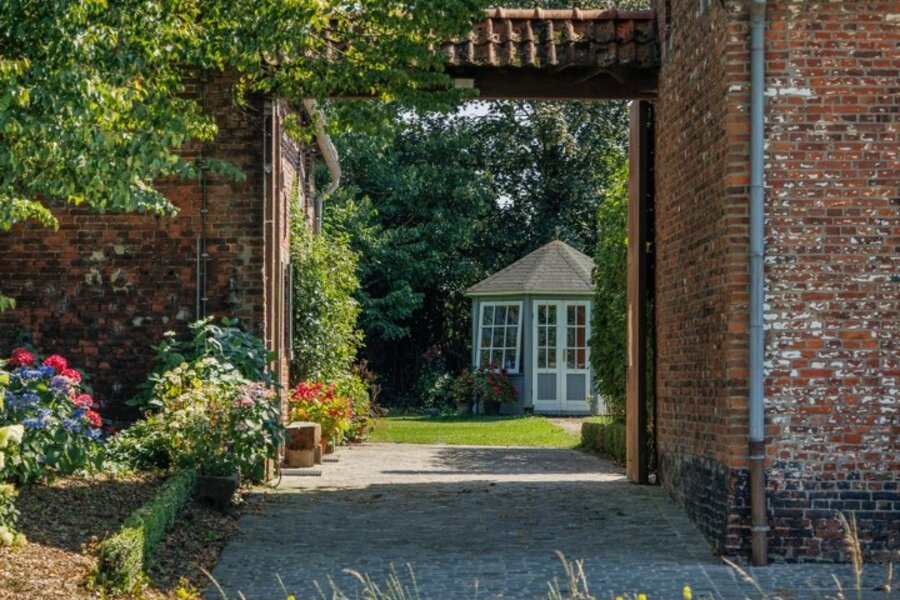 Het achterste deel van de hoeve werd casco voorbereid met vloerverwarming en nieuwe ramen, en biedt een blanco canvas voor wie droomt van een kangoeroewoning, thuiskantoor of stijlvolle vakantiewoning.